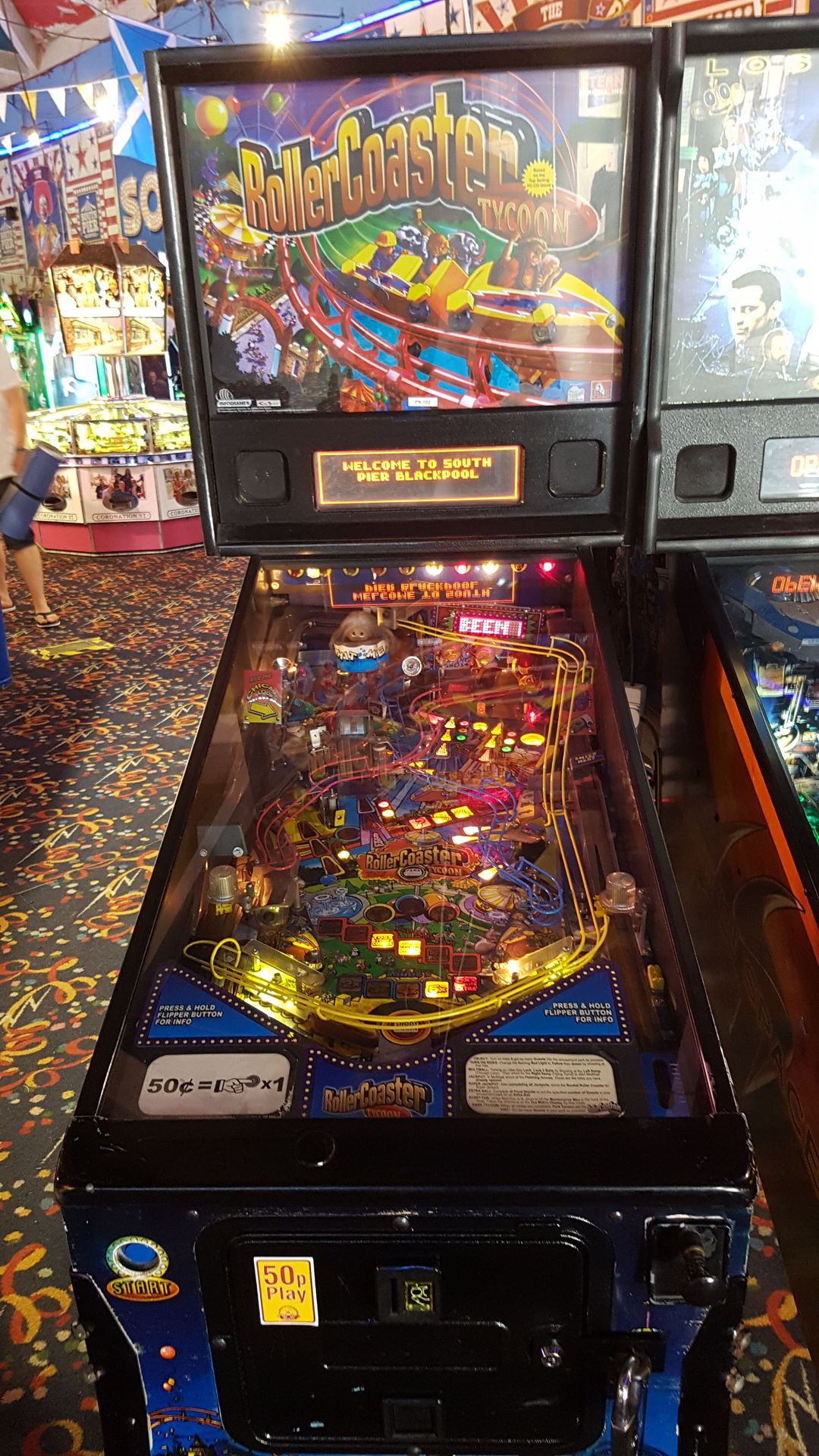 Am Abend besuchten wir noch den nahe gelegenen South Pier, um dort die mitten im Meer aufgeständerte Spinning Maus zu fahren. Leider fuhr diese nicht mehr, da der Pier bereits geschlossen war. Wir sollten es am nächsten Vormittag, vor der Eröffnung vom Pleasure Beach erneut versuchen und leider auch dann kein Glück haben. Erst nach dem 2. Pleasure Beach Besuch am Freitag fuhr die Bahn und wir konnten sie fahren. Ergo sind wir 3x den Pier entlang gelatscht. 'Lohnt sich doch nicht!' für eine Standard Spinning Maus, wie wir sie auf der Tour mehrfach gefahren sind, wird vielleicht der ein oder andere denken. Das Setting ist aber wahrlich derart fantastisch, dass ich die Fahrt nicht missen wollte. Aber es hat auch etwas unbehagliches: Egal was du dort fallen lässt, die Wahrscheinlichkeit ist groß, dass es danach unauffindbar im Meer versunken ist