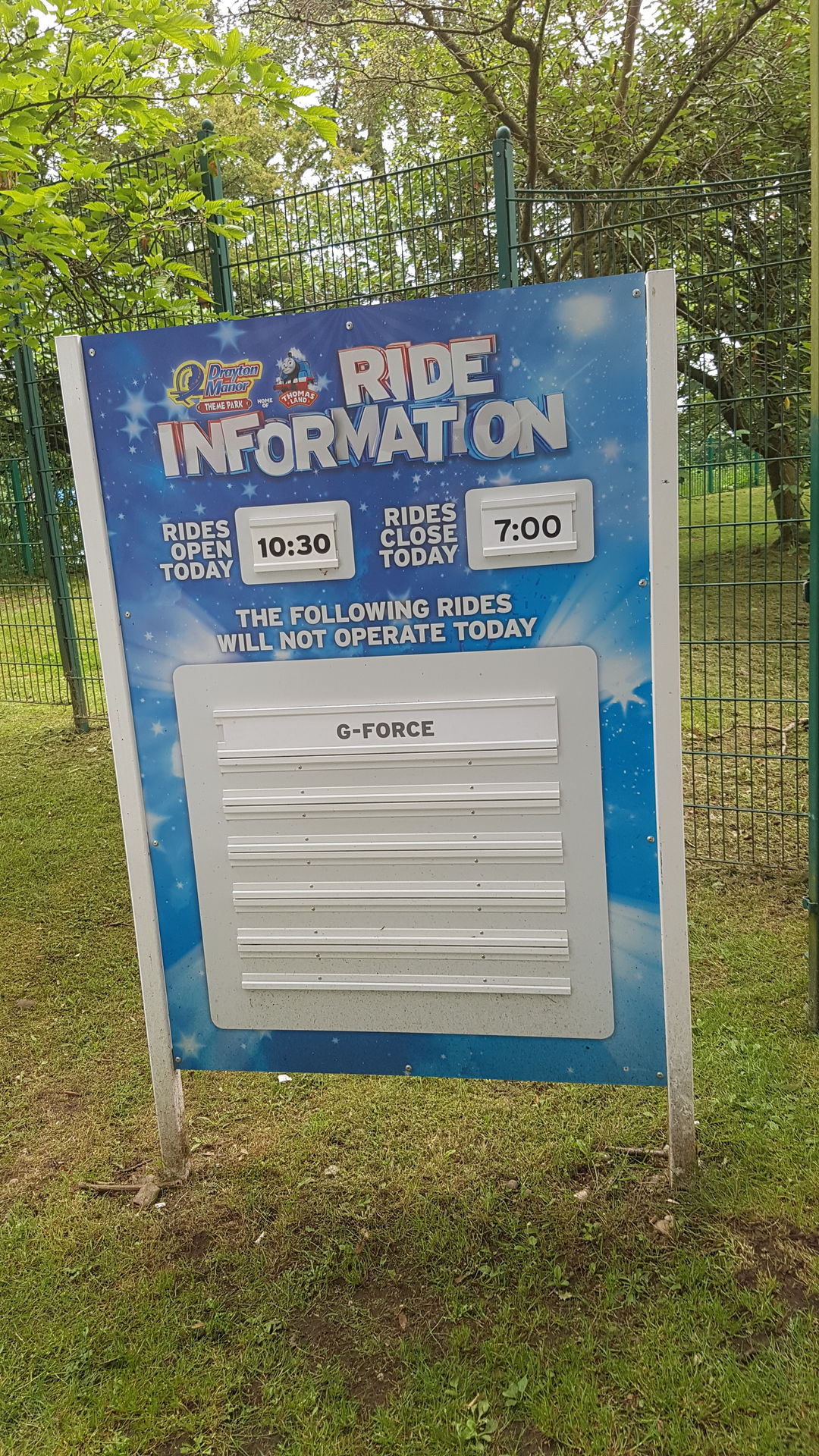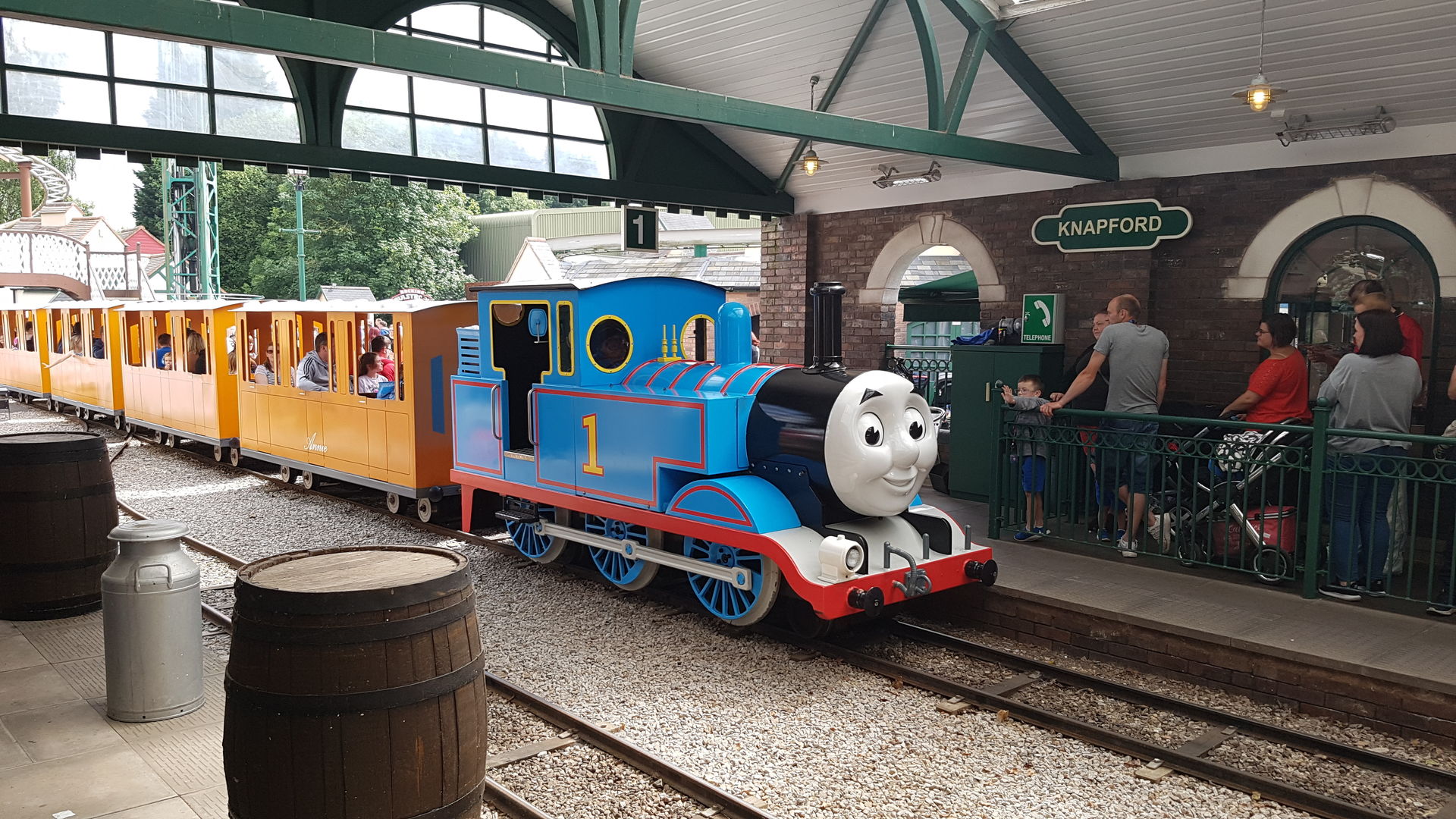 Ich warf daraufhin Facebook an und schaute mal auf deren Seite und fand alsbald heraus, dass genau heute der 10-jährige Geburtstag des Themenbereichs "Thomasland" ist und der Park daher im Vorverkauf Tickets für läppische 10 Pfund rausgehauen hat. Nette Briten empfahlen mir online dringenst, an einem anderen Tag wieder zu kommen, was selbstverständlich nett gemeint, aber aufgrund unserer weiteren Tour-Planung nicht machbar war. Zudem hatten wir unsere datierten online-Tickets wohl bereits vor der 10-Pfund-Aktion gekauft, womit wir also praktisch zum Park fahren "mussten".