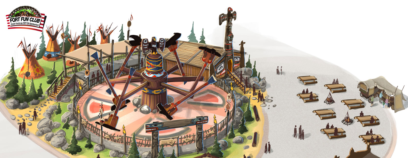 Das neue Fahrgeschäft ist aber nicht das Einzige, was die Besucher ab Mai 2019 im FORT FUN erwarten dürfen, mit ihm entsteht ein neuer indianischer Themenbereich, das Indian Valley. „Der amerikanische Kontinent und seine Geschichte sind das Thema unseres Parks,
