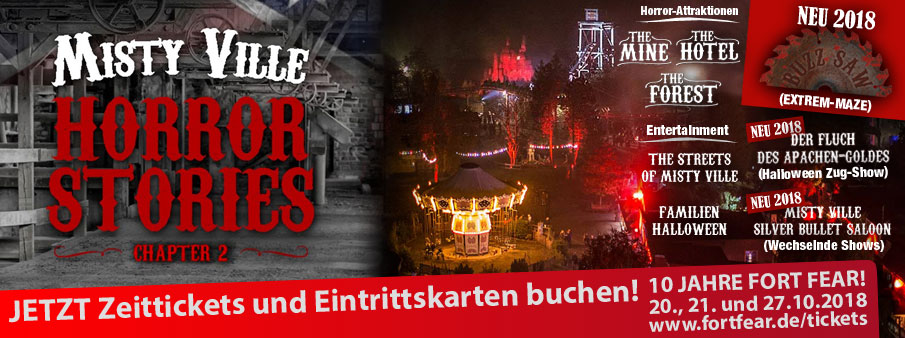 2018 geht der Event mit "Chapter 2" in sein zweites Jahr nach Neustart und feiert gleichzeitig 10 JAHRE Halloween im FORT FUN Abenteuerland!
