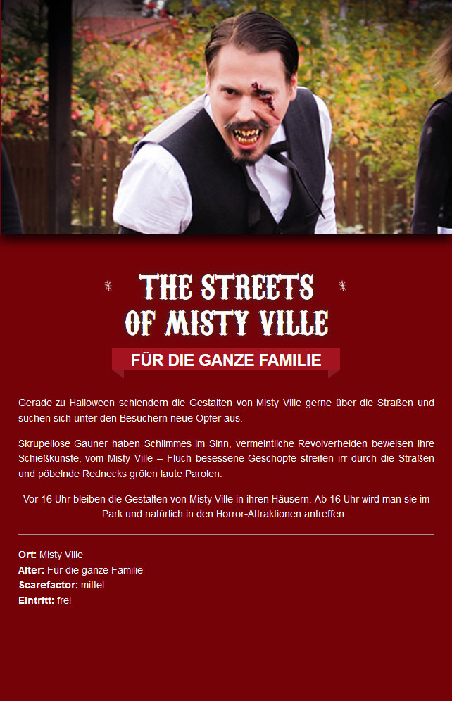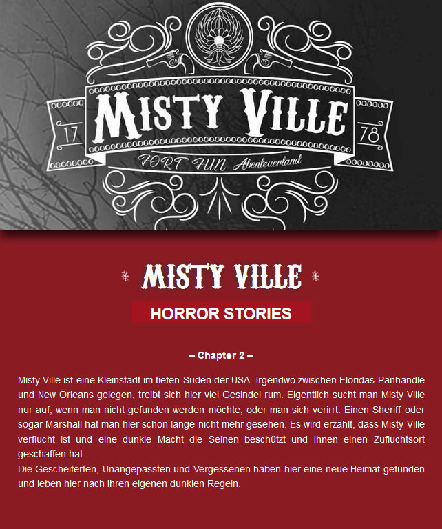 2017 erfolgte unter dem neuen Namen FORT FEAR Horrorland: "Misty Ville Horror Stories - Chapter 1" im Grunde ein kompletter Neustart. Es gab keine Hauptfigur mehr, sondern die Stadt Misty Ville. Ein verruchter Ort, voll von Gesindel, Halunken, Verfluchten und Verlorenen Seelen.