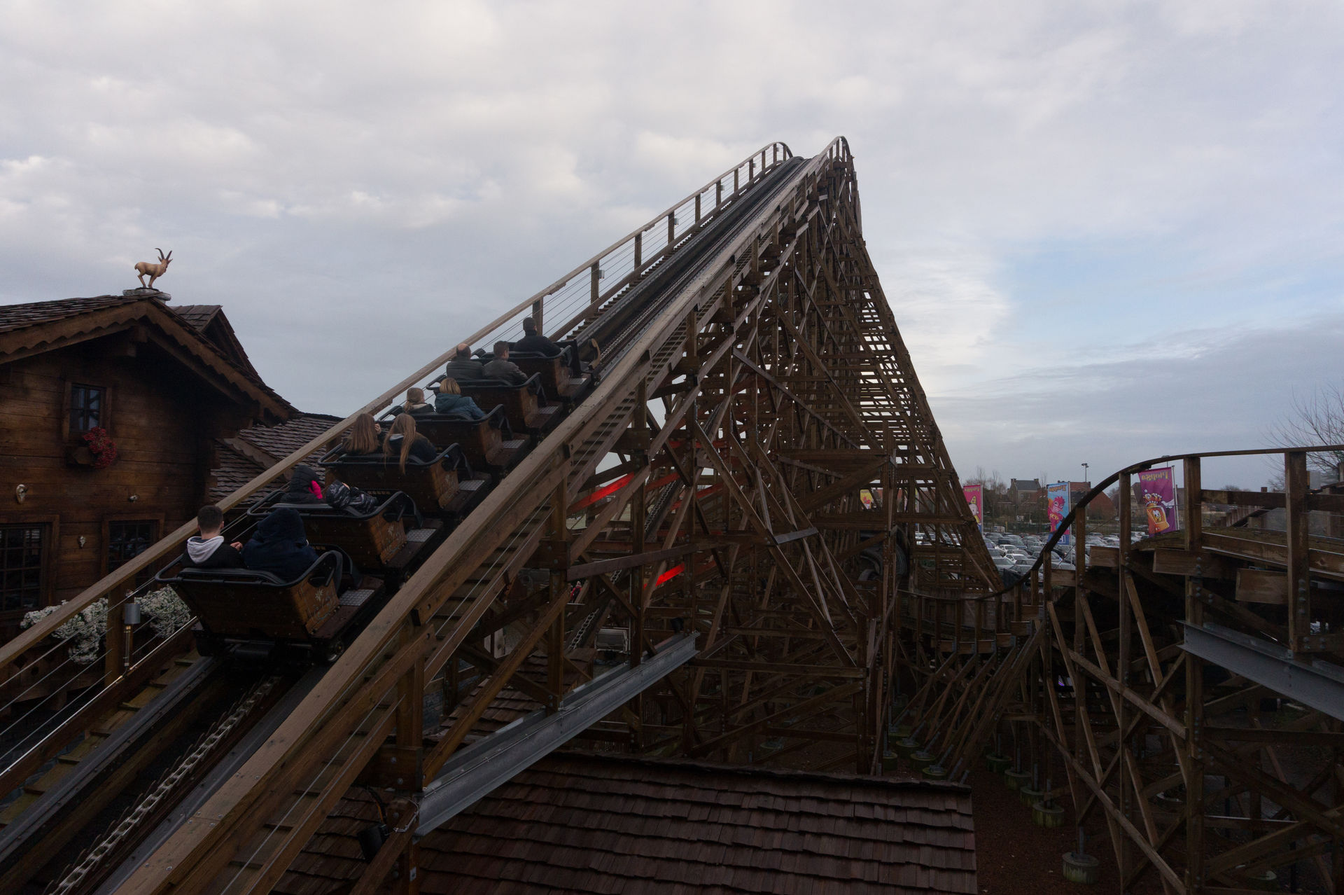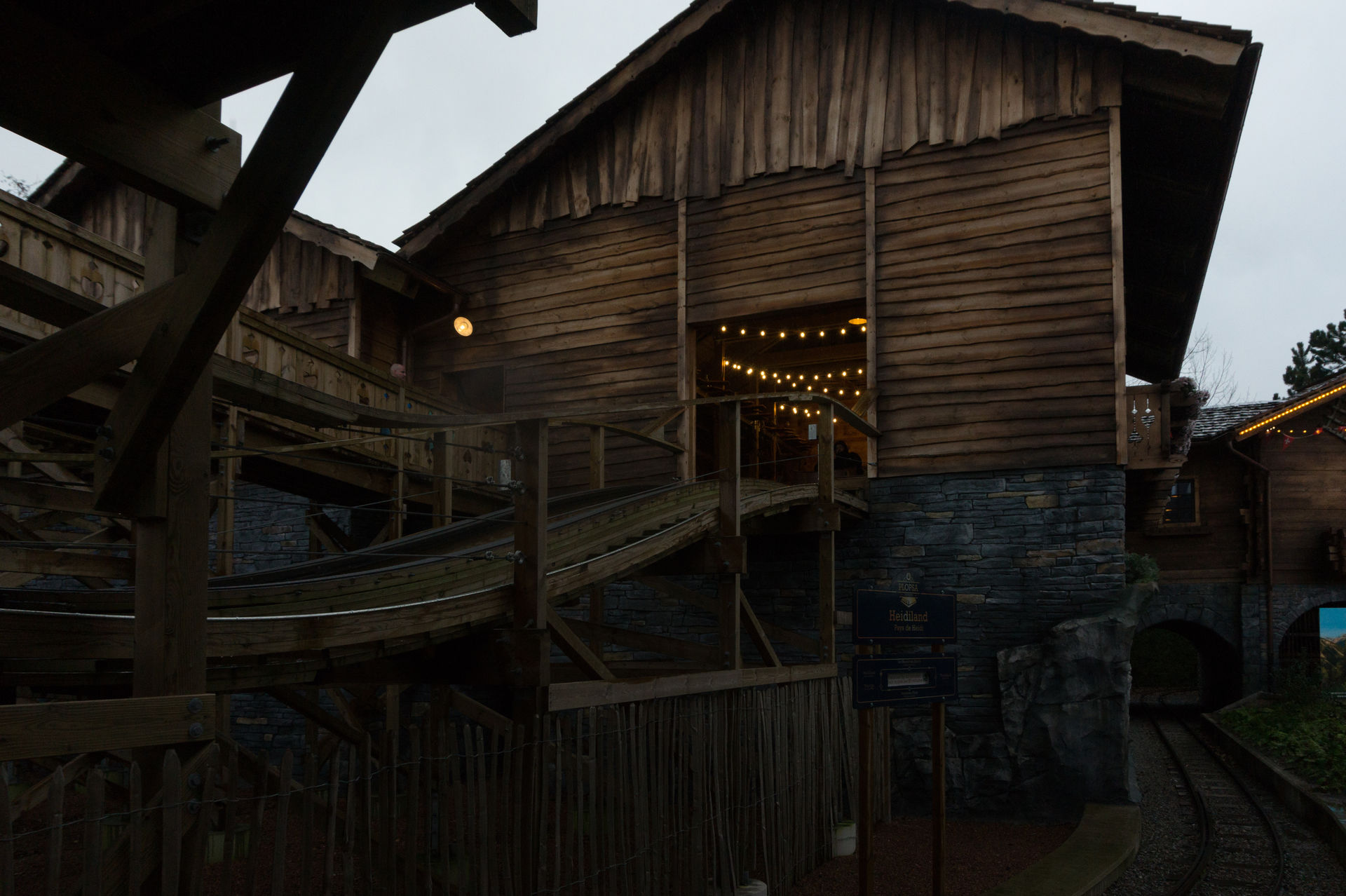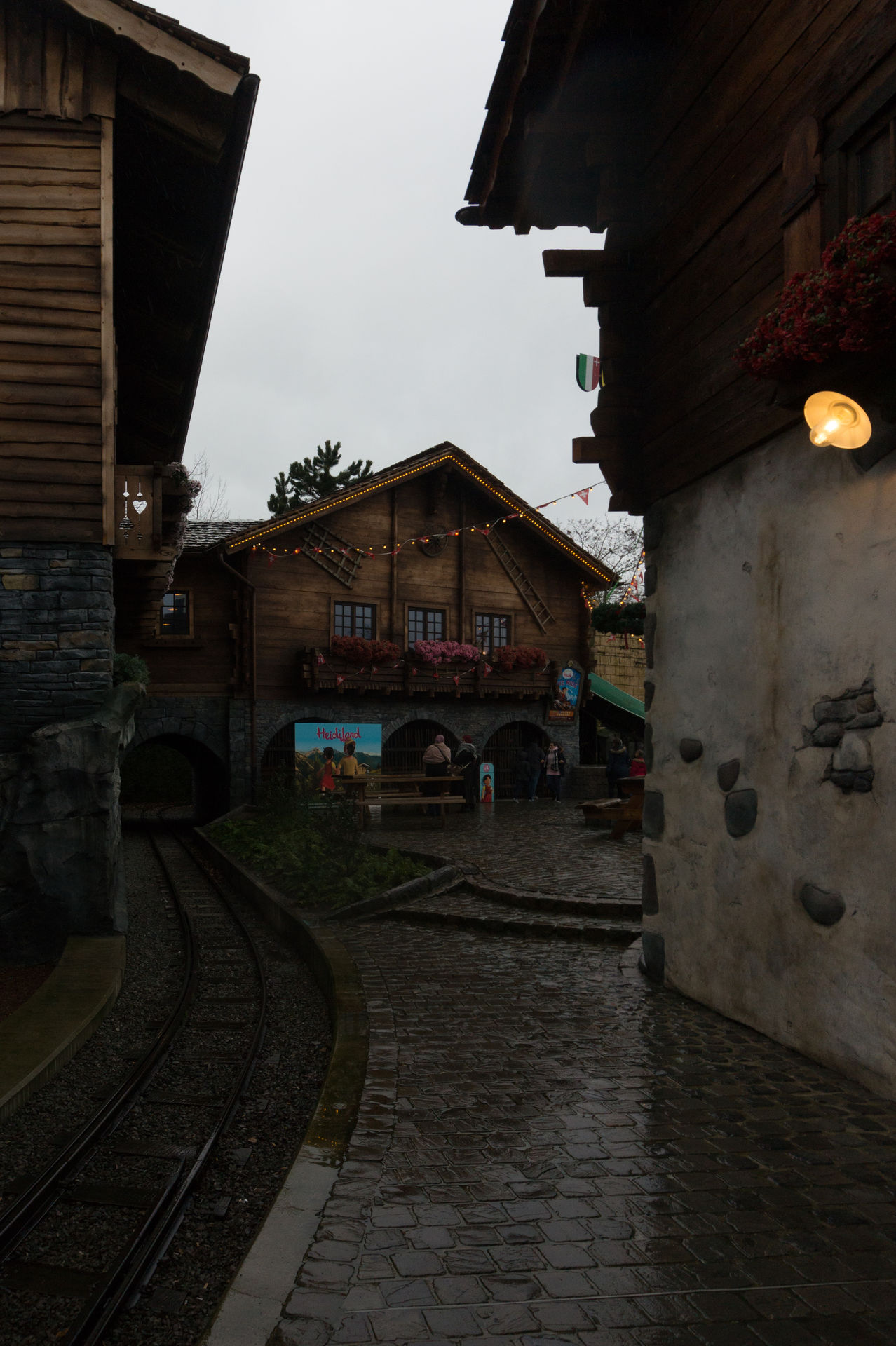 beim letzten Besuch leider nur stillstehend begutachten konnte; zugegebenermaßen war ich aber auch sehr gespannt darauf, mit welchen Einschränkungen man im Winter hier vorliebnehmen muss. Ebenfalls befand sich damals der Themenbereich rund um die wilde Schlittenfahrt noch im Bau und glich somit eher einem grauen Betonkomplex, als einem farbenfrohen Schweizer Dorf.