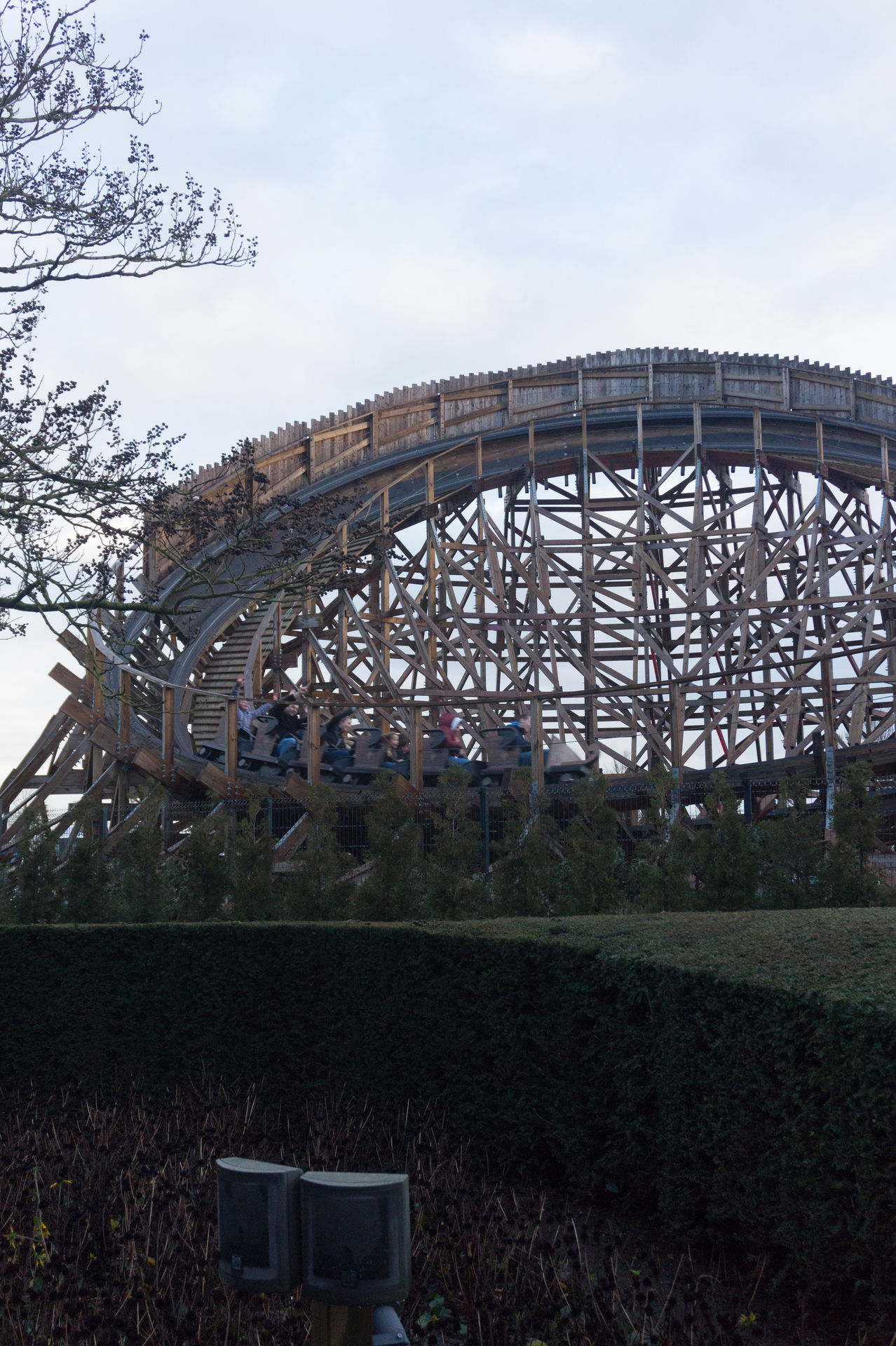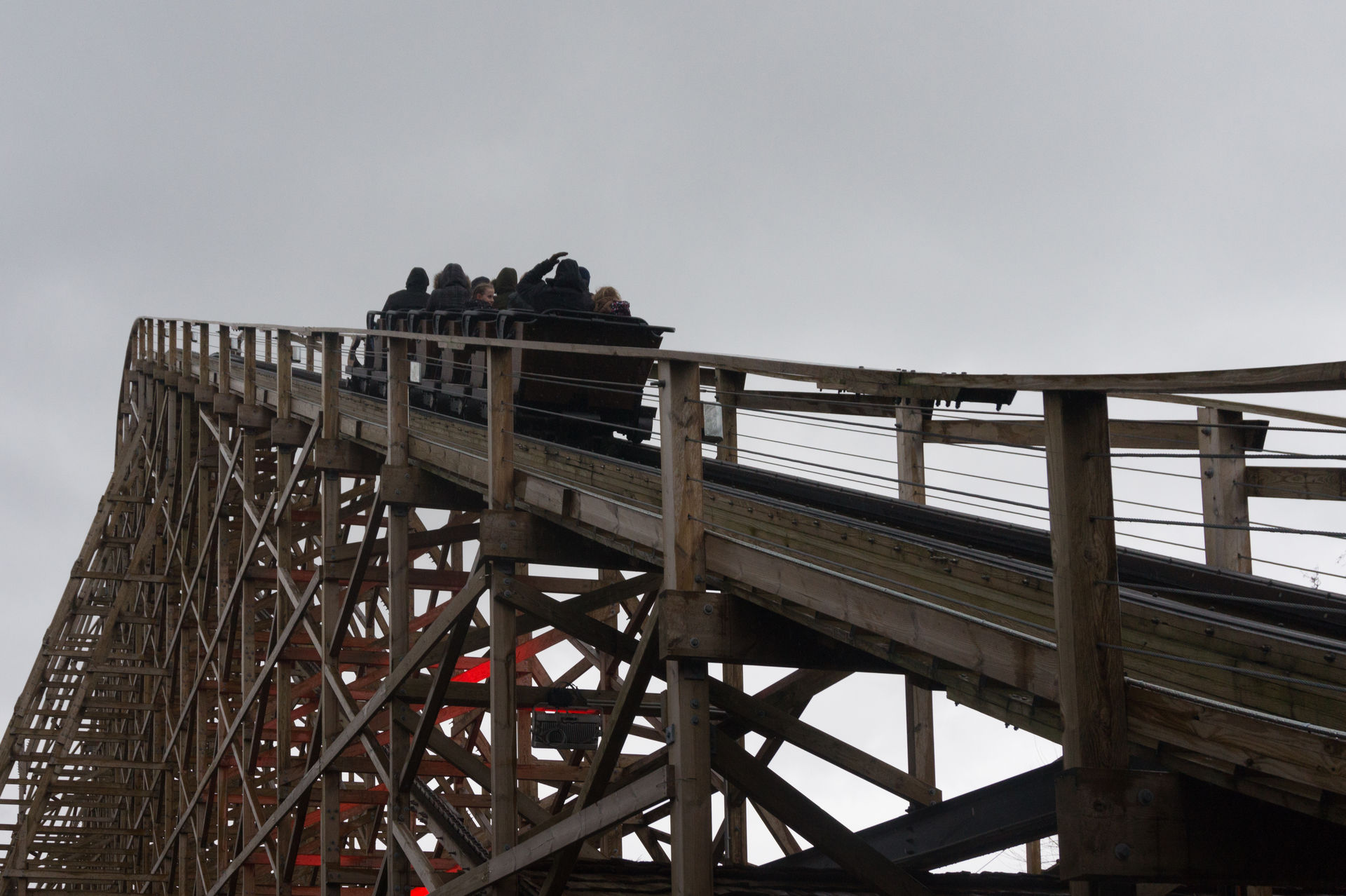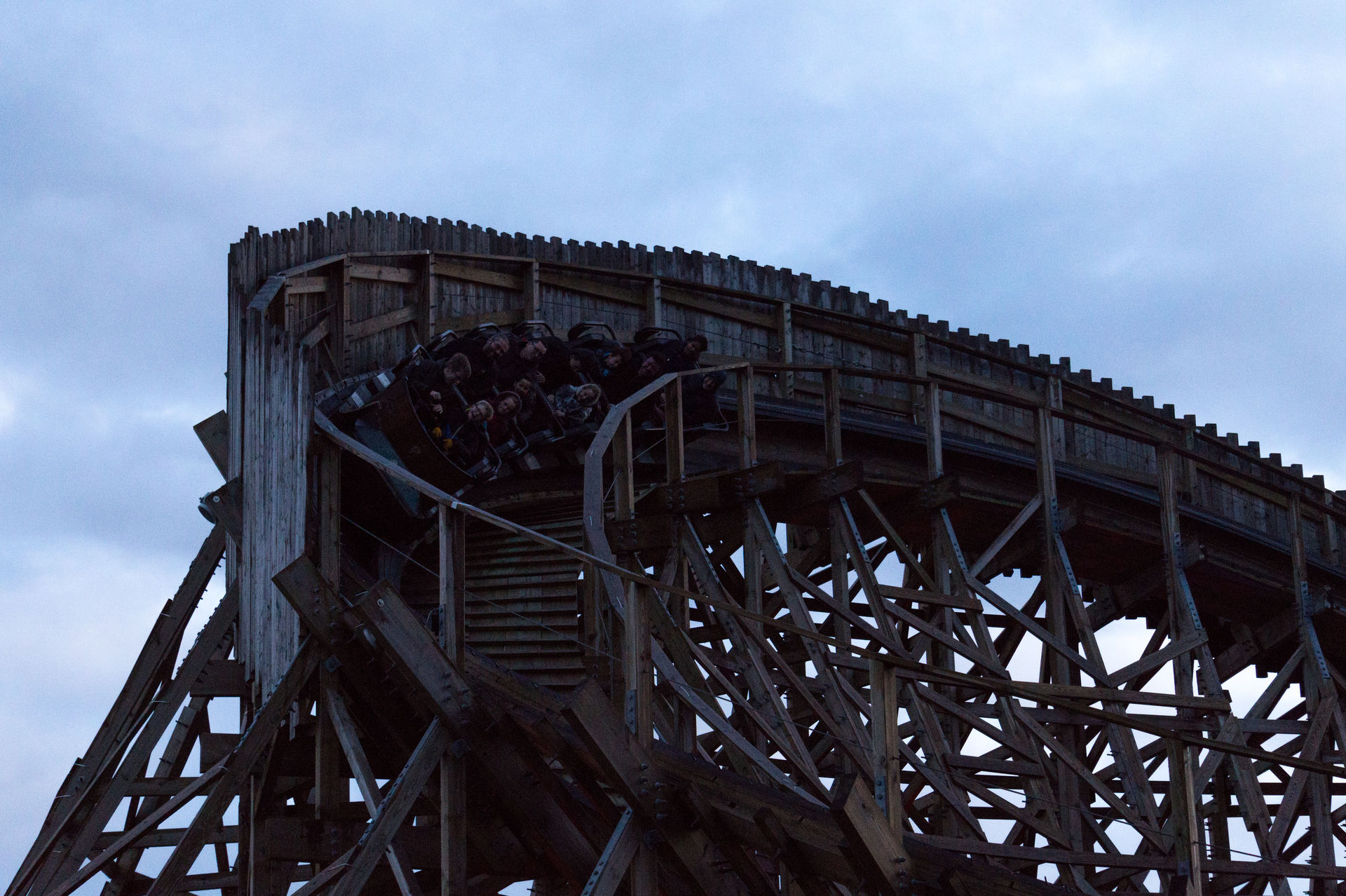 Immerhin hat man von dort oben einen guten Überblick über die Region, den Park und auf die Holzachterbahn Heidi – The Ride. Bis zum späten Nachmittag war die Warteschlange an der Achterbahn überaus überschaubar, so dass es überhaupt kein Problem war jeden der insgesamt 12 Sitzplätze auszuprobieren; manche sogar doppelt oder gar dreifach. Gegen Abend wurde die Bahn dann beliebter, der Park jedoch auch spürbar voller.