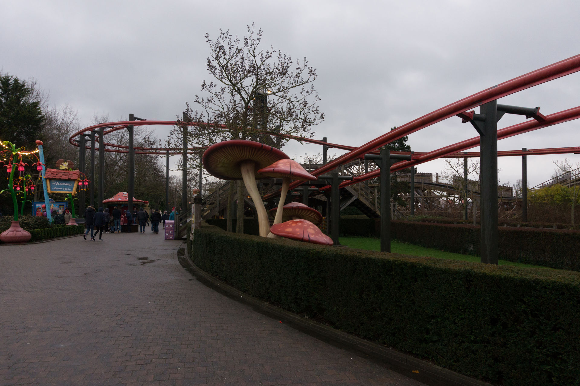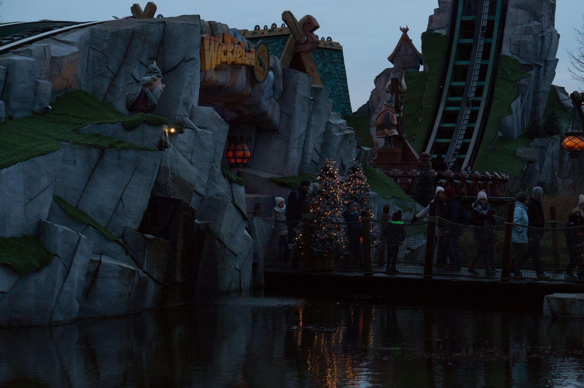 Der erste Eindruck des Events ist durchaus positiv, so ist der Park überaus nett geschmückt und hat sogar einen Weihnachtsplopsa an jeder Ecke des Parks herumstehen. Dass die Gestaltung – außerhalb des Eingangsbereichs – dann doch ein wenig sehr repetitiv ist, ist jedoch ein wenig schade; wobei dieser Eindruck kaum ins Gewicht fällt. Hingegen stark ins Gewicht fällt die Anzahl der sich im Betrieb befindlichen Fahrgeschäfte. Winterevent schön und gut, wenn aber nichts fährt kann man es sich auch sparen und ebenso sah es noch am Morgen aus. Dass spätestens zum Nachmittag – mit Ausnahme der Wildwasserbahn und den beiden Vleermuis-Achterbahnen – alle, und zu meinem eigenen Erstaunen wirklich alle, Fahrgeschäfte liefen, spricht für dieses Event. Immerhin konnte ich somit auch endlich mal den Star Flyer fahren, der der See und den vorhandenen Winden zu Dank wirklich beängstigend ist.