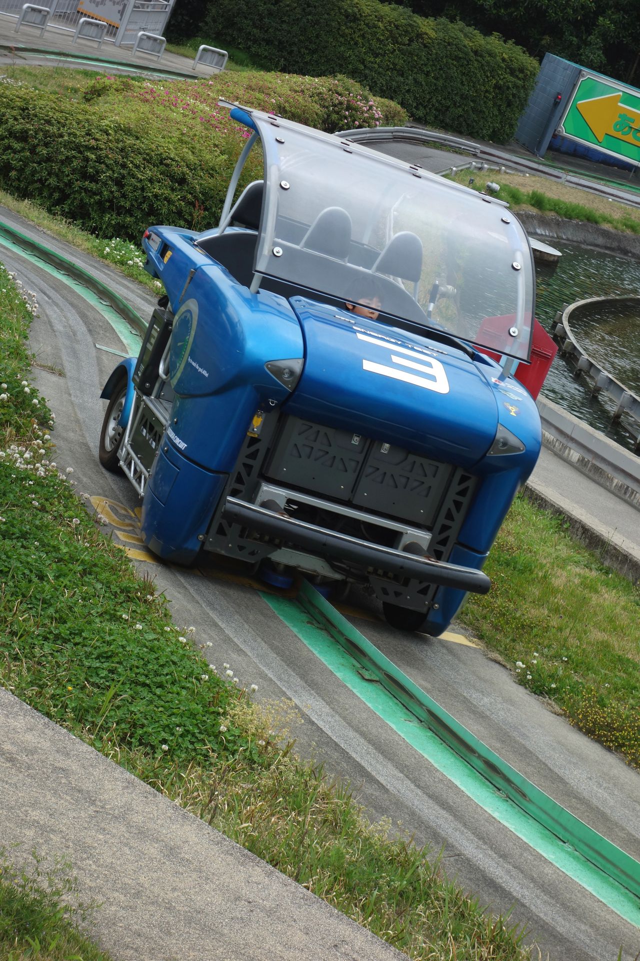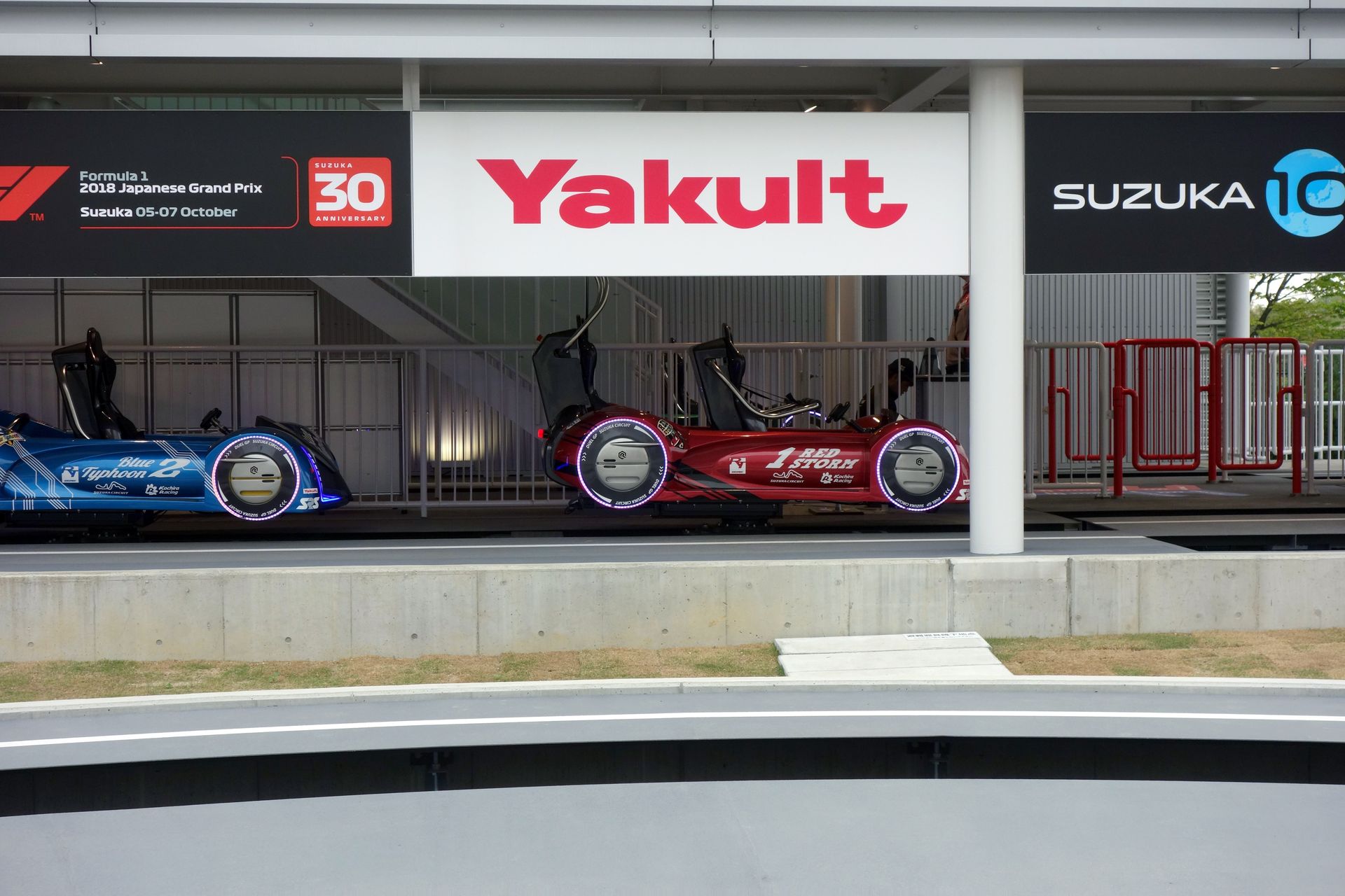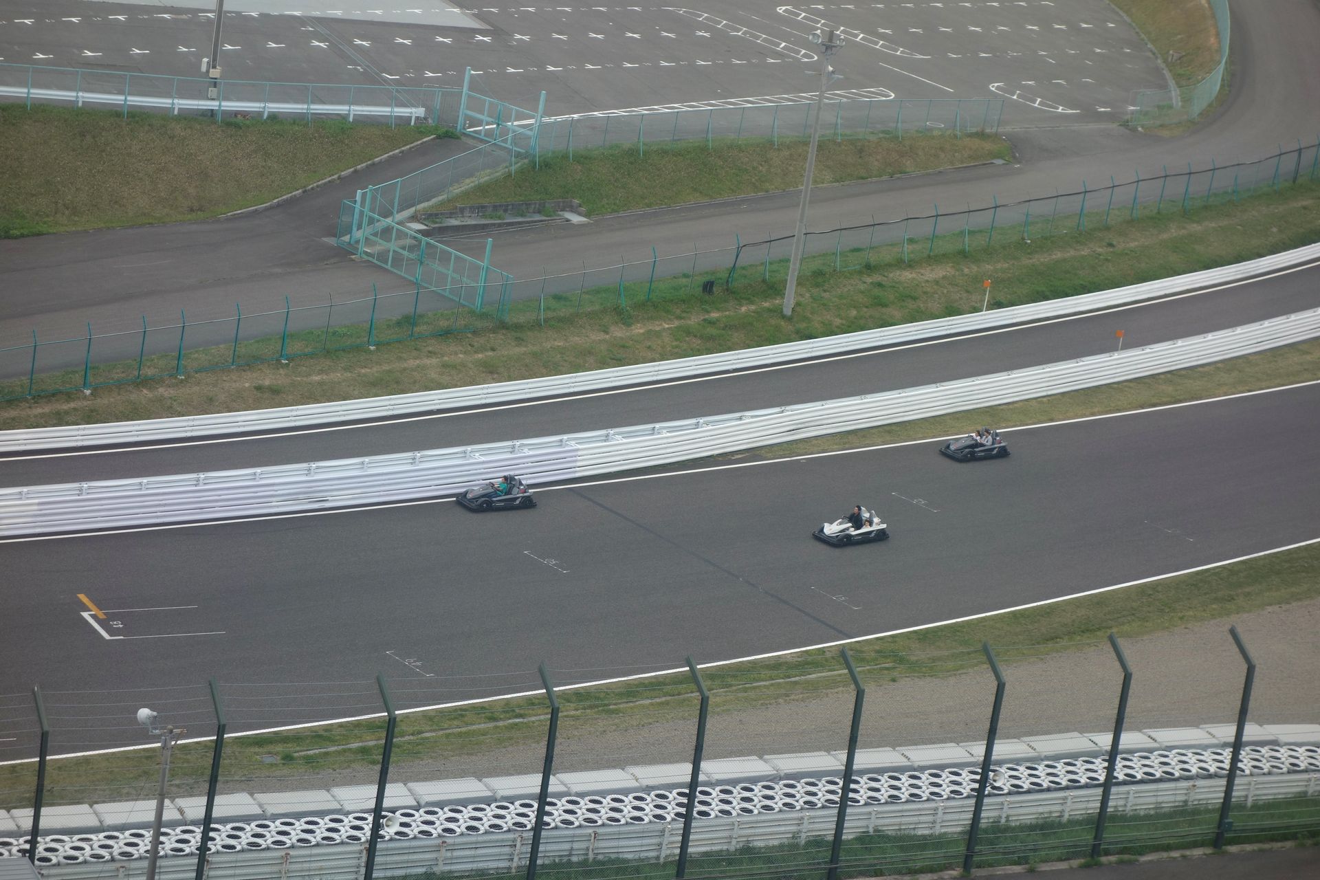 Für 1500 Yen Aufpreis kann man sich einen der limitierten Plätze erkaufen und dann in einem Elektro-Kart über die echte Rennstrecke fahren. Mit Video-Einweisung durch Ex-Formel-1-Pilot und Indi-500-Gewinner Takuma Sato. Allerdings befährt man nur den East Circuit, muss also nach den berühmten "Esses" in der Dunlop-Kurve rechts abbiegen und auf die Start-Ziel-Gerade zurückkehren. Das Ganze auch nur mit atemberaubenden 30 km/h Spitzengeschwindigkeit. Aber man fährt halt über eine echte Rennstrecke, die schon fast ein dutzend Weltmeisterschaften in der Formel 1 entschieden hat und deren einzigartiges Layout mit Überführung einfach legendär ist.