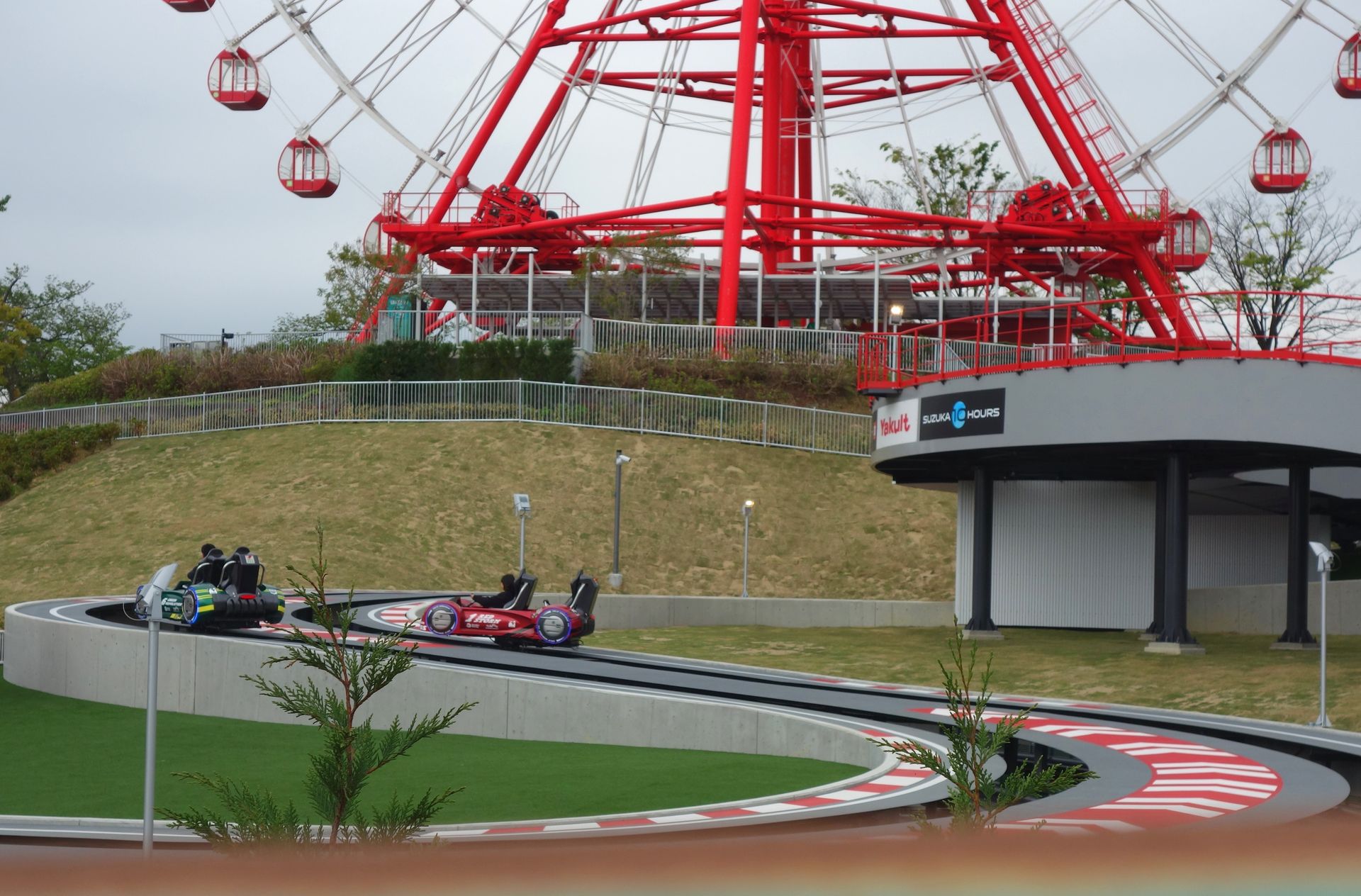 Fazit: Es war für mich schon etwas ganz Besonderes, einmal an dieser legendären Rennstrecke zu stehen und eine Runde im Riesenrad zu drehen, welches ich schon so oft im Fernsehen gesehen hatte. Es ärgert mich, dass wir uns vom Steel Dragon vergeblich zu einer frühzeitigen Abreise haben hinreißen lassen, denn der angeschlossene Motopia Park hätte noch so viel mehr zu bieten gehabt. Adventure Drive und Duel GP sind skurrile Spaßmaschinen, der Rocky Coaster überzeugt besonders rückwärts. Die eigentlichen Highlights des Parks sind aber die zahlreichen interaktiven Fahrgeschäfte, bei denen man komplett in die Welt des Motorsports eintauchen kann. Und obwohl der Park nach wie vor einer 100%igen Tochtergesellschaft von Honda gehört, habe ich keine explizite Werbung für den Autobauer bemerkt - allerhöchstens im Shop, wo Merchandise von Toro Rosso Honda die Oberhand hatte. Aber was hätten die Japaner auch mit Renault oder Mercedes am Hut? Einzig die teils doch arg begrenzten Kapazitäten konnten den Besuch etwas trüben. Wenn man schon bei mäßigem Andrang bis zu 30 Minuten anstehen muss, will man den Park nicht voll erleben. Aber ich würde jederzeit nochmal vorbeischauen, um dann auch den Circuit Challenger und die übrigen verpassten Attraktionen nachzuholen und nochmal den spaßigen Duel GP zu fahren. Da hätte sich der Nürburgring ruhig mal anschauen können, wie ein vernünftiger Motorsport-Freizeitpark funktioniert, statt sich auf eine nicht funktionierende Rekord-Achterbahn zu fokussieren.
