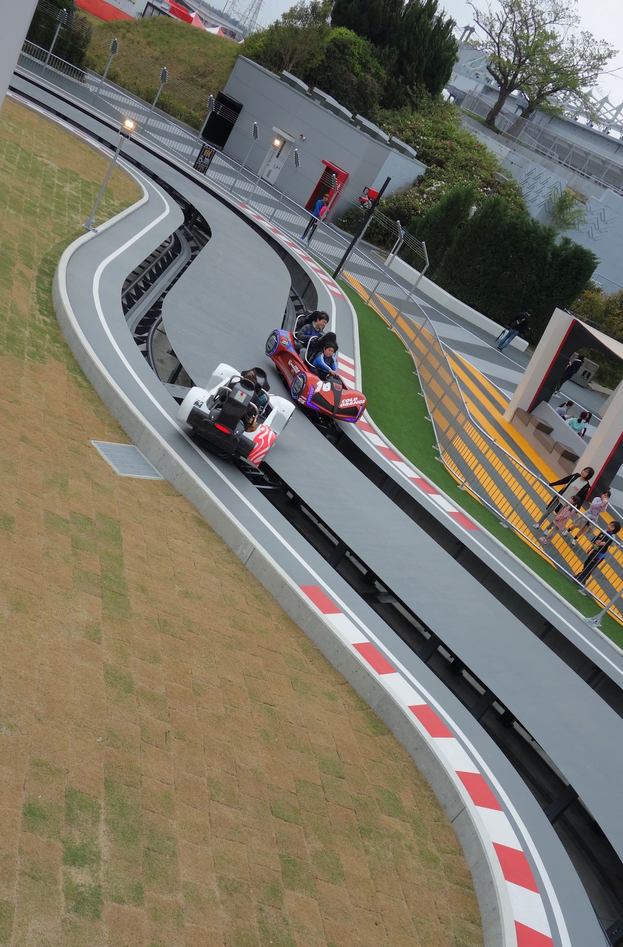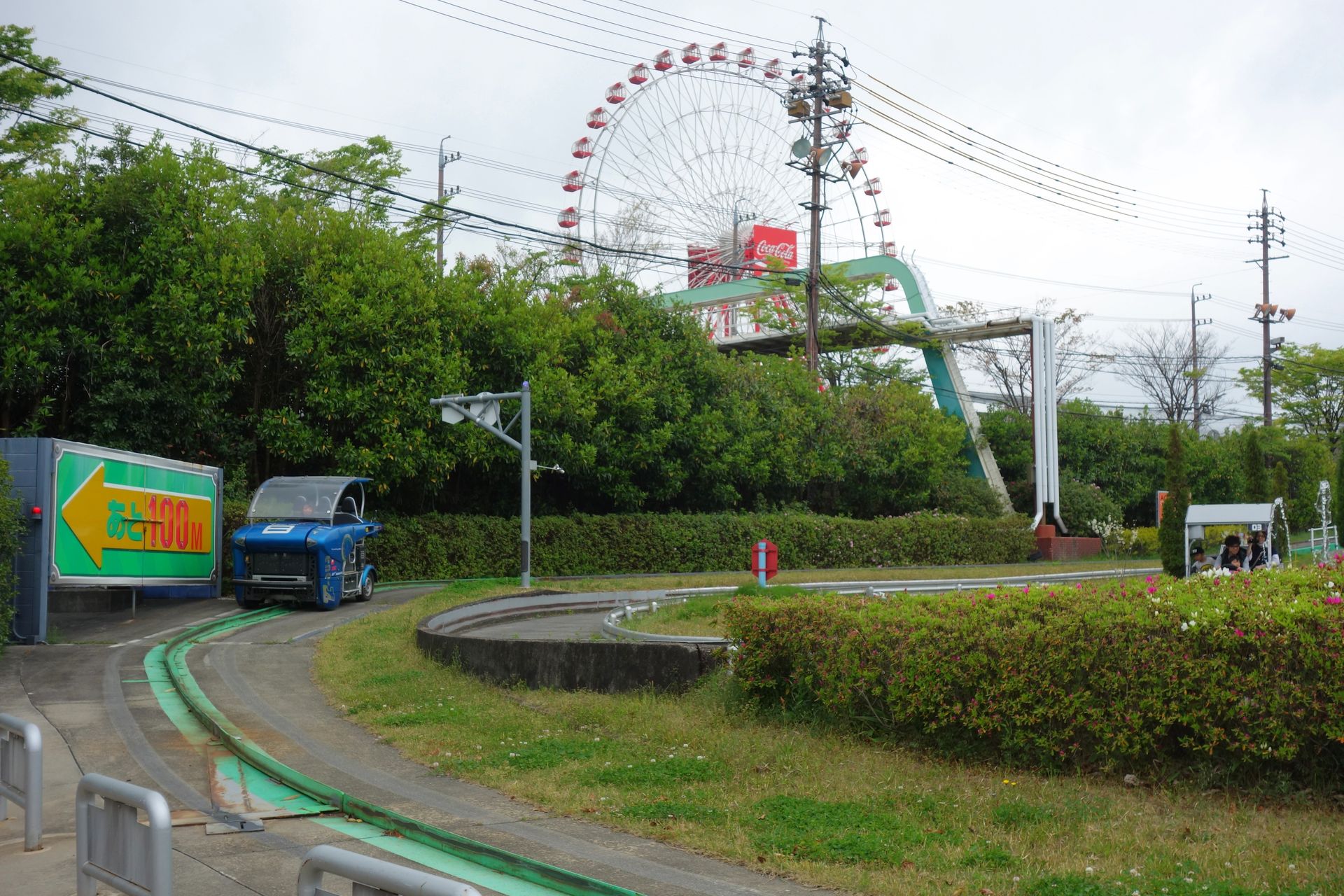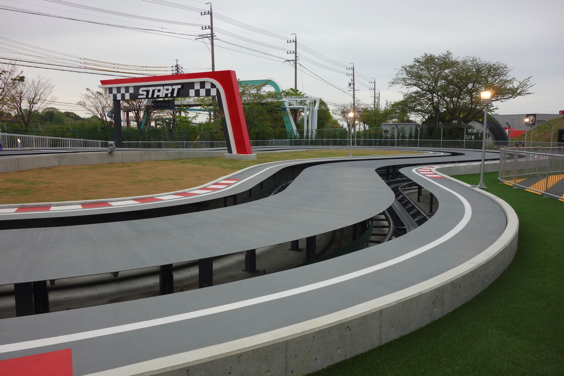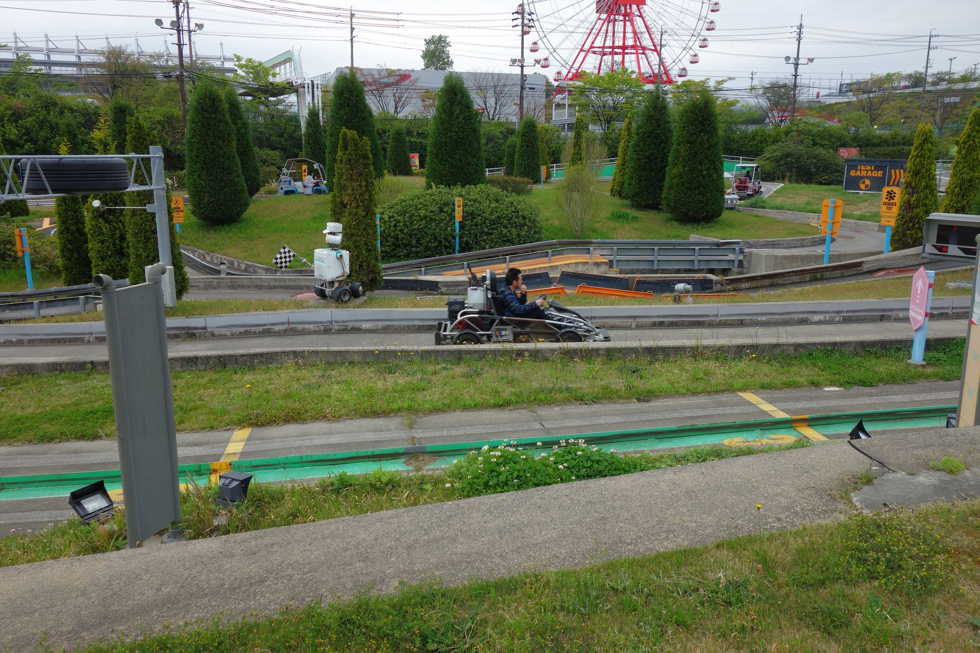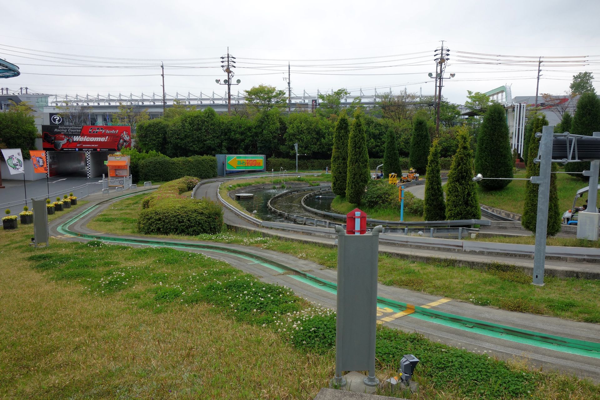 Der Zeitraum, in welchem die Karts die Strecke nutzen können, ist stark begrenzt. Außerhalb der Sommermonate steht fast immer nur eine gute Stunde zur Verfügung, wozu dann etwa 200 bis 350 Plätze verkauft werden. An unserem Besuchstag sollten Fahrten von 12:20 Uhr bis 13:30 Uhr möglich sein. Obwohl wir direkt nach Betreten des Parks hierher gegangen waren, gab es nur noch Tickets ab 13:00 Uhr, was mit unserem weiteren Tagesplan kollidierte. Wir mussten uns daher entscheiden: Mit dem Circuit Challenger über die Rennstrecke fahren, oder nochmal zum Nagashima Spa Land fahren. Letzteres war natürlich riskant, da wir nicht wussten, ob der Steel Dragon dann überhaupt fahren würde. Aber laut Homepage schien er trotz gefühlt etwas schlechterem Wetter zumindest am Morgen geöffnet zu sein, sodass wir (und ich ganz besonders wehmütig) auf den Circuit Challenger verzichteten.