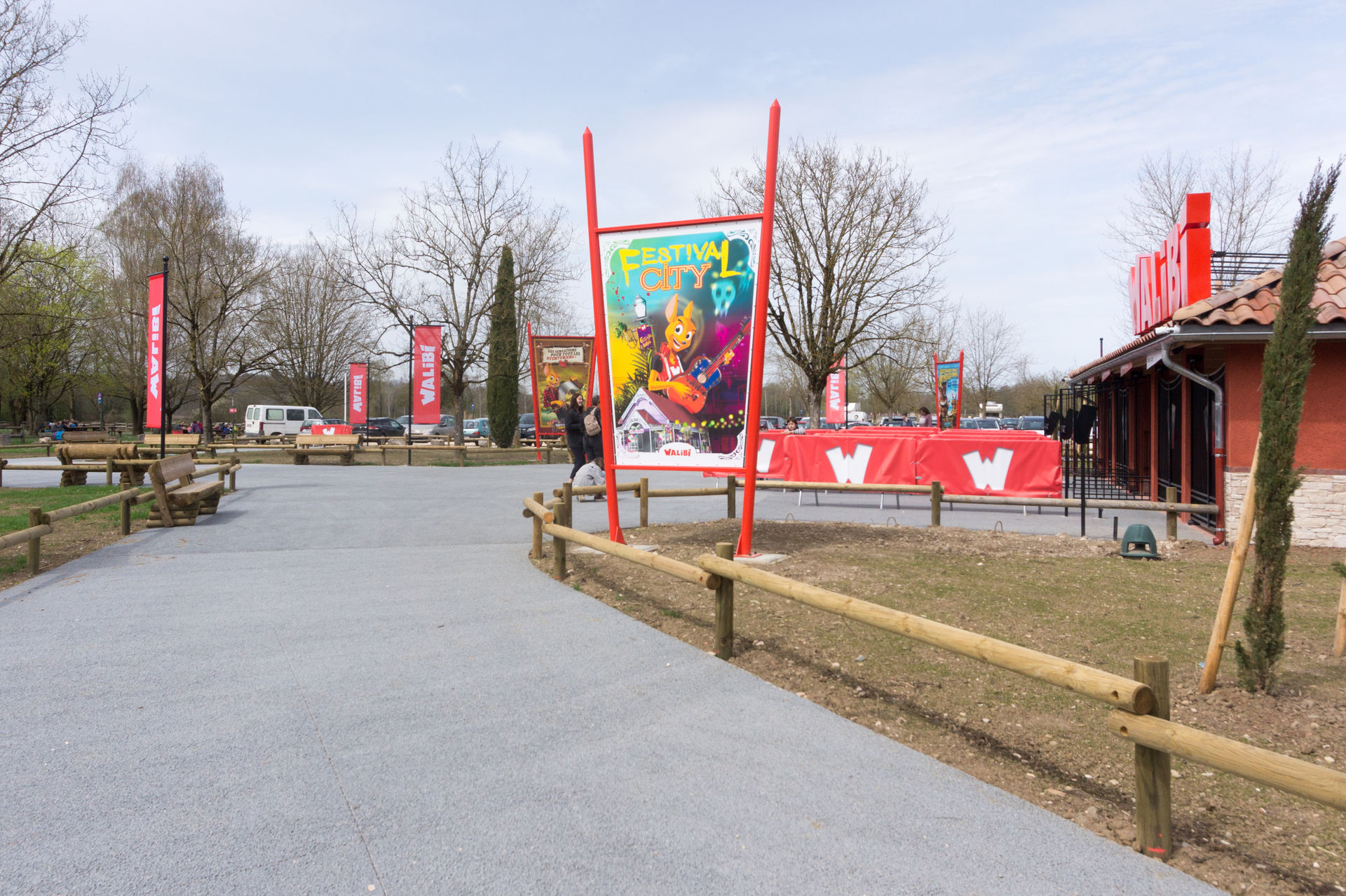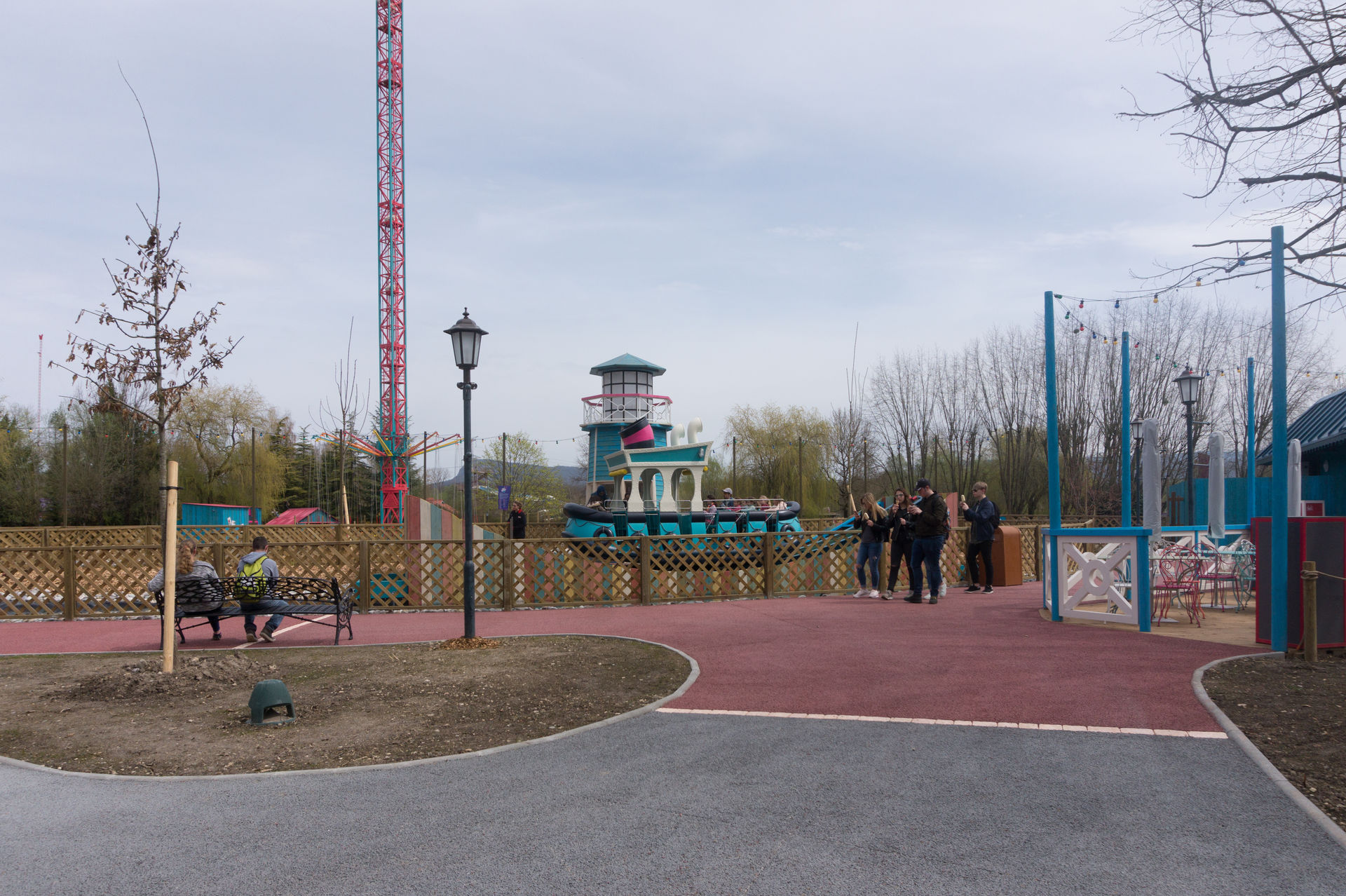 Es ist also kaum verwunderlich, dass mich der Park gleich nach Betreten des neu geschaffenen Eingangsbereichs absolut begeistern konnte. Walibi Rhône-Alpes ist schlichtweg schick, woran auch der neu geschaffene Themenbereich Festival City mit seinem Rockin‘ Tug Dock n Roll und dem Vertical Swing Hurricane, sowie das 4D-Kino des Parks beteiligt ist. Leider war der Kettenflieger zum Zeitpunkt des Besuchs noch in Bau, die Gestaltungsidee mit der Vielzahl an Ventilatoren gefiel mir sehr.