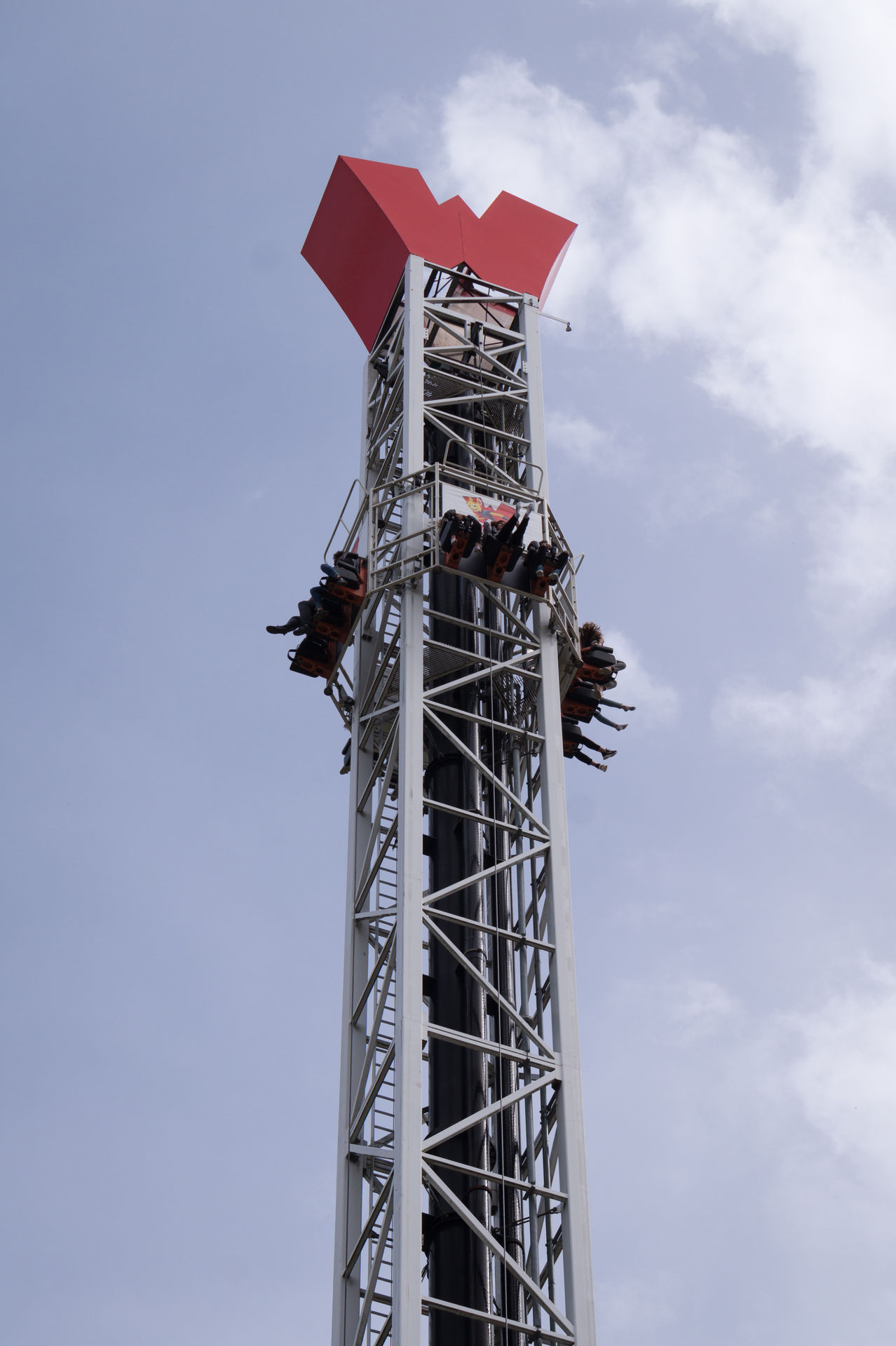 S&S Power macht das, was ein Freifallturm der Firma im Space Shot Programm so macht und befördert einem mit ordentlich Schmackes rasant nach oben.