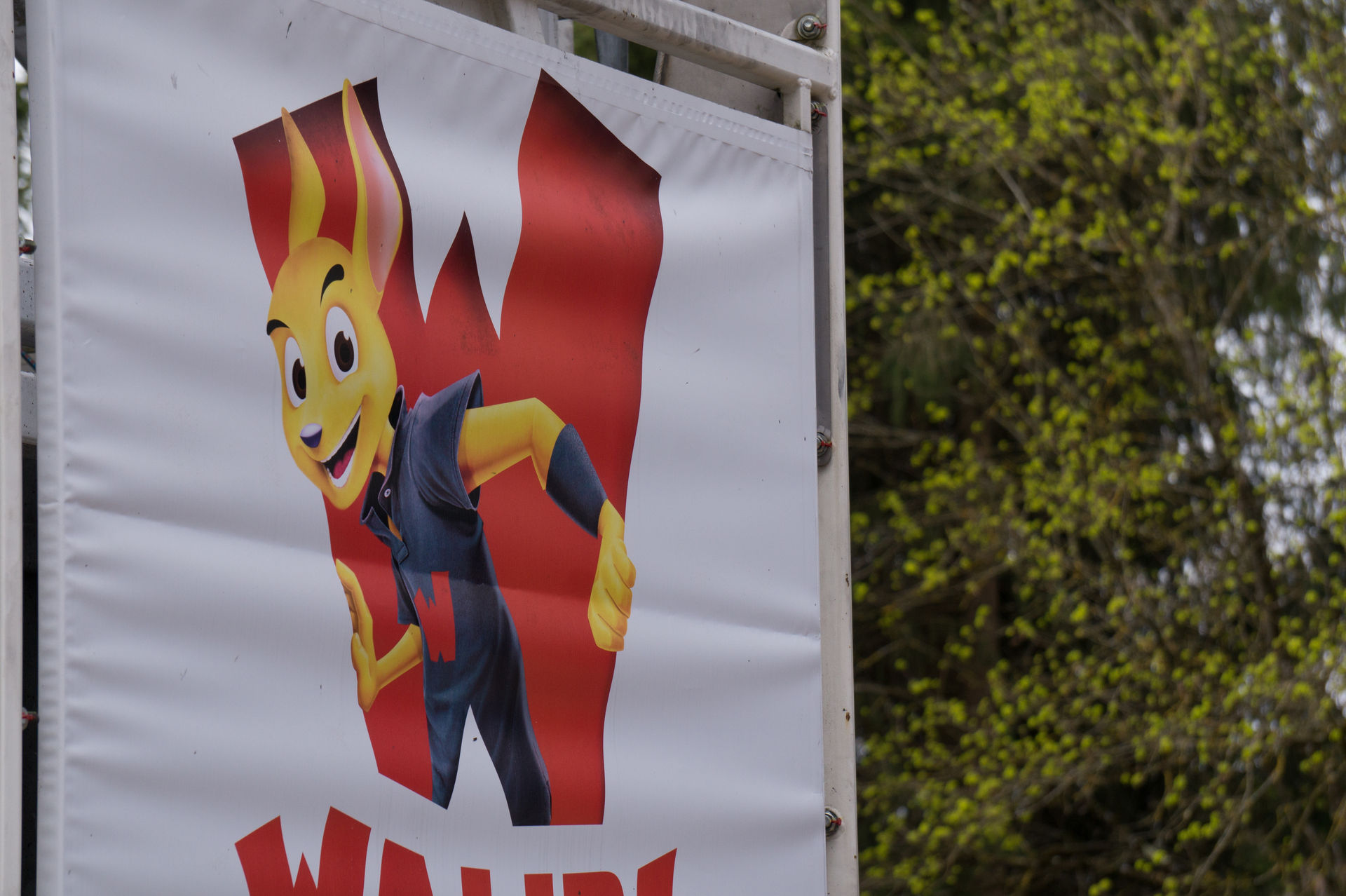 Selbst Walibi in seiner Holzfällerkluft scheint voll zufrieden zu sein.