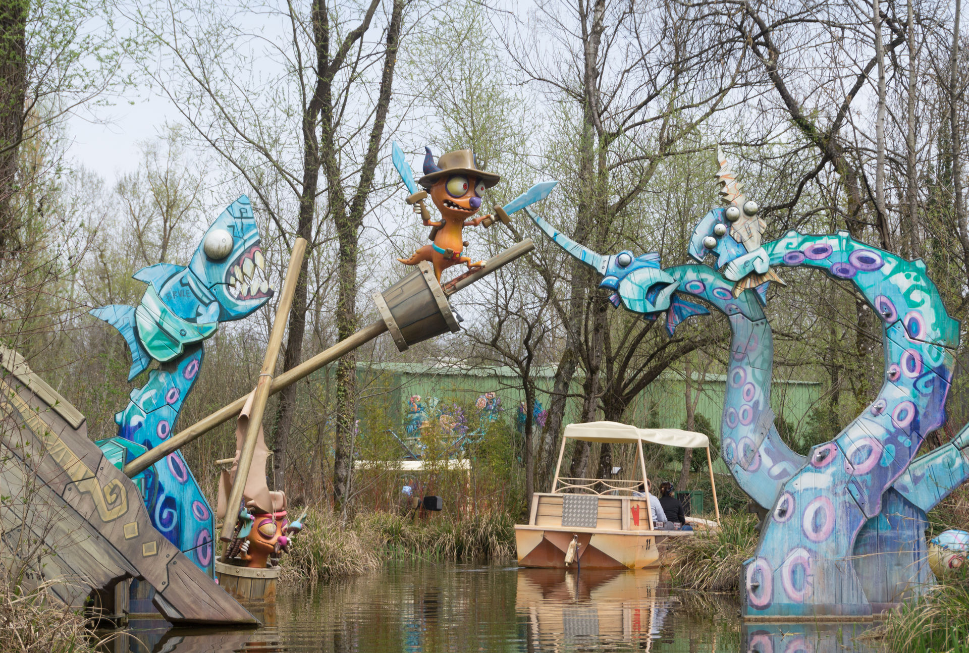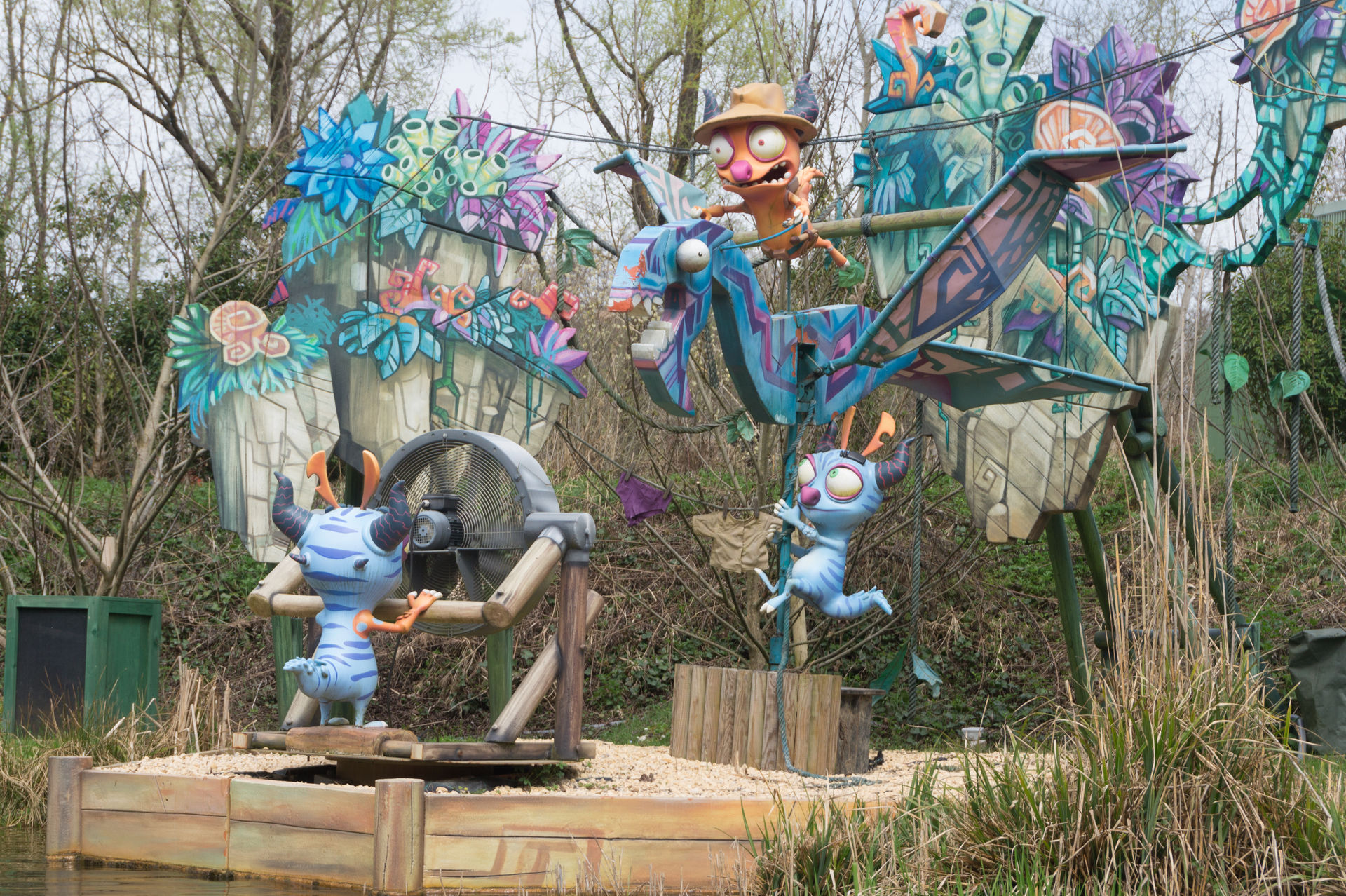 Wir begeben uns nun nämlich auf einem französischen Klassiker, der Tam Tam Tour bzw. dem Tam Tam Aventure, wie sich die ewig lange Bootsfahrt nach ihrer Umgestaltung nennt. Da ich die Anlage aus Walibi Aquitaine – also dem heutigen Walibi Sud-Ouest – kenne war ich sehr gespannt darauf, ob die Fahrt auch hier einem durch ein monotones Quaken unzähliger Frösche zum Wahnsinn treibt. Es kam anders. Sogar sehr.