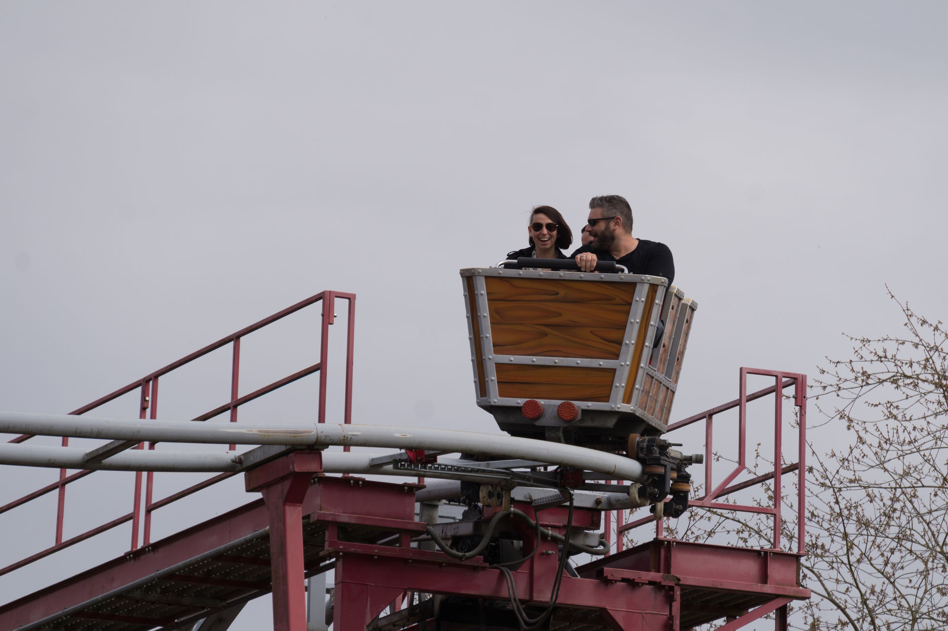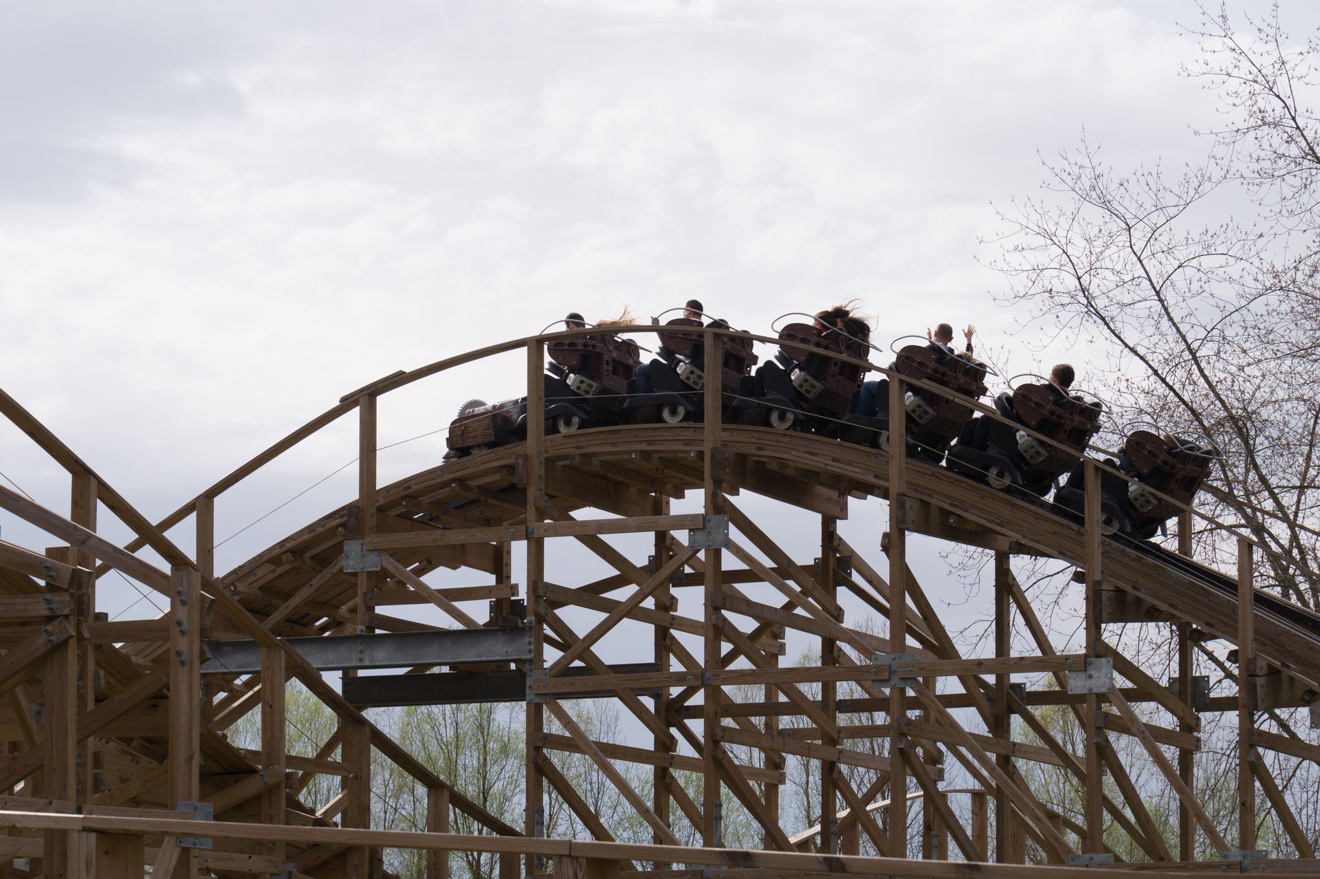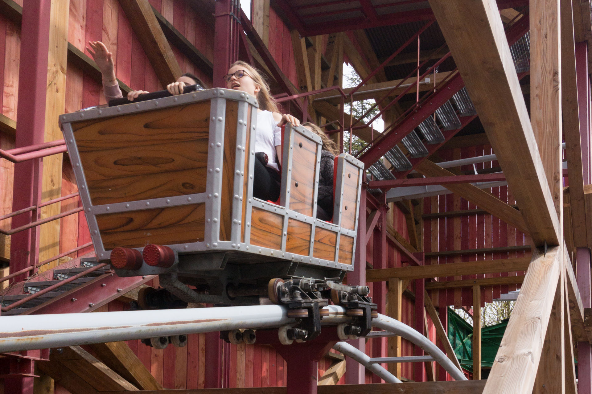 GCI, so ist das was die Gravity Group hier auffährt eine ganz schöne Ansage. Leider aber gibt es an der Anlage ein kleines Detail, welches mir den Spaß ein wenig trübt und das sind die Züge! Timberliner mögen ja ihre Berechtigung haben, zumal sie gerade kleineren Kindern eine sichere Fahrt ermöglichen. Doch, was um Himmels Willen sollen die Scheuklappen an den Zugseiten? Die bescheuerte Bügelkonstruktion lass ich den Hersteller noch durchgehen, denn die sind eigentlich nur schwerfällig, aber die Seitenpolster beschränken einen doch schon sehr. Man sitzt einfach nicht bequem. Nichts desto trotz, eine gute Anlage – wegen der verwendeten Züge jedoch nicht mein Highlight.