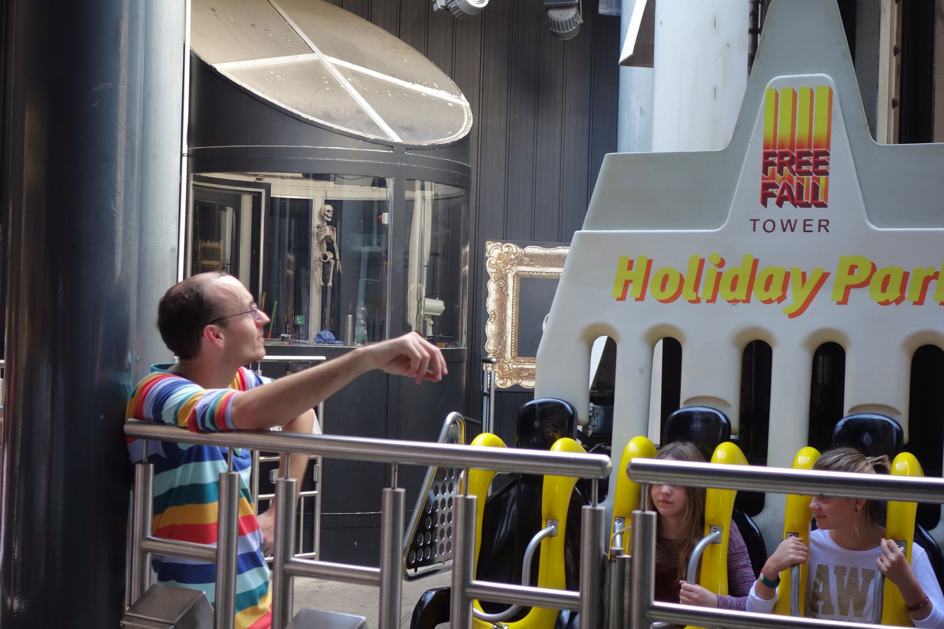 Da ich wusste, wer am Free Fall Tower die Knöpfchen drückt, wollte ich zunächst dort die Lage checken.