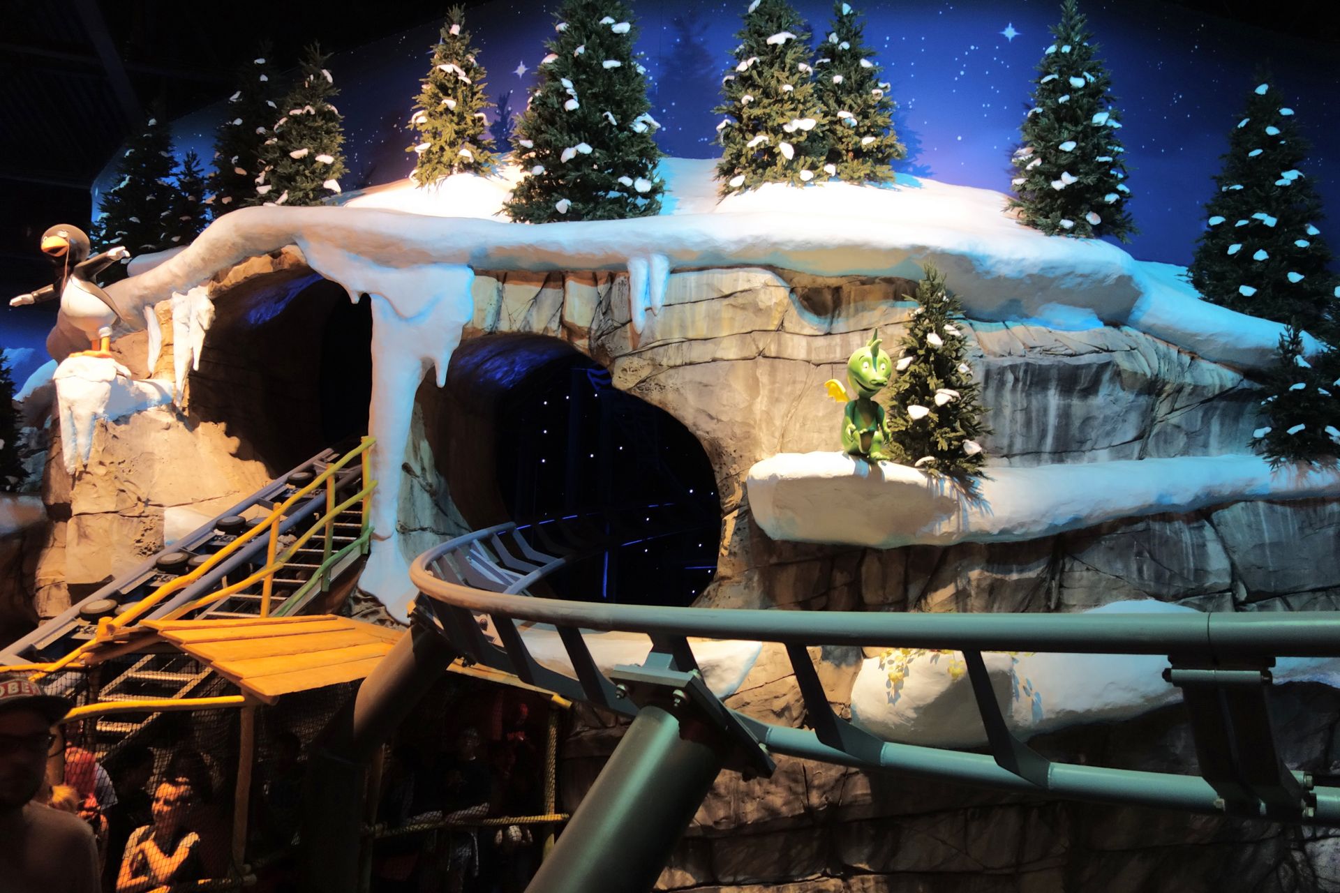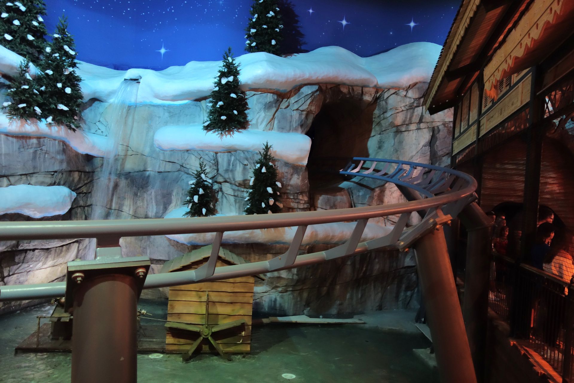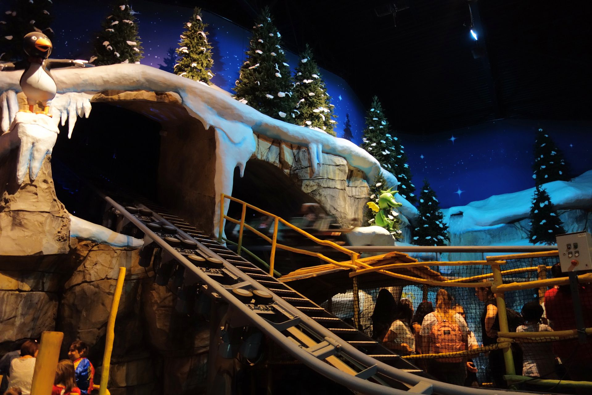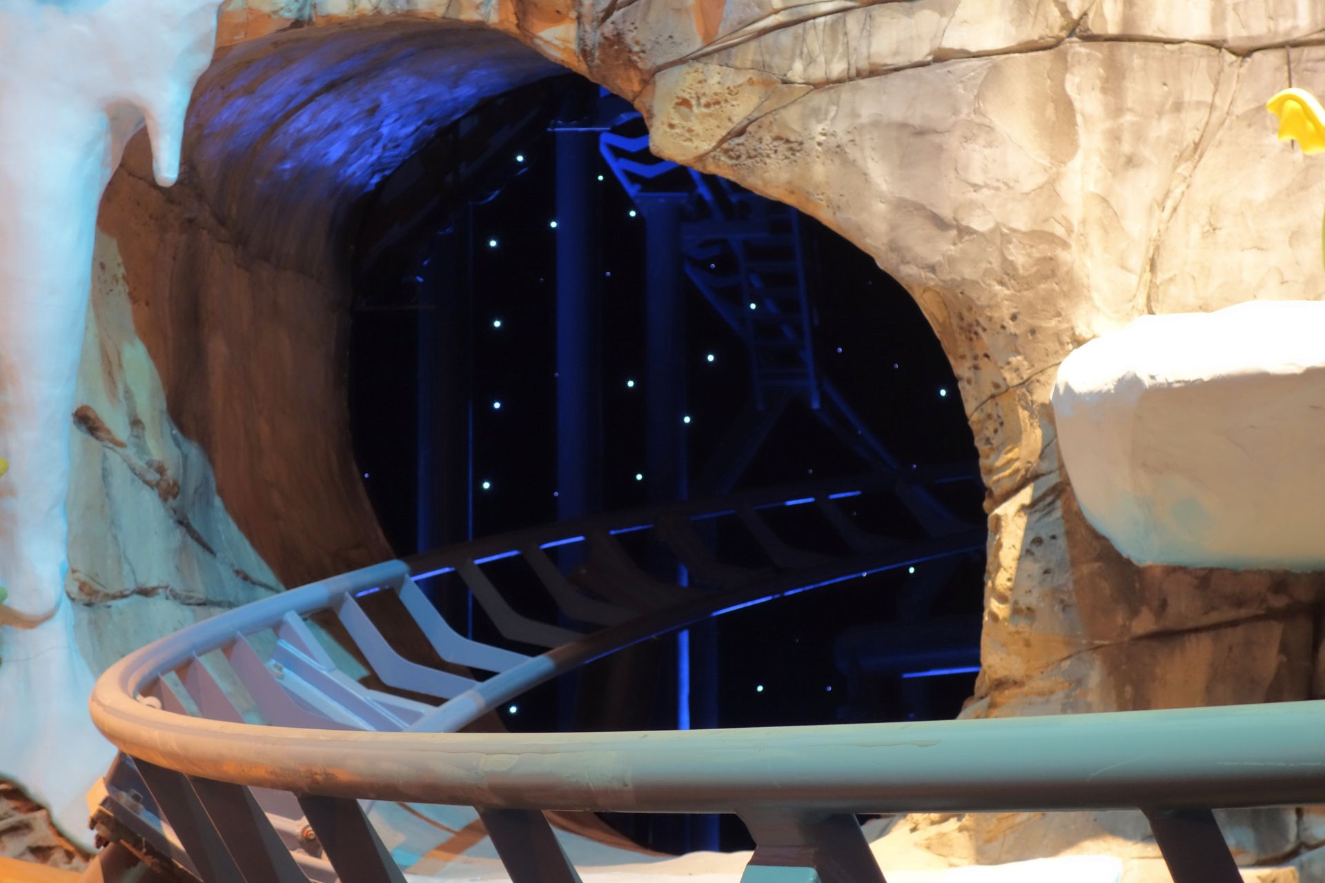 Bis auf den etwas kahlen Felstunnel aber ganz nett gestaltet. Am Schluss konnte ich als Single Rider eine Fahrt vordrängeln.