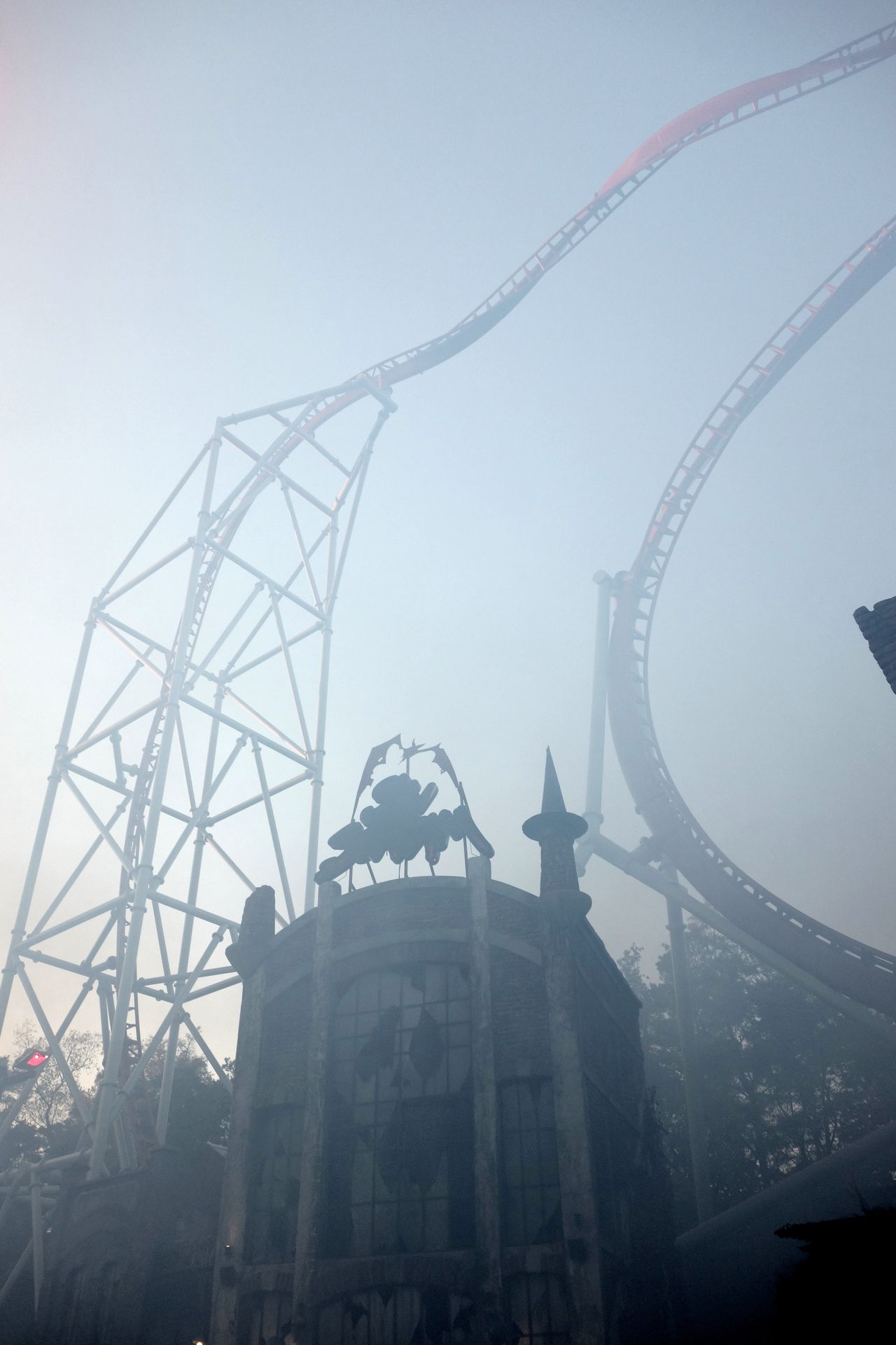 Unser nächstes Ziel war die Zombie Factory, der Bereich vor Sky Scream. Dort liefen die Nebelmaschinen auf Hochtouren.