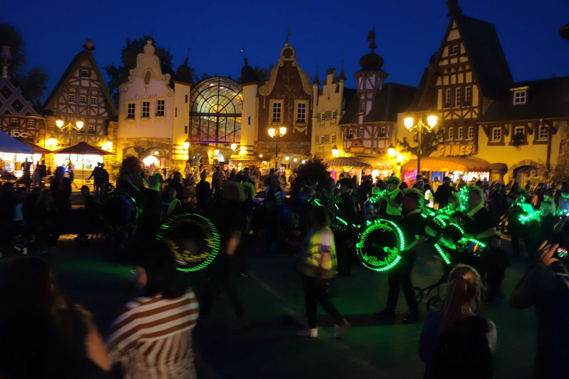 Zwischenzeitlich war auch die Halloween Parade mit ein paar beleuchteten Musikern über den Platz der Fontänen gezogen.