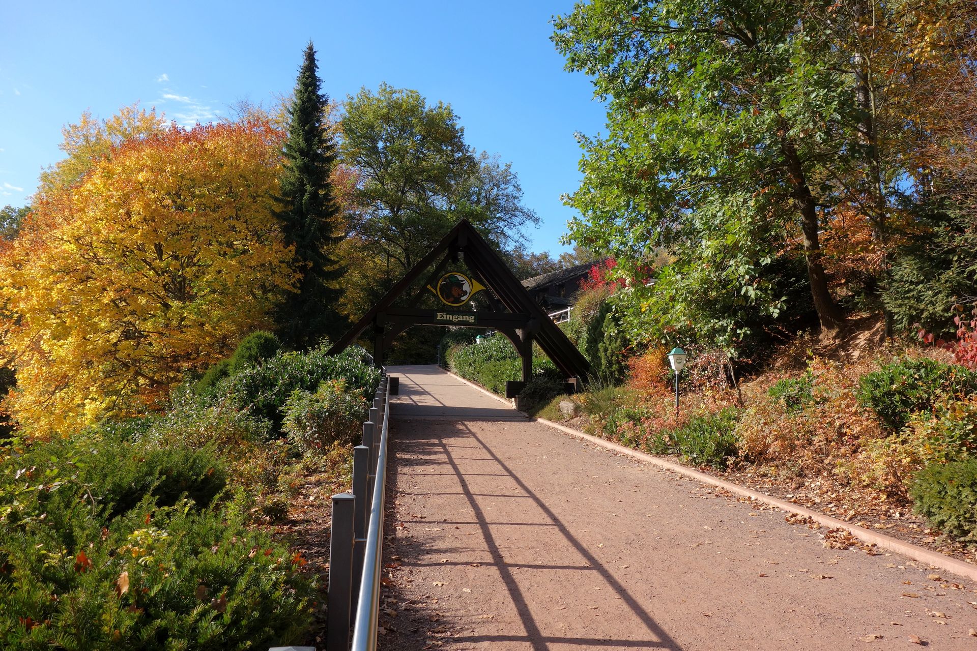 Genau wie im ehemaligen Schwesterpark führt zunächst ein Waldlehrpfad hinunter in den eigentlichen Park.