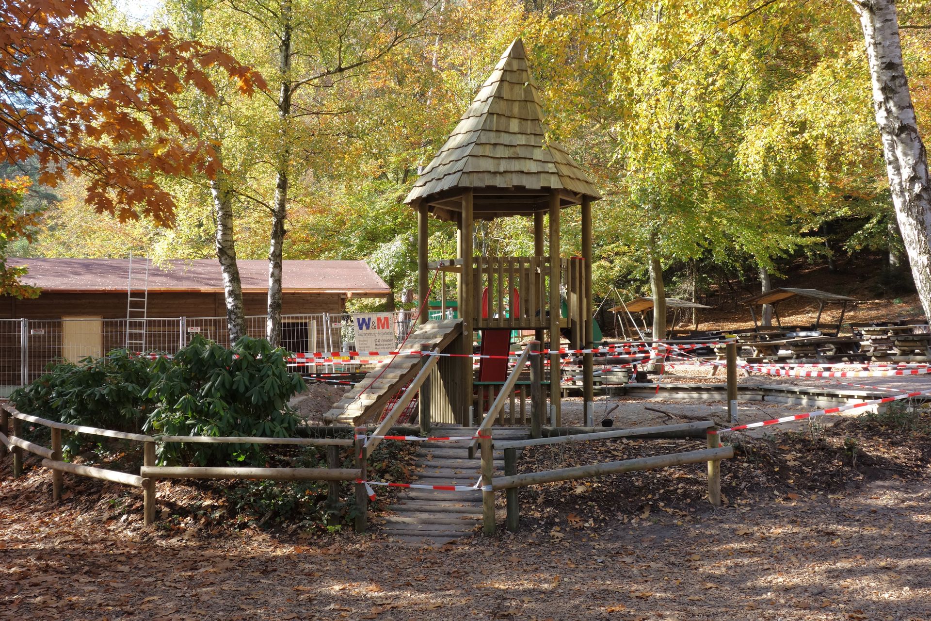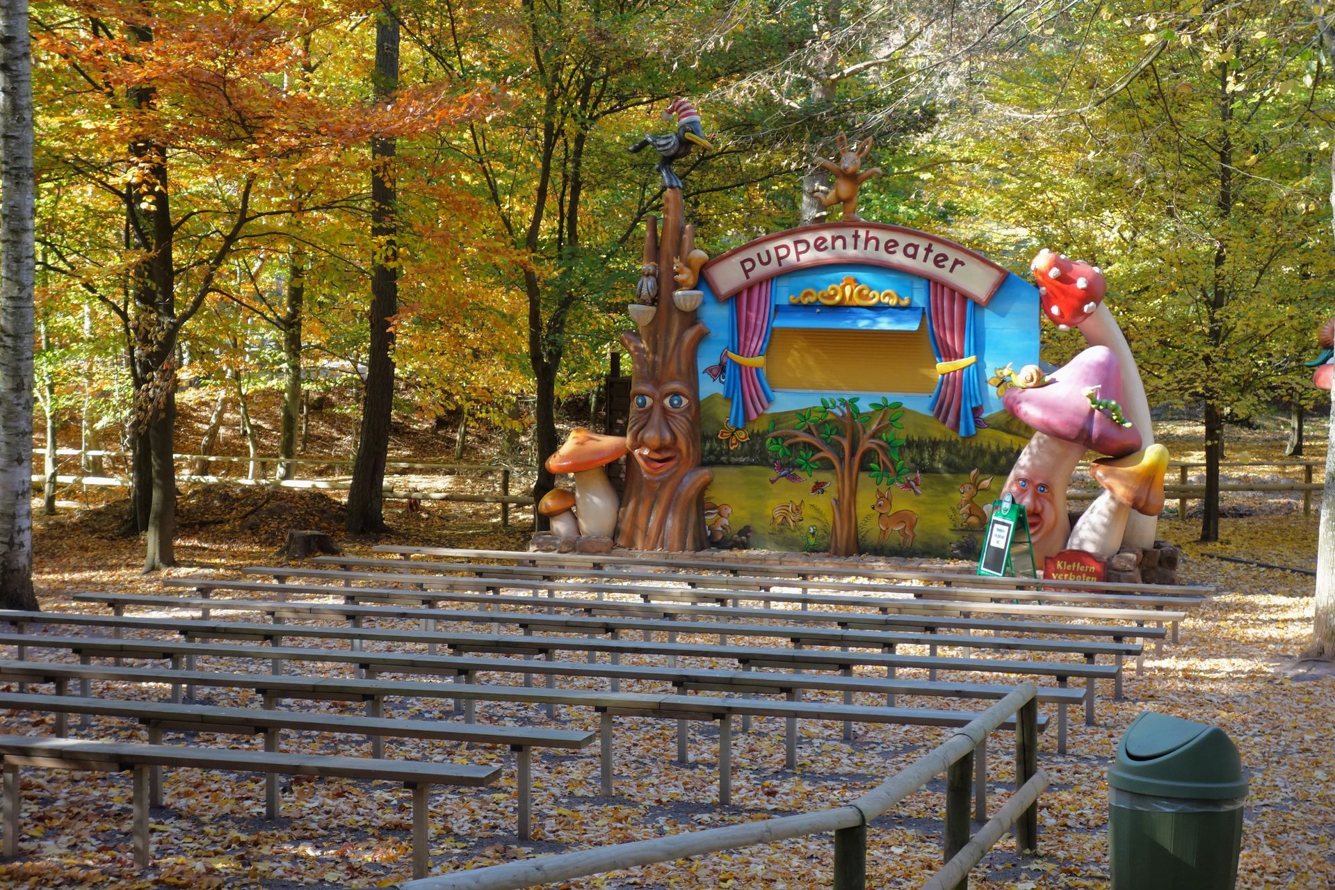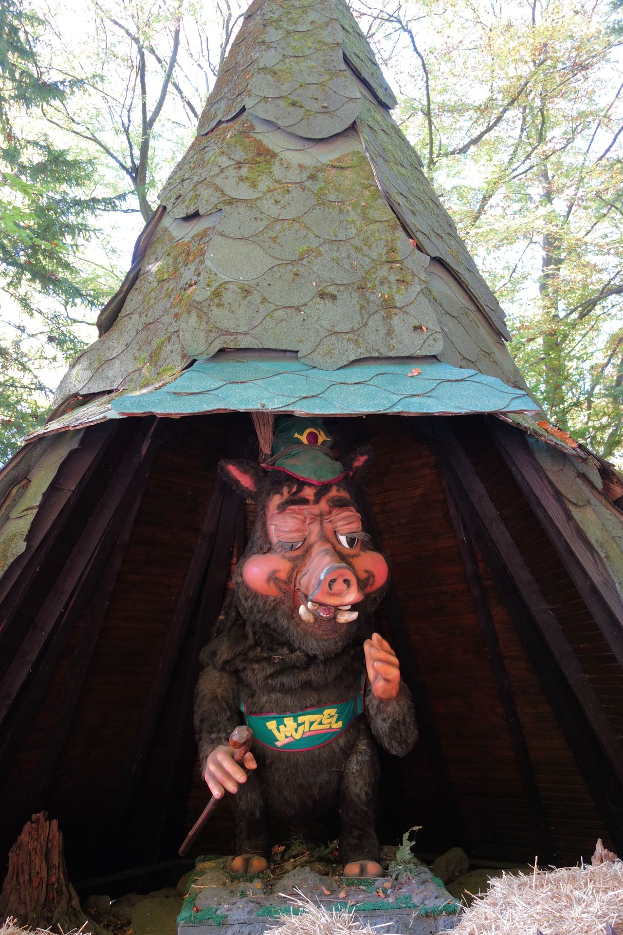 Statt Bärenhöhle gibt es hier allerdings eine kleine Hütte für das Parkmaskottchen Wutzel - an diesem Tag stromlos.