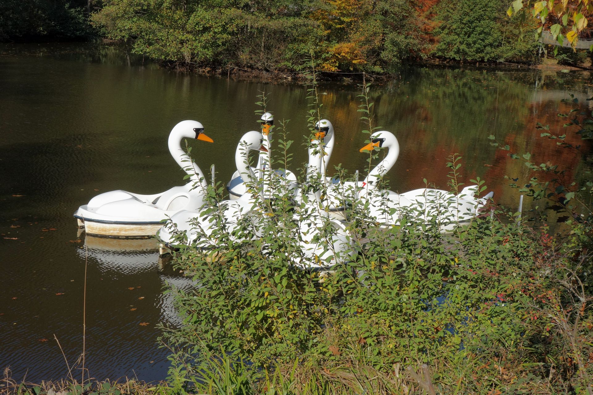 Auf dem See könnte man an normalen Öffnungstagen mit Schwanentretbooten fahren.