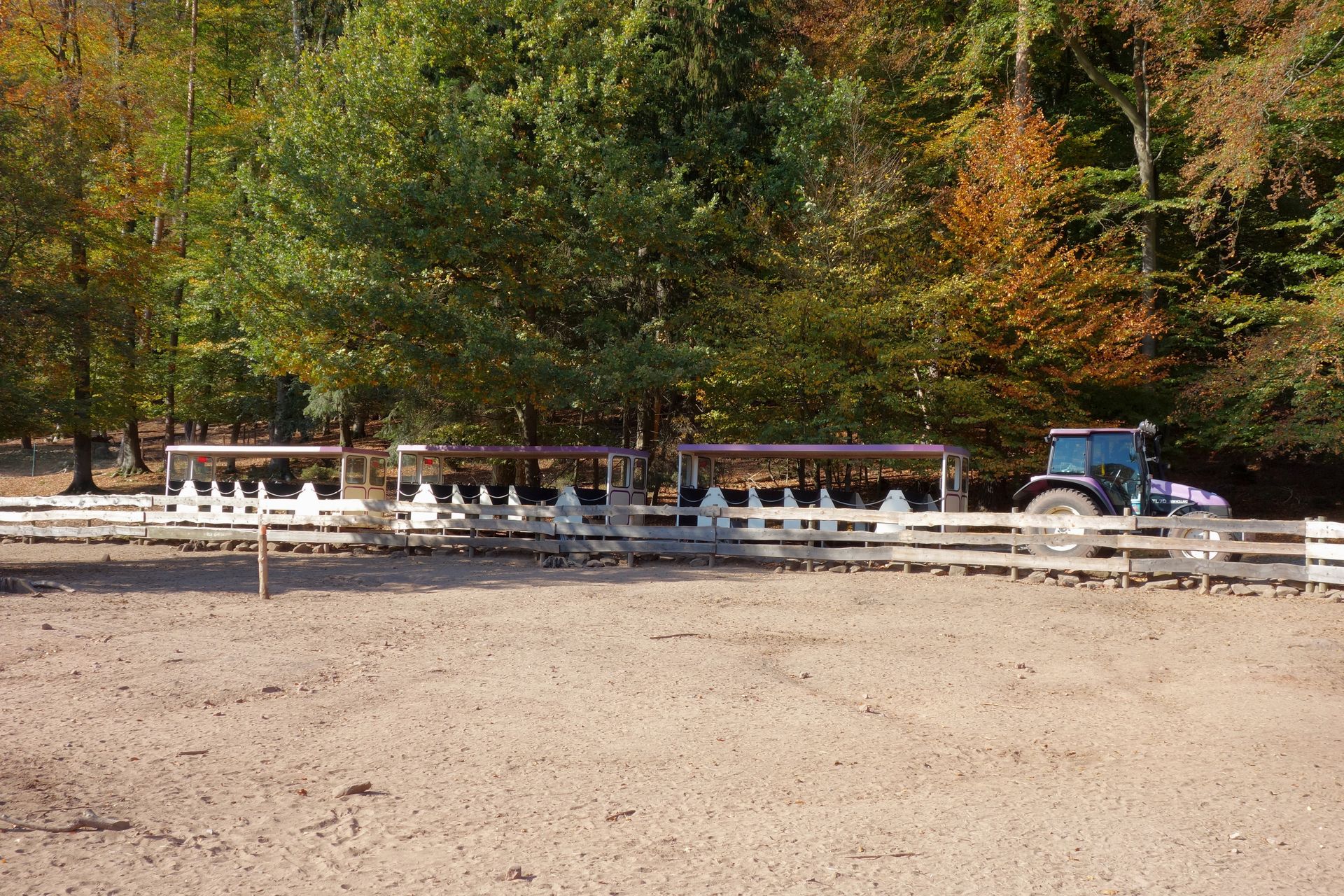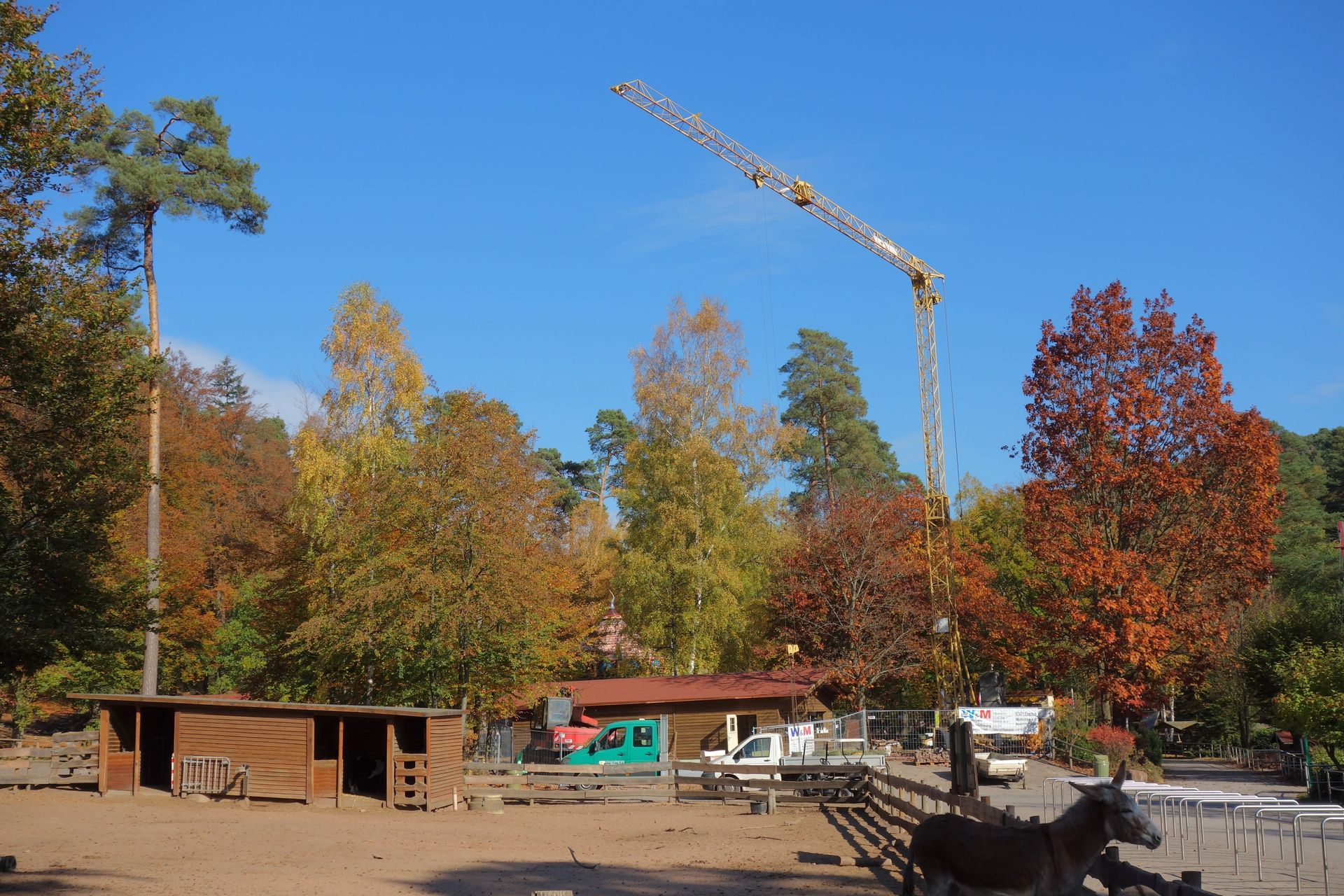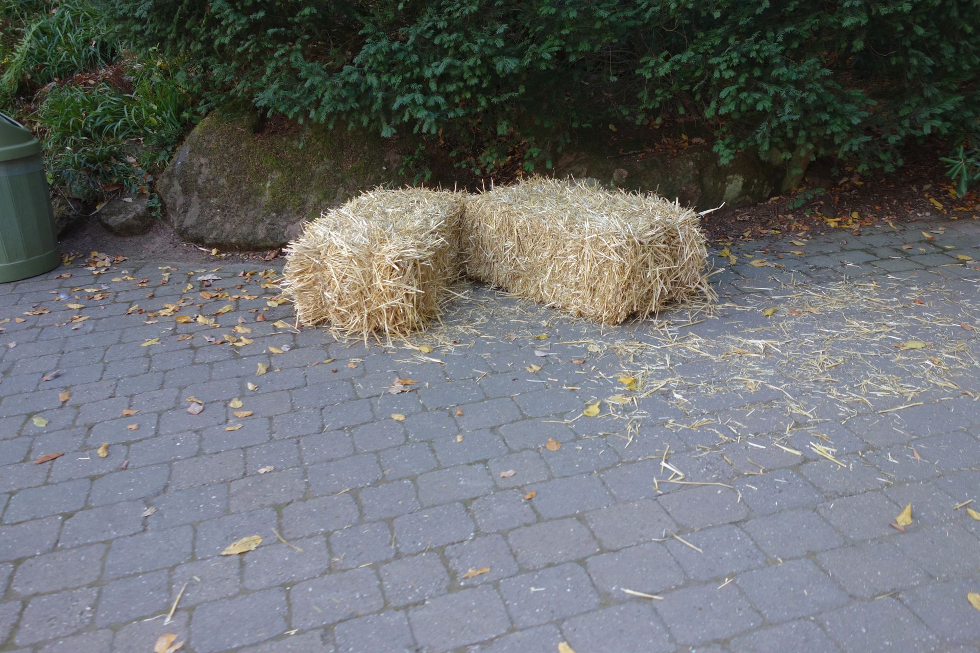 Die einzigen Mitarbeiter, die ich sehen konnte, verteilten vom Anhänger eines Traktors gerade diverse Strohballen im Park.