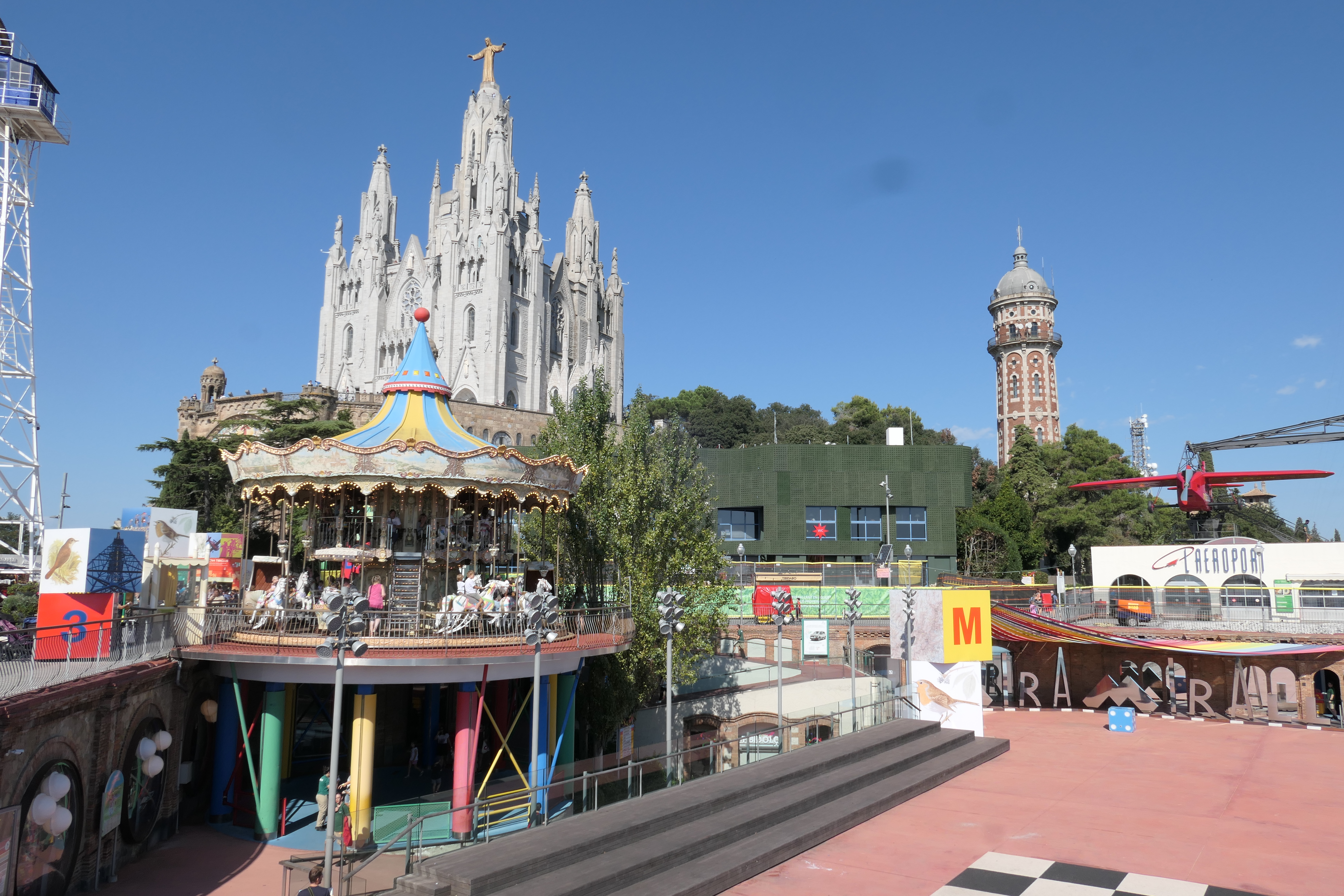 DAS Erkennungssymbol Tibidabos ist, sowie eine Aussichtsfahrt mit pendelnden Feuerwehrkörben (beides habe ich nicht gemacht auf generelles Abraten der Gruppe).