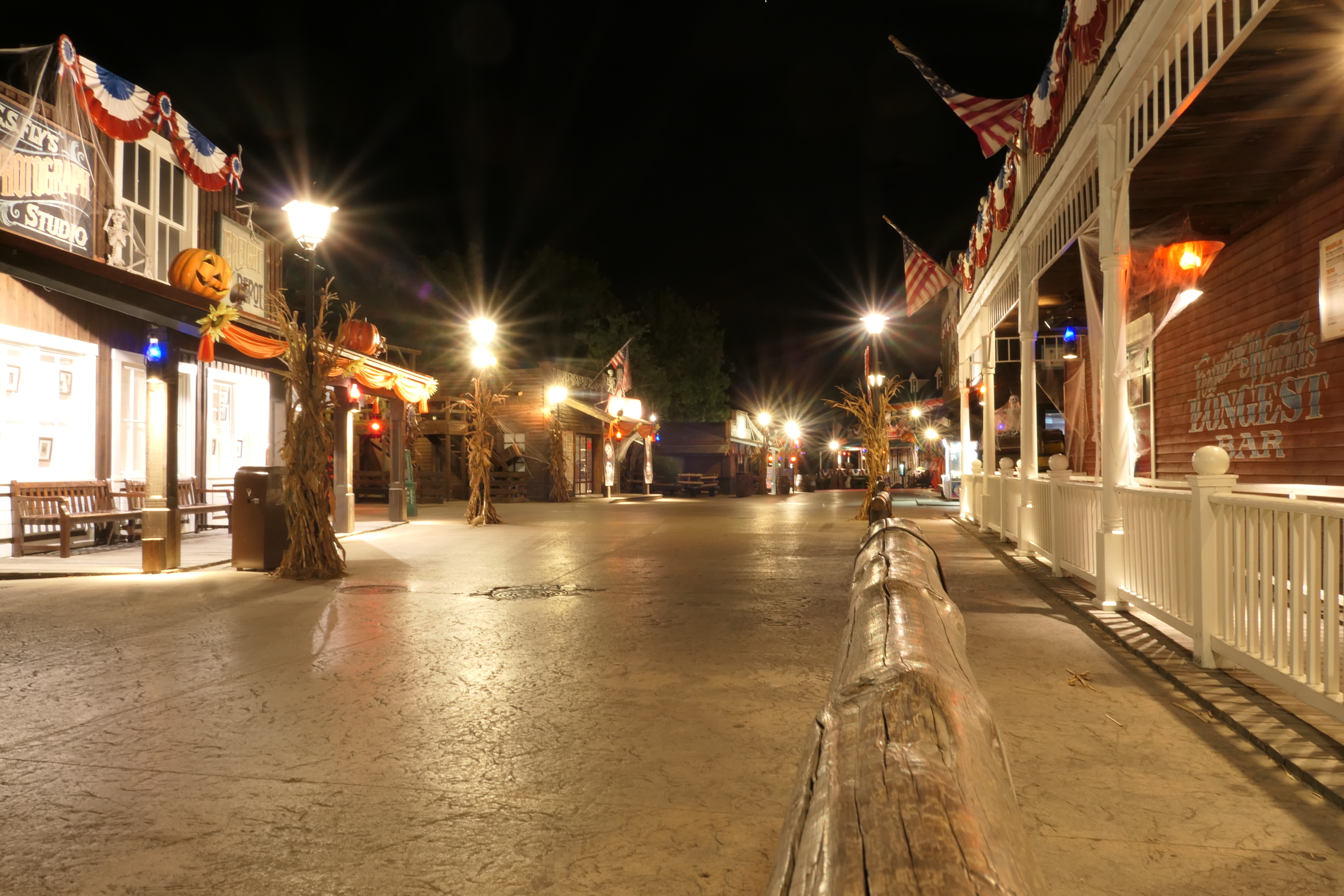 Die Westernstadt grenzt im Übrigen direkt an das Hotel Gold River, in dem wir nächtigten. Das Hotel war eine Stadt für sich. Es gibt mit Sicherheit Parks die einen kleinere Westernbereich haben als dieser Hotelkomplex! Dennoch reicht die Besucherzahl offenbar nicht aus, jeden Tag eine Bar zu öffnen. Heute Abend hatten wir aber noch kein Problem.
