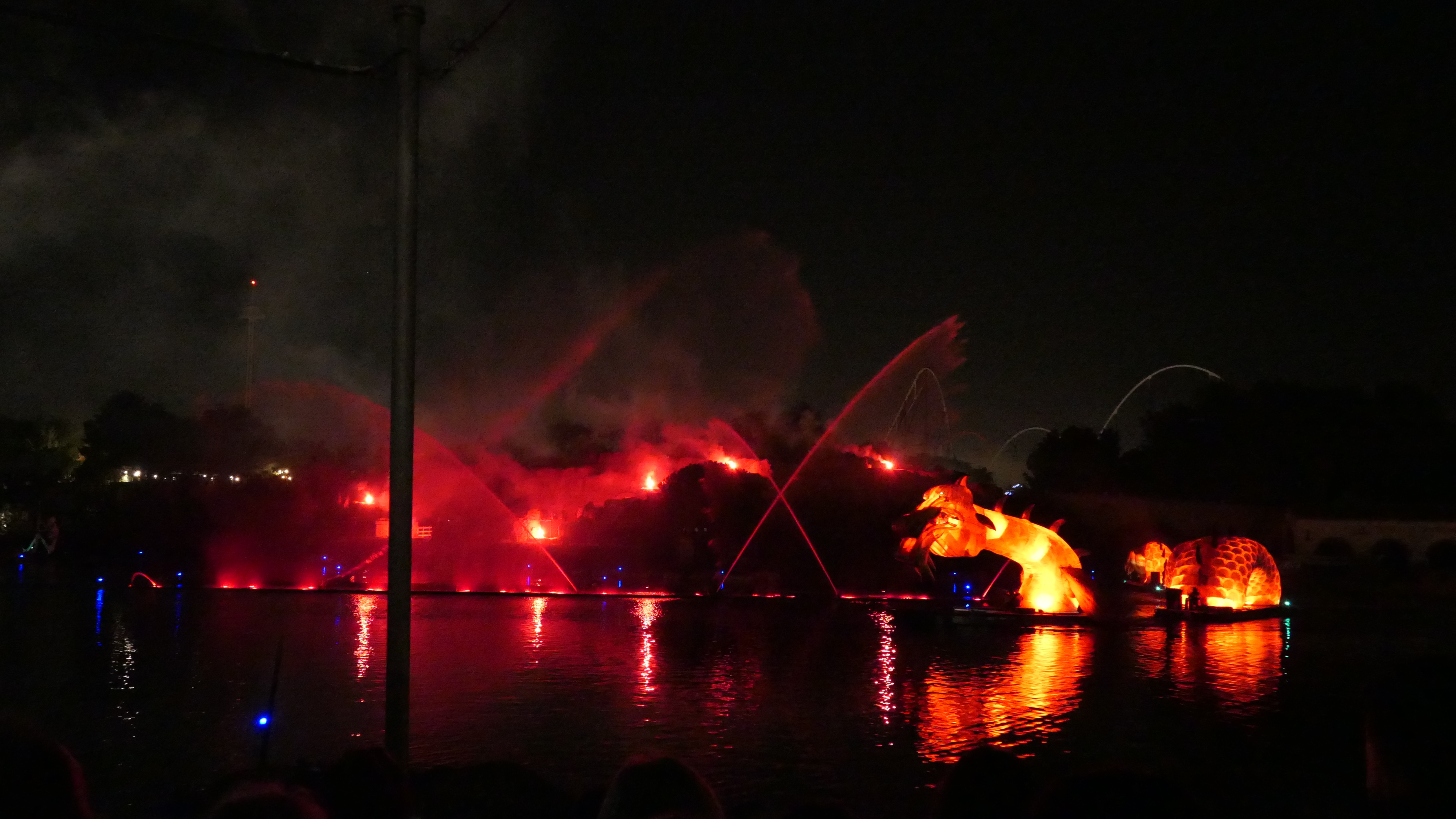 Maliboy sind wir nochmal durch den nächtlichen Park getapst und sind dabei auf die Halloween-Parade und eine aufwendige Show gestolpert, die auf dem Eingangssee dargeboten wurde.