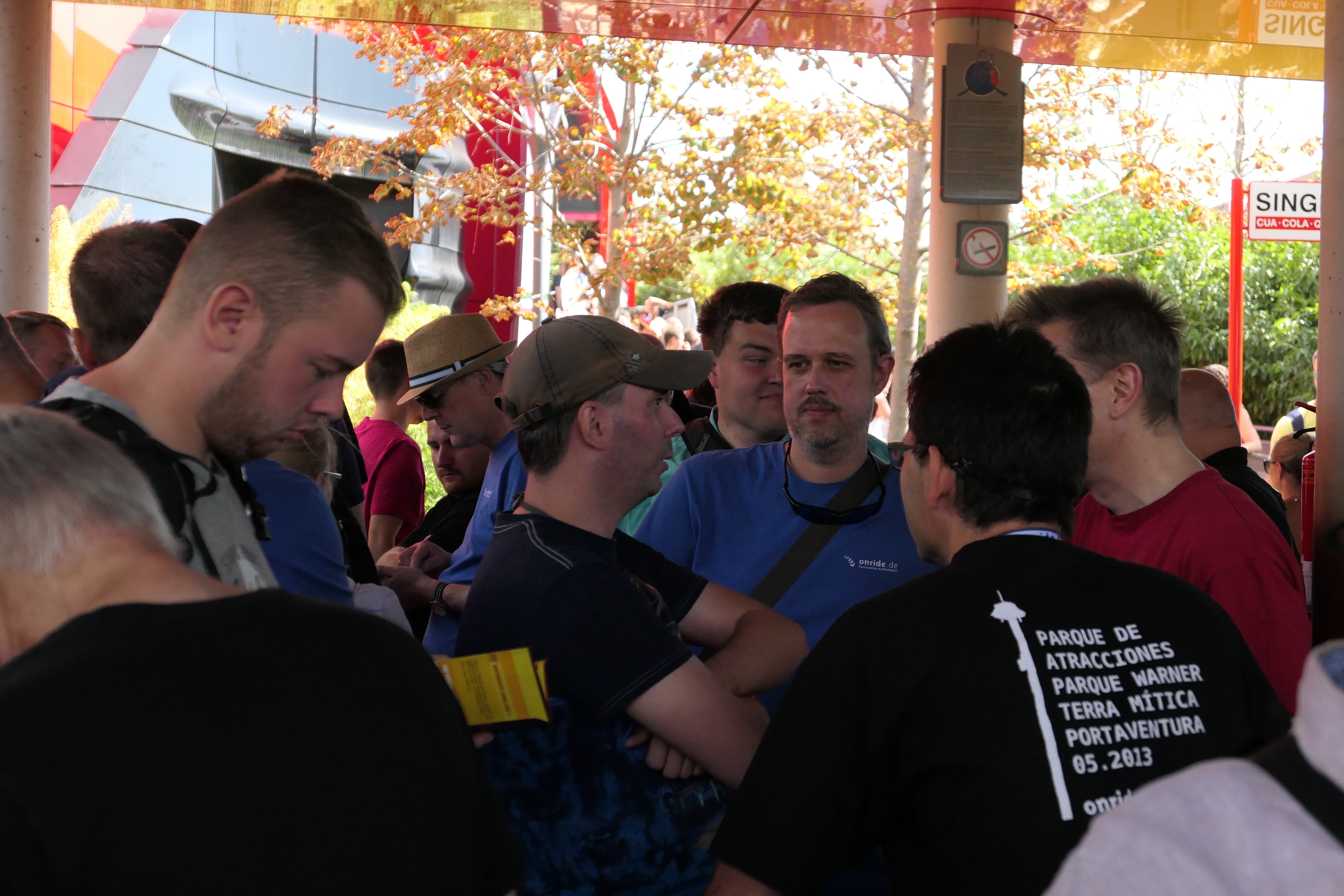 Am nächsten Tag trafen wir uns um 15:00 am Portal von Shambhala (an der man an allen Tagen ununterbrochen ein Grüppchen onrider traf) zu einem Gruppenfoto. Danach legten wir Shambhala für die normal-Sterblichen komplett lahm, als wir kollegial den Express-Zugang unter dem Motto onride.de/kadent stürmten. Die bösen Blicke des Pöbels konnte ich durchaus verstehen, haben wir doch die Wartezeit von 30 Minuten auf 60 Minuten verdoppelt. Dank sei der sehr professionellen Zuteilung von lediglich 8 Personen aus der normalen Schlange und folgend mindestens zwei Drittel onridern pro Zug. Der Stimmung war das milde gesagt sehr zuträglich. Selbst für Außenstehende, die noch danach ebenfalls jede Fahrt mit Applaus würdigten.