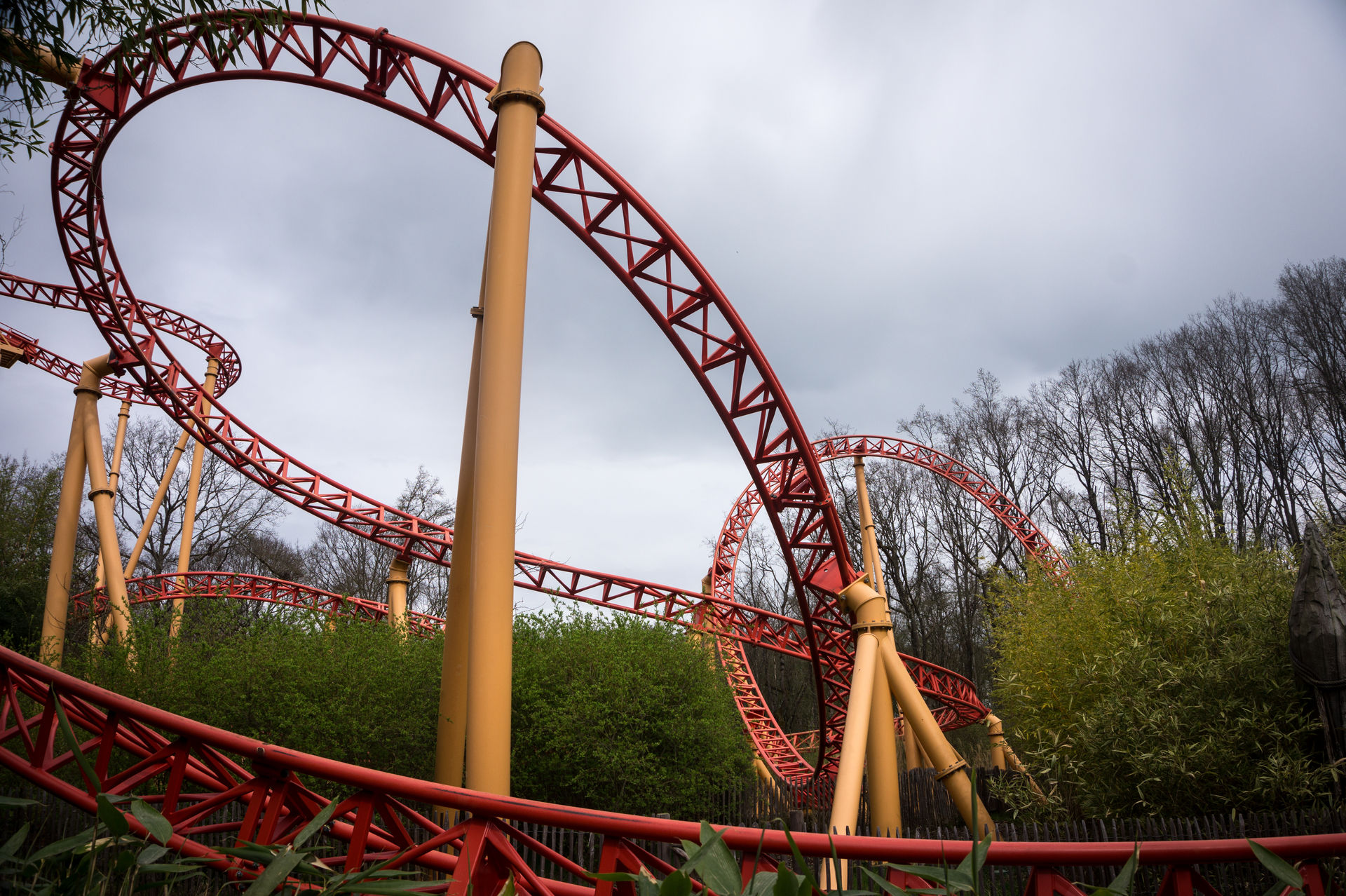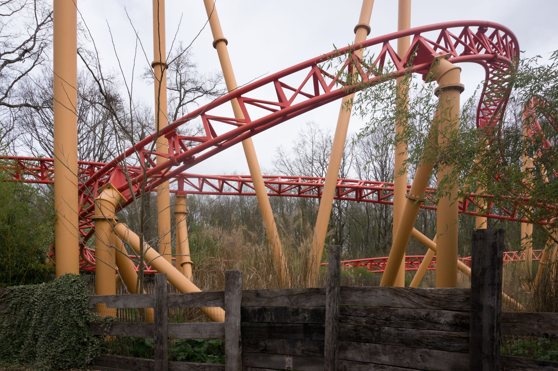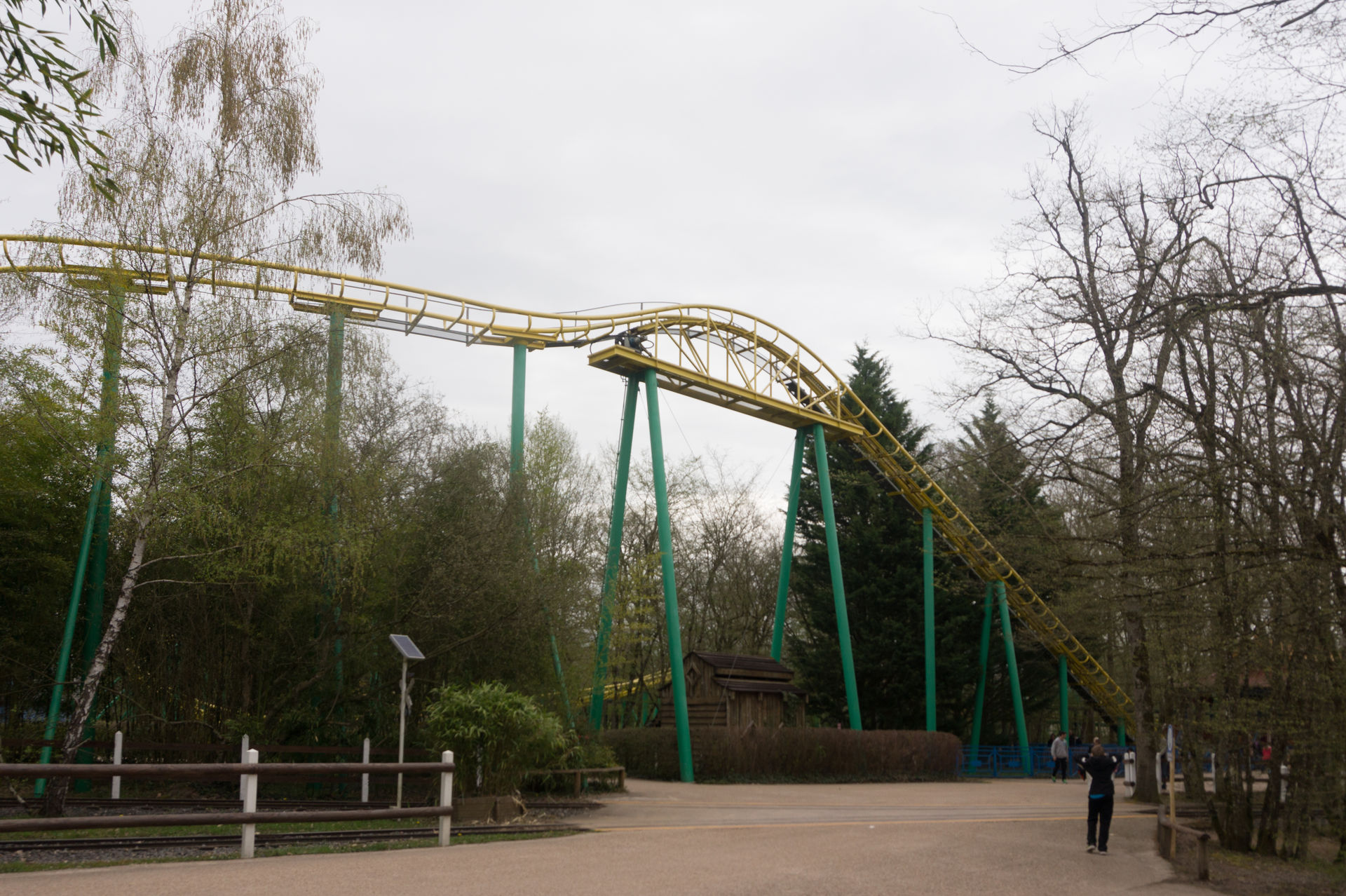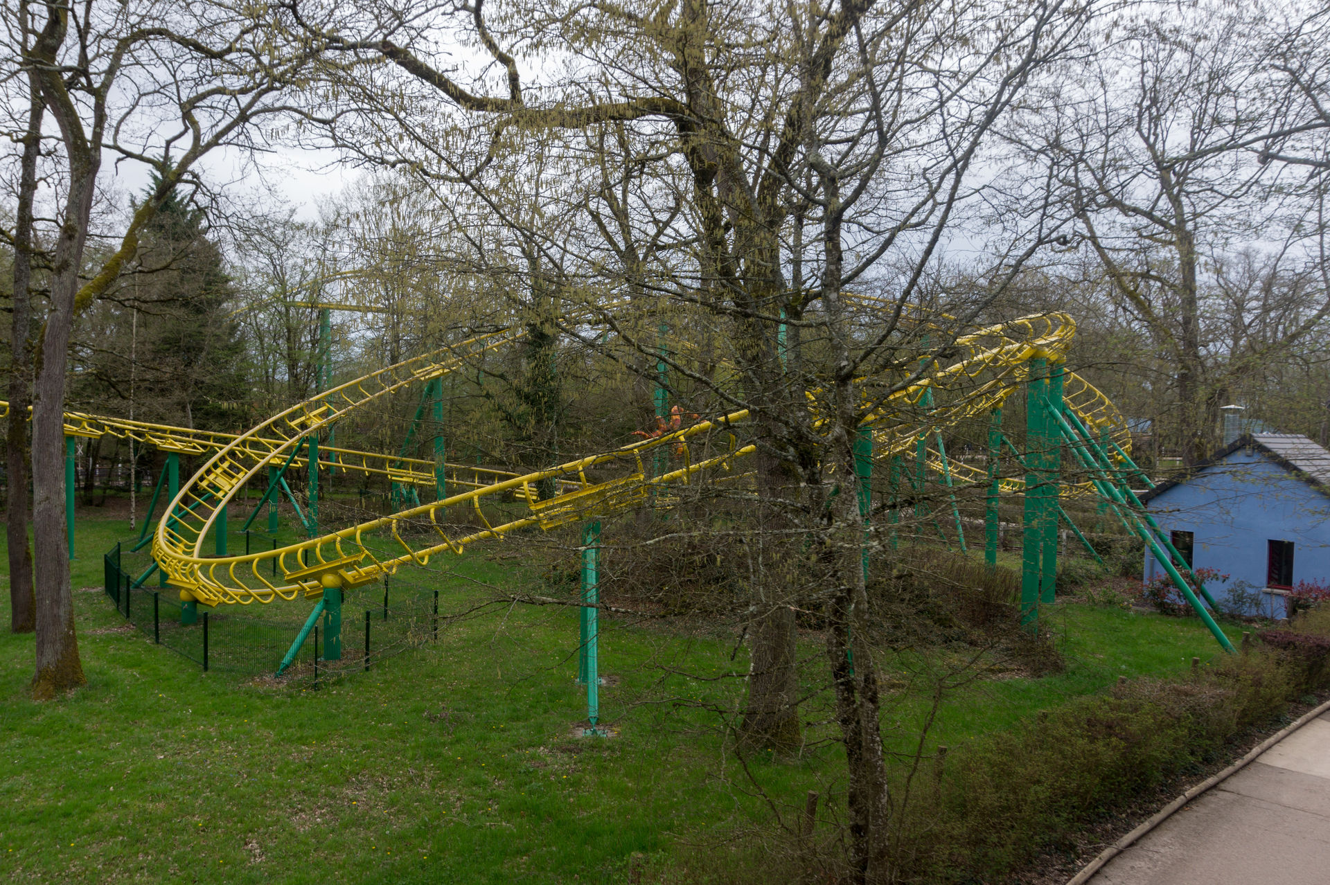 Nach einer solchen Besonderheit, bietet der Park doch sicherlich keine weiteren Eigentümlichkeiten mehr, oder? Tja, falsch gedacht. Direkt neben dem Wellenflug erstreckt sich die Achterbahn Tigre de Sibérie in die Höhe – eine Großachterbahn aus dem Hause Reverchon. Was sich der Karussellbauer und spätere Drehgondelachterbahnspezialist sich bei dieser Anlage gedacht hat, erleben wir am besten dadurch in dem wir direkt in die Hartschalen des Zuges steigen.