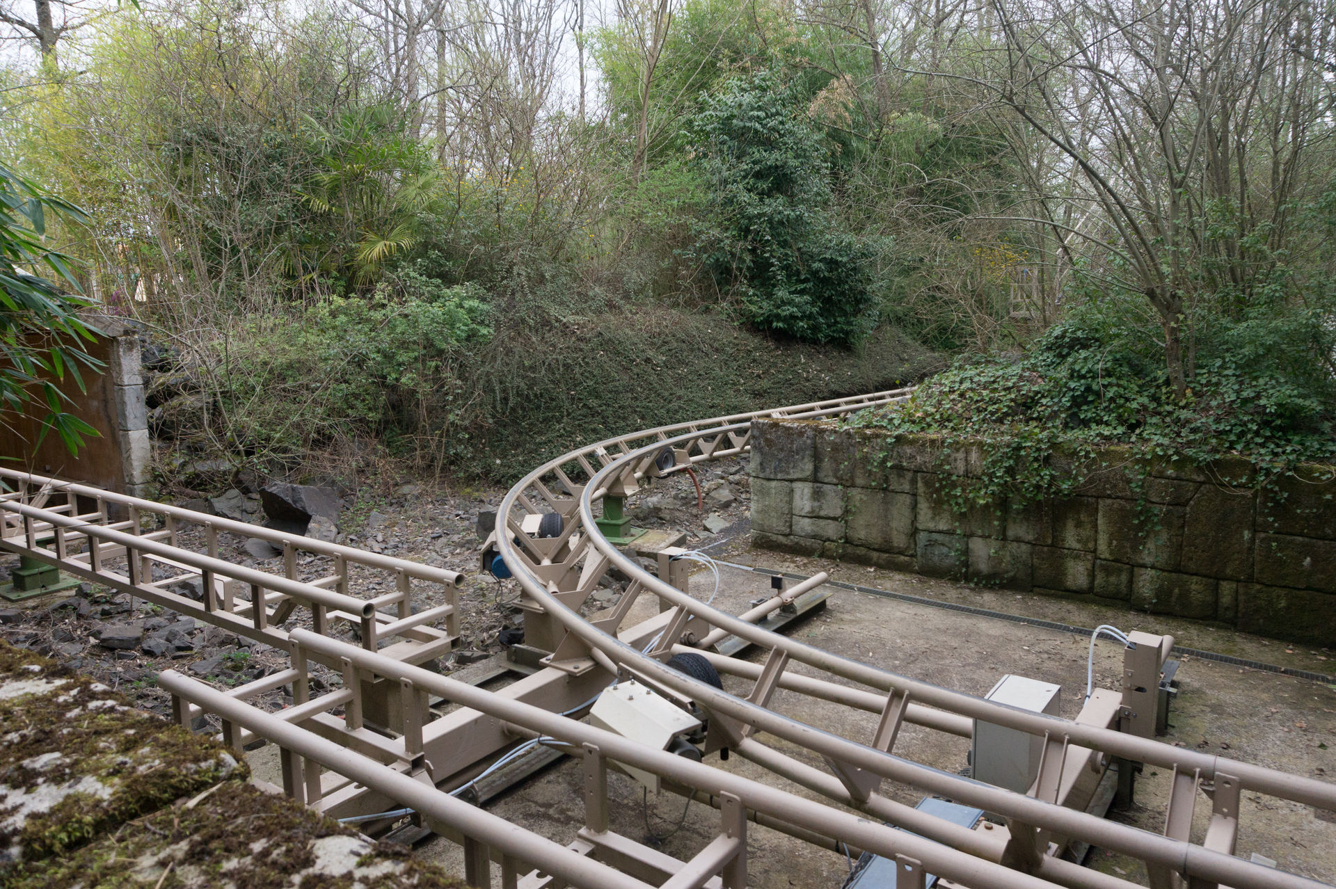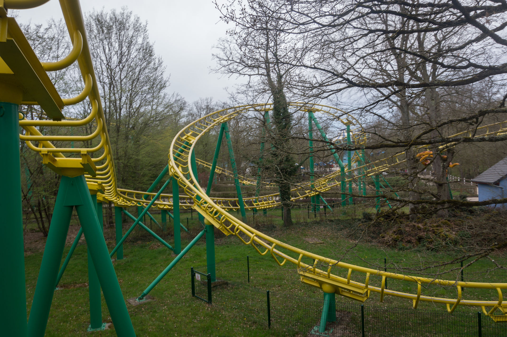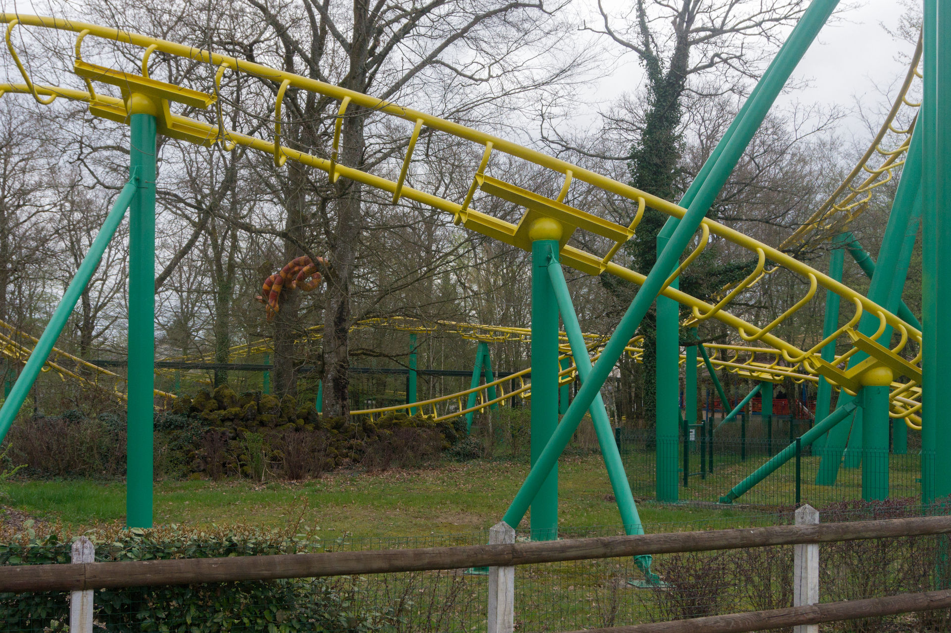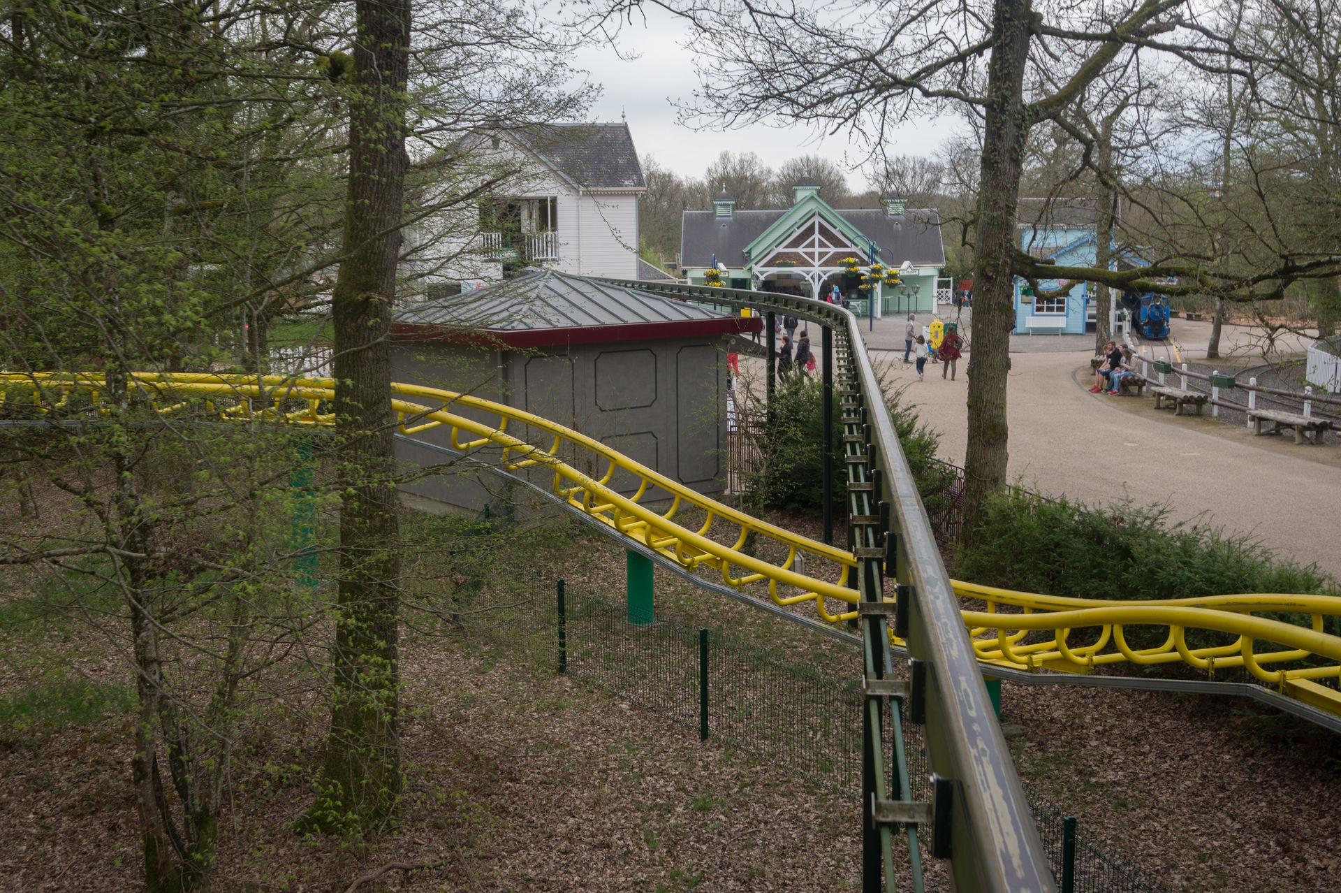 Bei der nächsten Anlage hingegen kann man sich über eine solche Aussage streiten. Ich mache es mir diesmal relativ einfach und konzentriere mich auf die historische Bedeutung eines King Kong Fahrgeschäfts in Le Pal, wonach der Park eben jene Neuauflage des Herstellers HUSS brauchte, da ja viele Kunden sich an die typisch französische Aussichtsfahrt (ein aktives Exemplar befindet sich auch heutzutage noch im Freizeitpark Cigoland) aus ihrer Kindheit erinnerten und es schade fanden, eben jene Anlage nicht mehr im Park anzutreffen. Auch ist die Gestaltung der Warteschlange mit den verkrümmten Eisenbahnwagons im Wald überaus gelungen. Die Anlage wirkt hier – im Gegensatz zum belgischen Freizeitpark Bobbejaanland – stimmig inszeniert und passend. Doch ob diese Punkte über das belanglose Herumgewackel in luftiger Höhe hinwegsehen lassen, ich weiß es nicht.