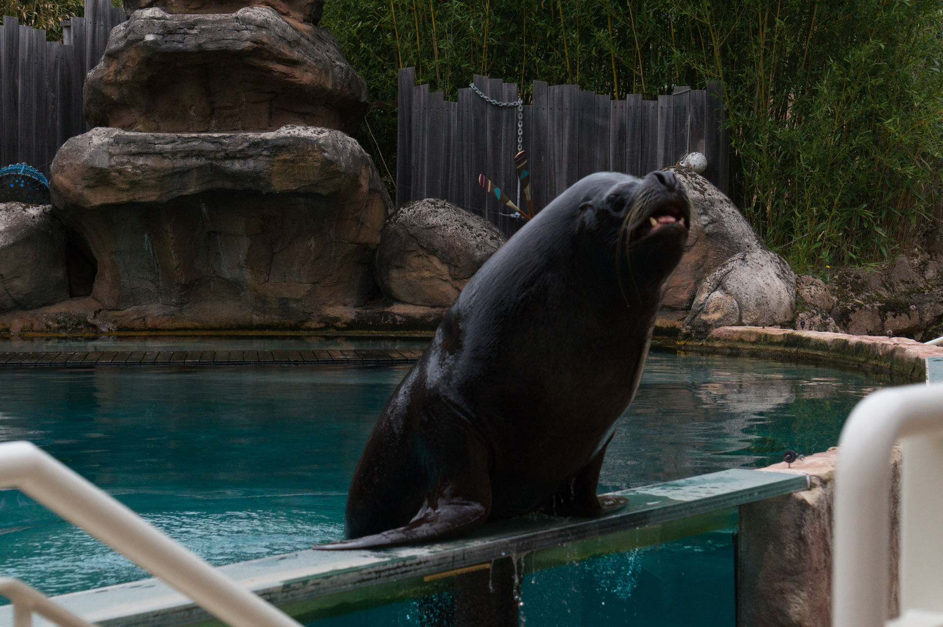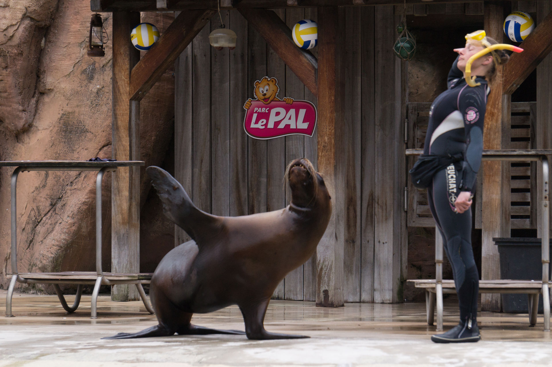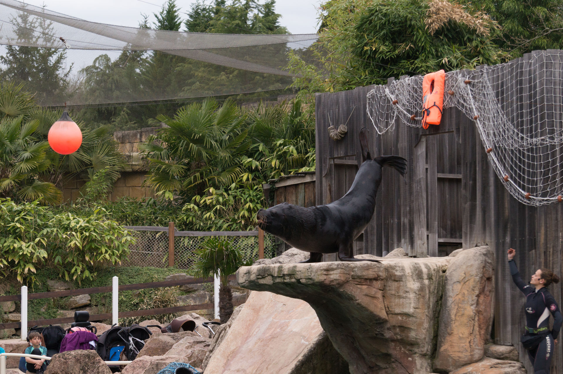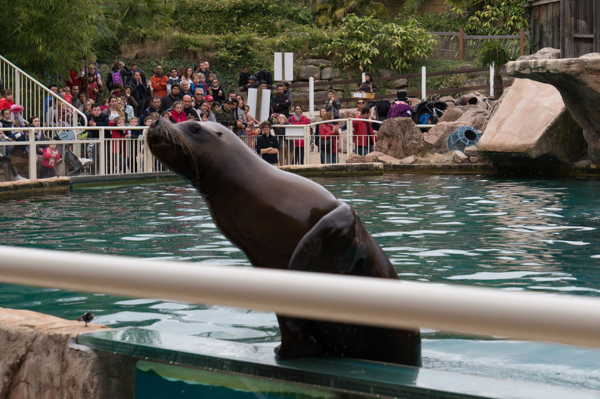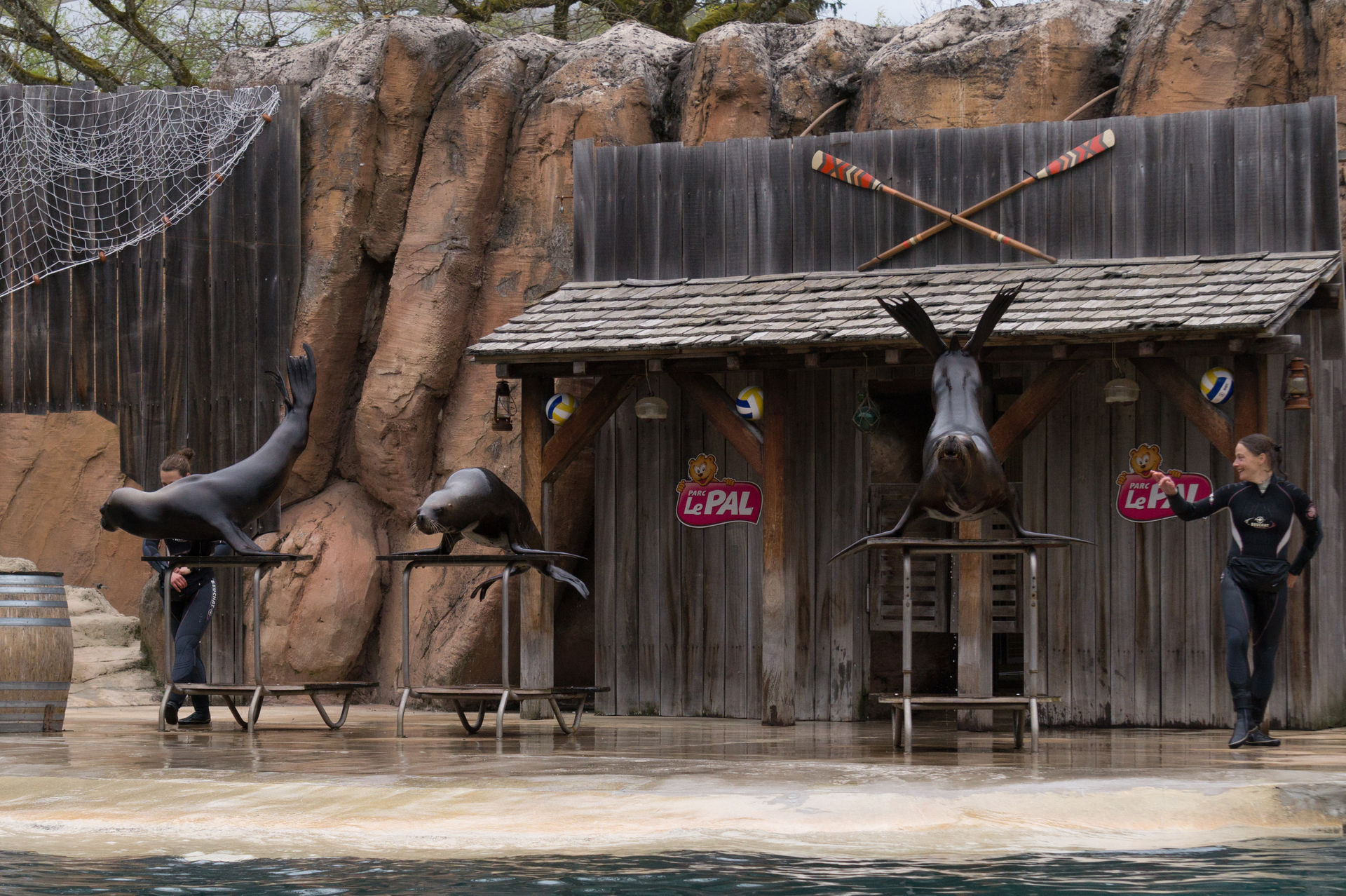 Nach einem flüchtigen Blick auf die Flamingos ist auch langsam die Zeit gekommen im großen Stadion Platz zu nehmen, denn die Seelöwenshow Le Ballet des Otaries sollte gleich beginnen. Neben allerlei Slapstick erwartet den Besucher hier ein fulminantes Spektakel aus Balanciertricks, Sprüngen, Schwimmpassagen mit den Trainern und eine fiese Dusche für ausgewählte Parkbesucher. Auch diese Show sollte man gesehen haben.