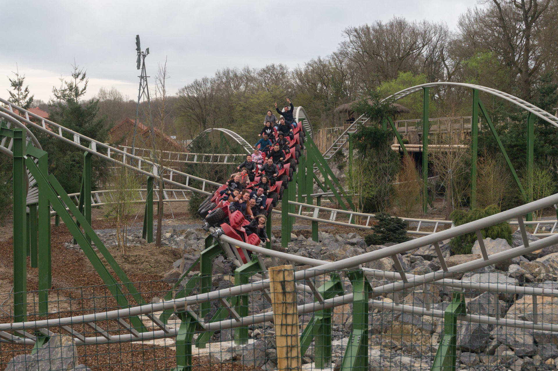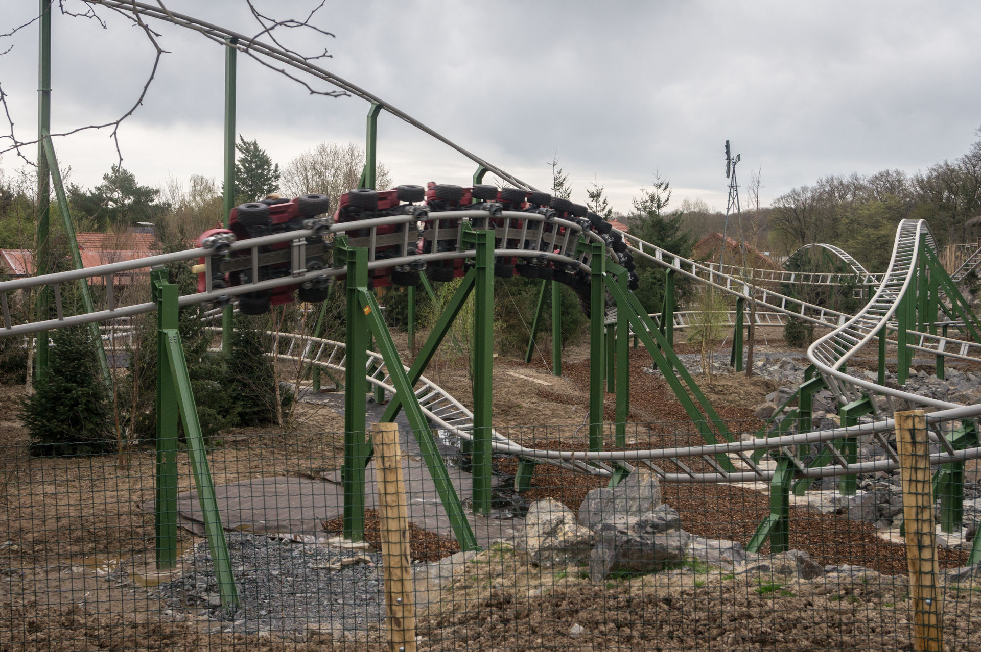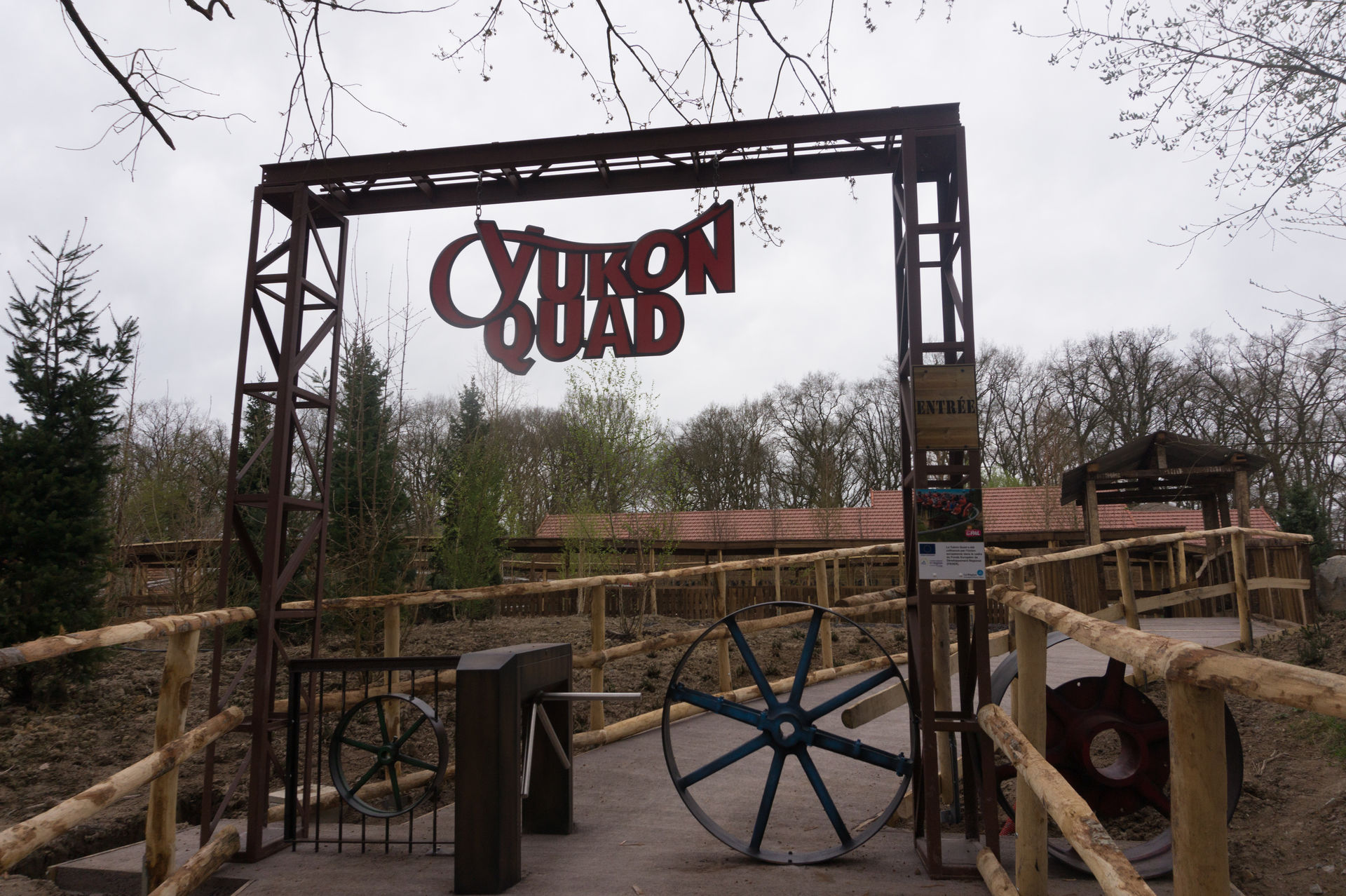 Vorbei an den Erdmännchen, deren Gehege wirklich sehr versteckt liegt, sowie den Kängurus, Hyänen und Emus zieht es uns nun zur größten und längsten Achterbahn des Parks, dem Family Launch Coaster Yukon Quad. Ich kann ja auch nichts dafür, dass Le Pal die Anlage wirklich mittig in ihren viel zu großen Zoo gepackt hat. Obwohl die Anlage noch nagelneu ist, so wirkt sie bereits unfassbar stimmig, da auch die Vegetation mitspielt. Die Gestaltung der Anlage im Generellen ist jedoch auch eine Klasse für sich. Doch bevor ich hier noch weiter schwafle, lasst uns doch lieber auf einen der Quads Platz nehmen.