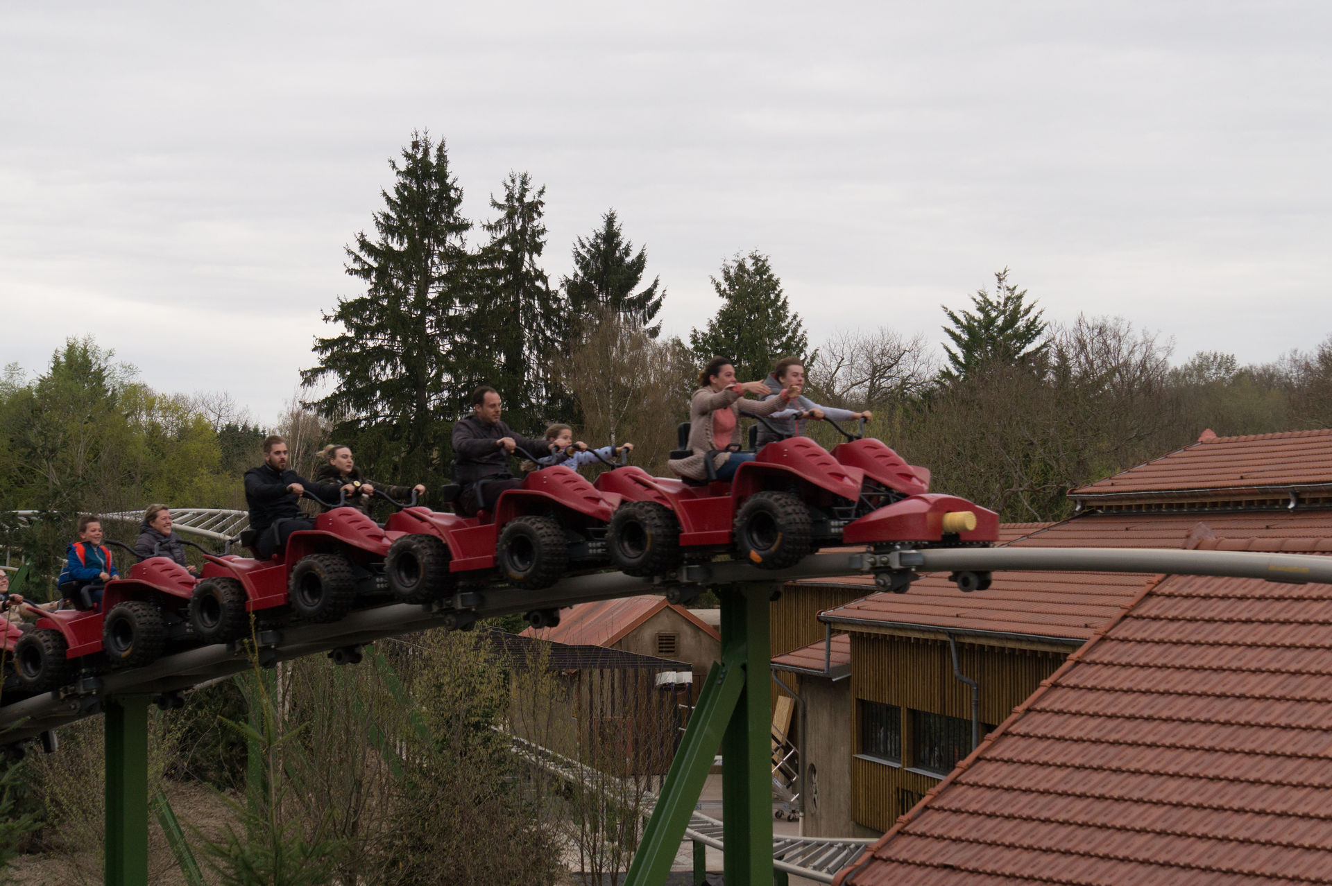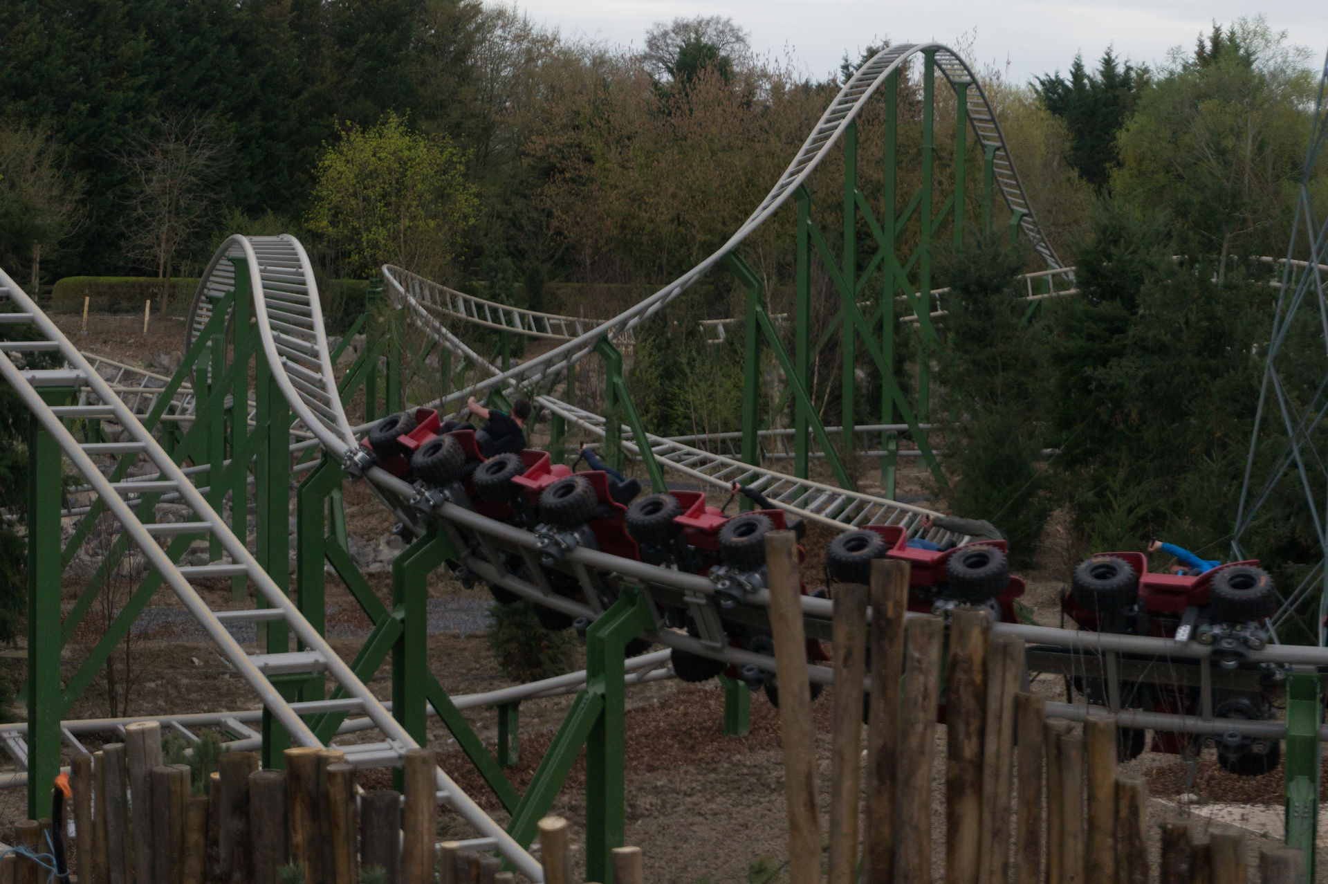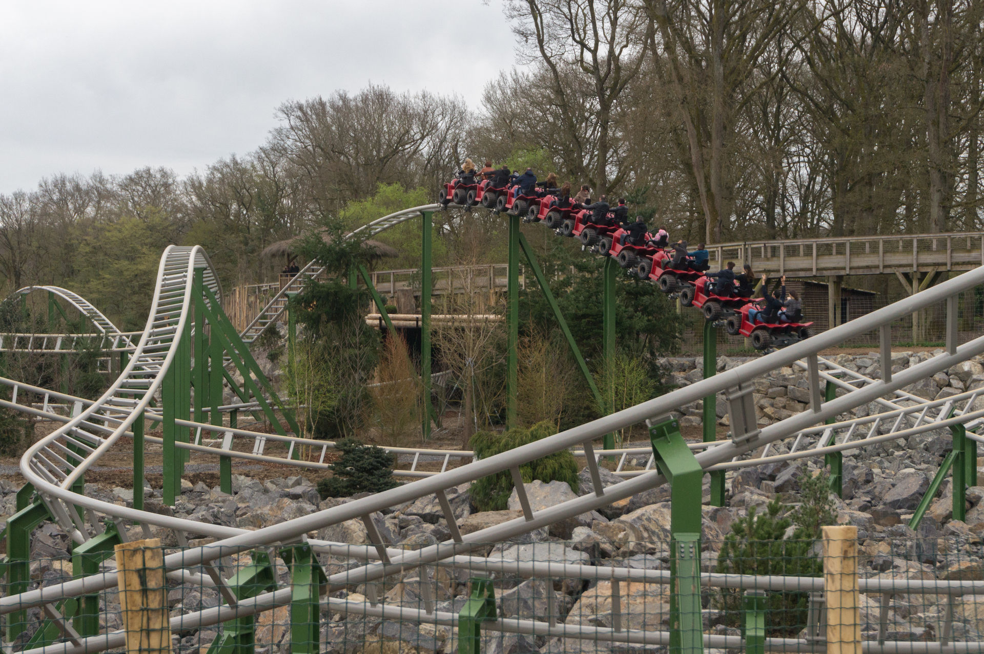 Vorbei an den Erdmännchen, deren Gehege wirklich sehr versteckt liegt, sowie den Kängurus, Hyänen und Emus zieht es uns nun zur größten und längsten Achterbahn des Parks, dem Family Launch Coaster Yukon Quad. Ich kann ja auch nichts dafür, dass Le Pal die Anlage wirklich mittig in ihren viel zu großen Zoo gepackt hat. Obwohl die Anlage noch nagelneu ist, so wirkt sie bereits unfassbar stimmig, da auch die Vegetation mitspielt. Die Gestaltung der Anlage im Generellen ist jedoch auch eine Klasse für sich. Doch bevor ich hier noch weiter schwafle, lasst uns doch lieber auf einen der Quads Platz nehmen.