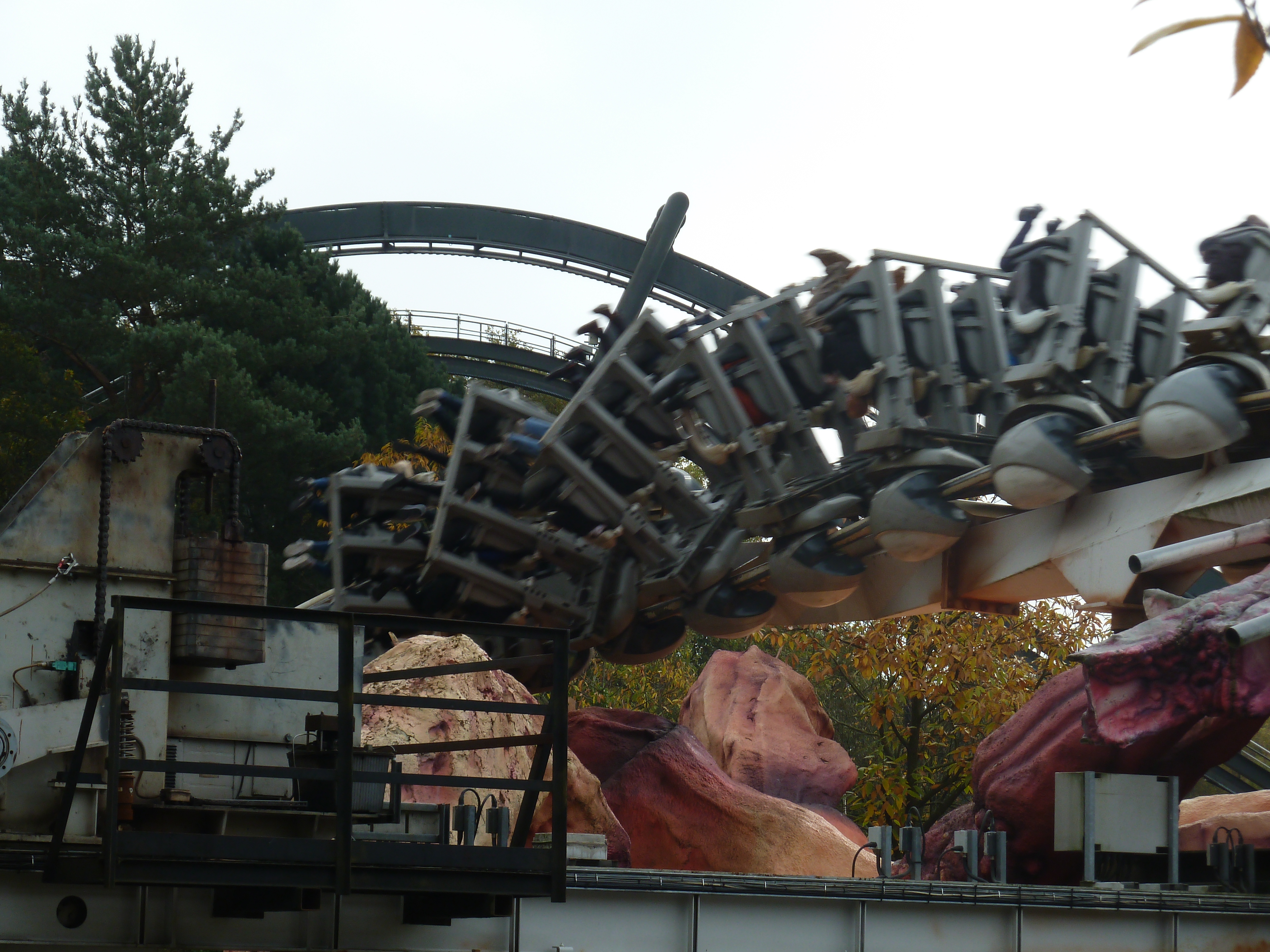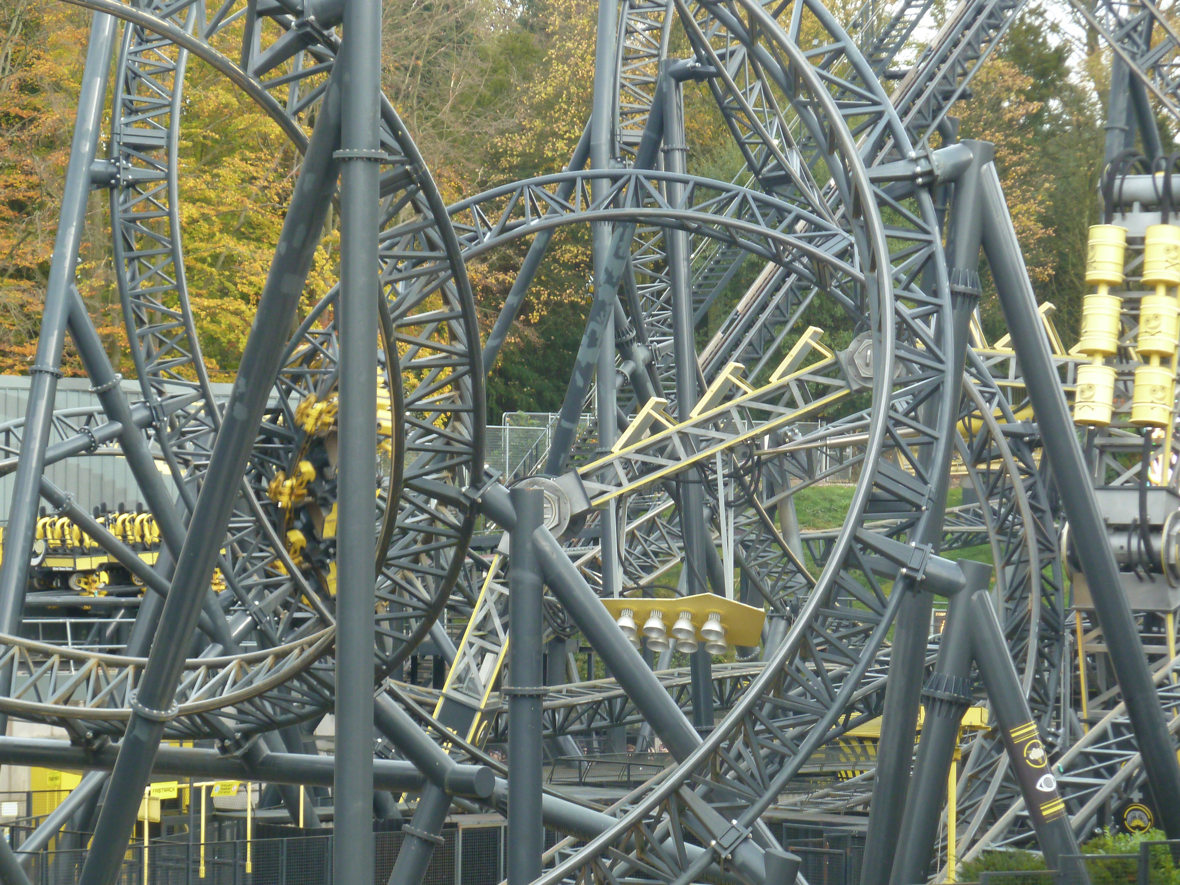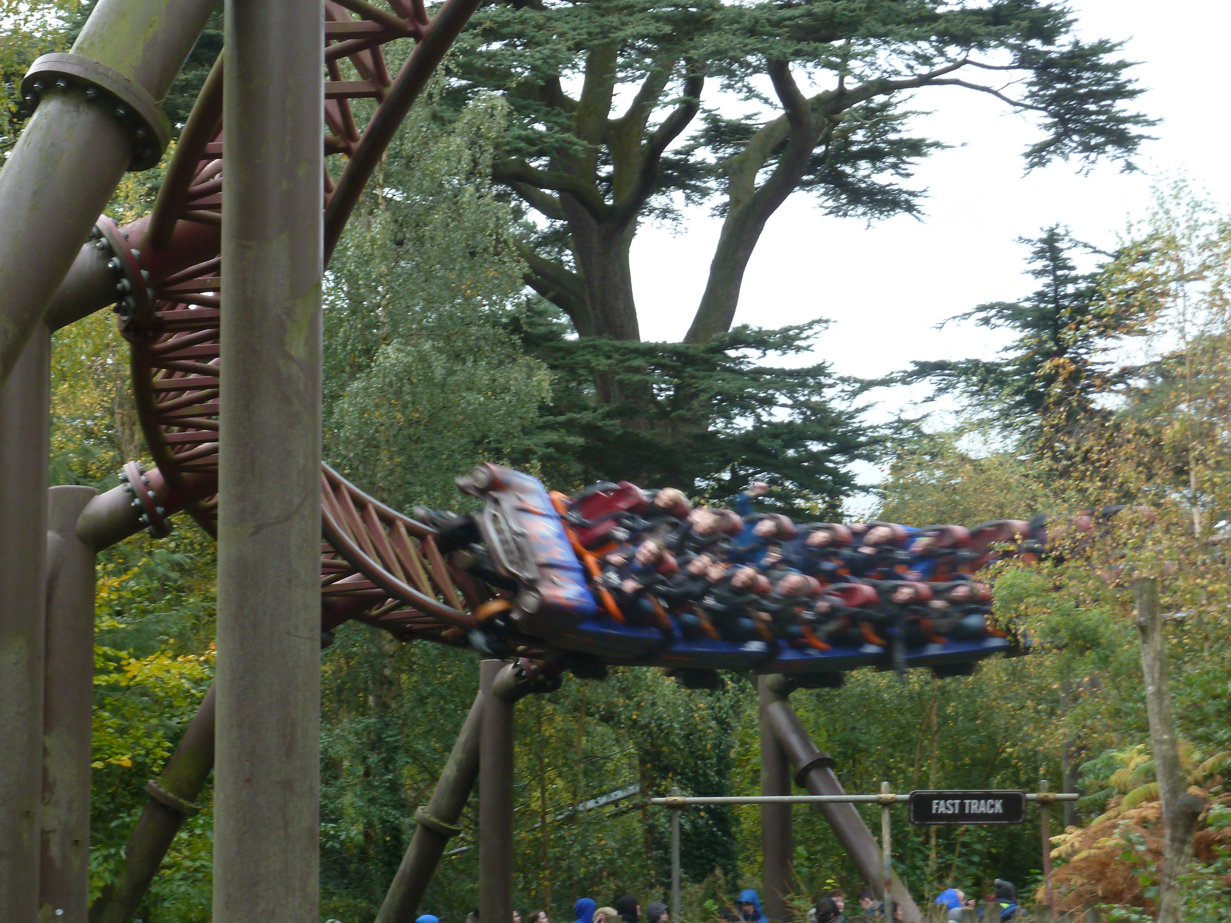 Rekordzahlen im Oktober landauf, landab und somit auch in Alton: bin neulich am Dienstag vor Halloween in den Towers böse überrascht worden durch UK-Halloween-Ferien, die im Netz so nicht angezeigt worden waren. Der Andrang war daher jenseits von gut und böse gewesen mit konstanten Wartezeiten um die 80 Minuten bei einer jeden Achterbahn bzw. 30 Minuten für Oblivion im 5-Zug-Betrieb. Der Daily-Platinum-Pass für 100 Pfund war auch noch ausverkauft gewesen, so dass ich notgedrungen, um überhaupt einmal den Wicker Man testen zu können, den Gold Pass, welcher einen schnellen Zutritt für einen jeden Ride ermöglicht, mir gekauft habe für 60 Pfund. Du musst wissen, dass nur noch der Spinball Spinner eine Single Q hat.