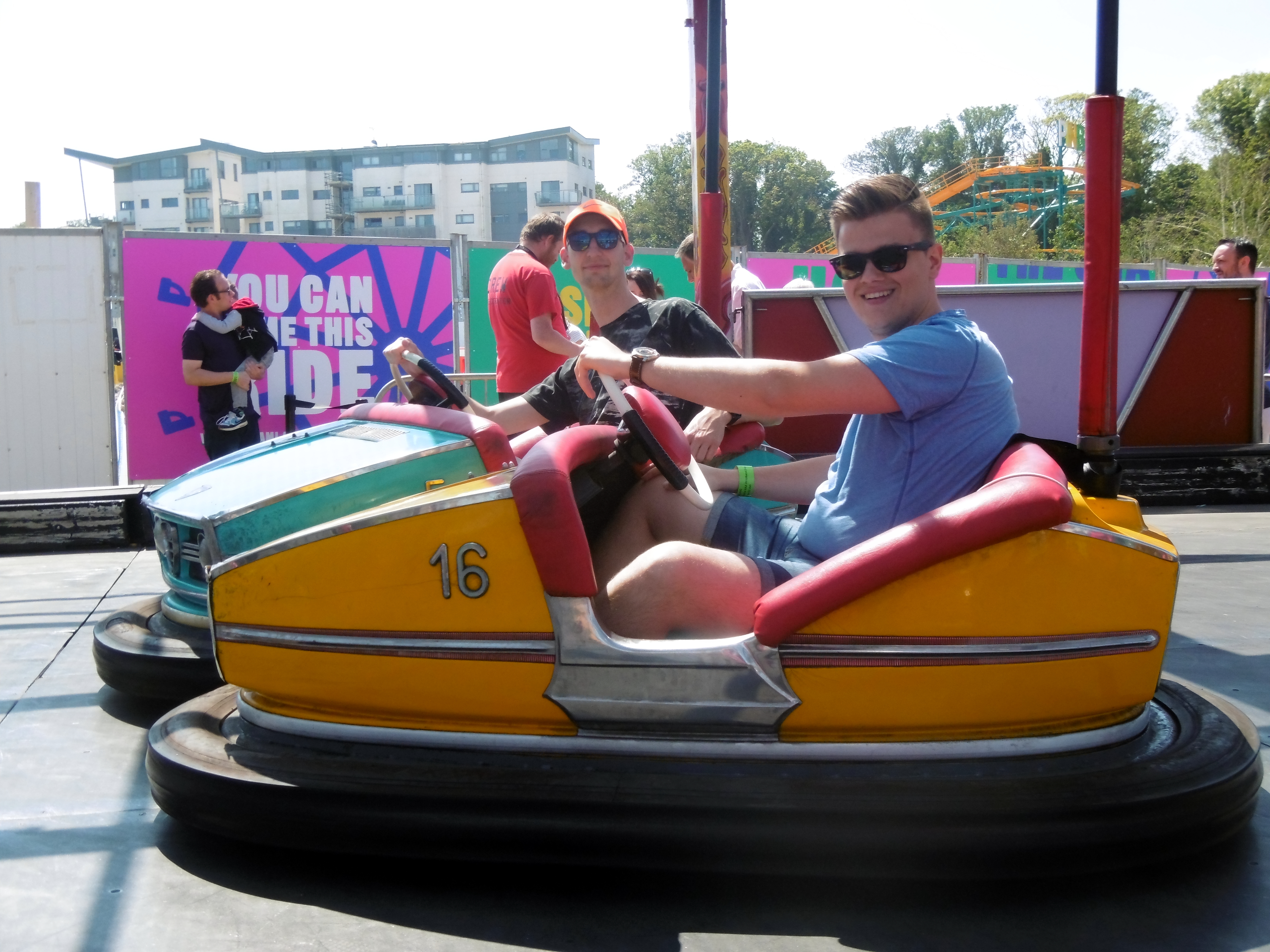 Auf dem Weg auf die Eingangsseite der Hauptattraktion liegen nun die Dodgems, die bei uns im Juni noch das östliche Ende des Parks markierten. Deswegen war damals wohl auch noch kein „Dach“ aufgezogen, ob des anstehenden Umzugs.