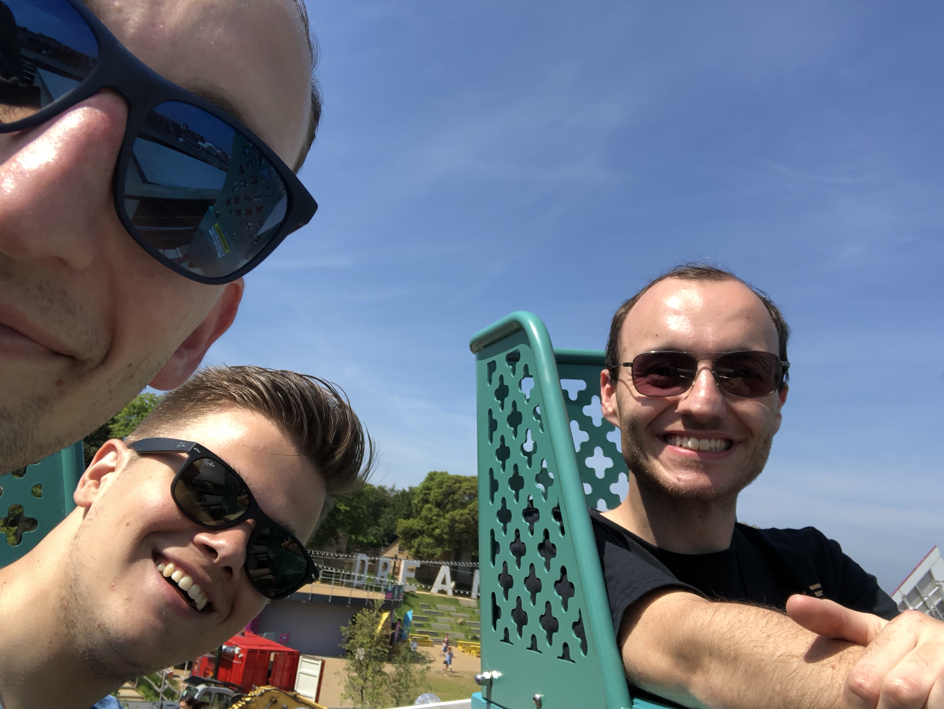 Daher unser Gruppenbild aus dem Dreamland an Bord der zweitältesten Achterbahn in Europa.