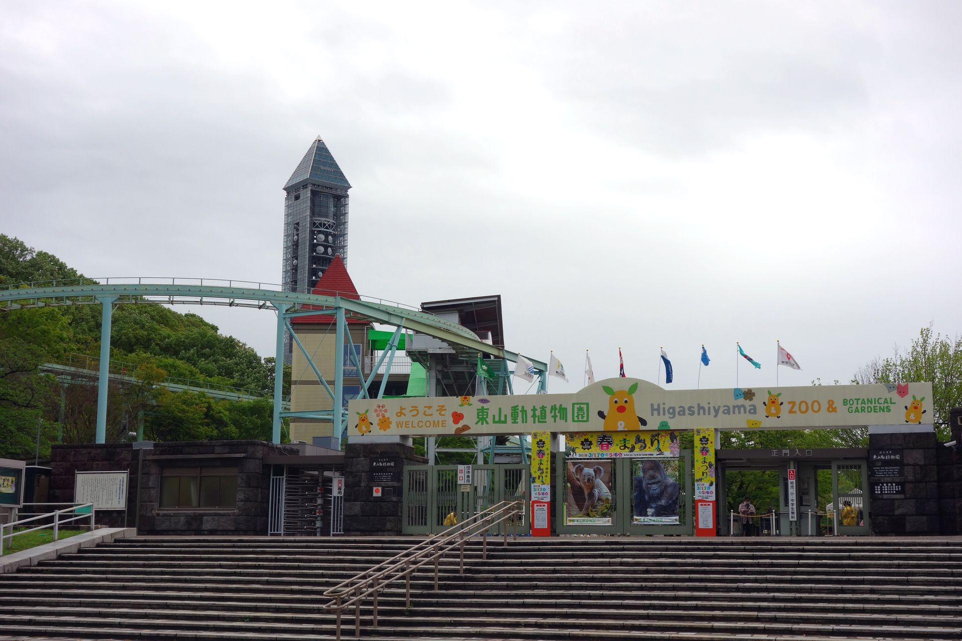 Besagter Zoo war 1918 eröffnet worden. Das Gelände im Tsuruma Park wurde aber schon bald zu klein, weshalb der Zoo 1937 in die "östlichen Berge" (= Higashiyama) umzog. Wenige Tage vor dem neuen Zoo hatte auf dem fast 60 Hektar großen Parkgelände bereits ein botanischer Garten eröffnet. Seit der Zusammenlegung beider Parks 1987 ist der Higashiyama Zoo & Botanical Gardens nicht nur flächenmäßig einer der größten Zoos des Landes (wobei knapp die Hälfte der Fläche eben auf die botanischen Gärten entfällt). Mit rund 2,4 Millionen Besuchern im Jahr steht man seit 2017 auch bei den Besucherzahlen auf Platz zwei, direkt hinter dem Ueno Zoo in Tokio, welcher Japans ältester Zoo ist. Die Spitzenposition in Japan hält der Higashiyama Zoo dafür bei der Zahl der Tiere, mehr als 500 Tierarten können auf dem Gelände bewundert werden. Gleiches gilt für die Pflanzen der botanischen Gärten, ganze 7000 Arten blühen dort. Wobei wir ehrlicherweise wegen des überschaubaren Freizeitpark-Teils mit immerhin 3 Counts hier waren.