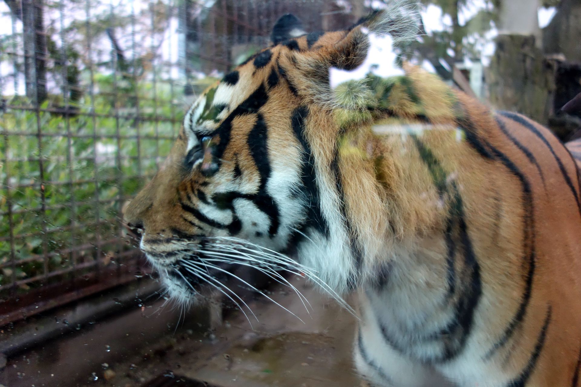 Ganz in der Nähe stolzierte ein Tiger Katzi Tatzi durch seinen bepflanzten Glaskasten.