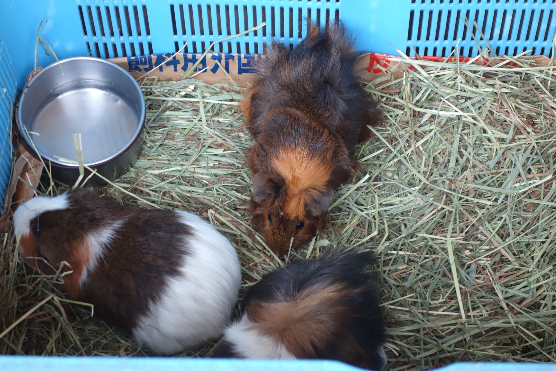 Eine Mitarbeiterin reichte gerade ein Kästchen mit Meerschweinchen zum Streicheln herum. Die Gruppe kleiner Kinder war erfreut, die Tiere vermutlich weniger.