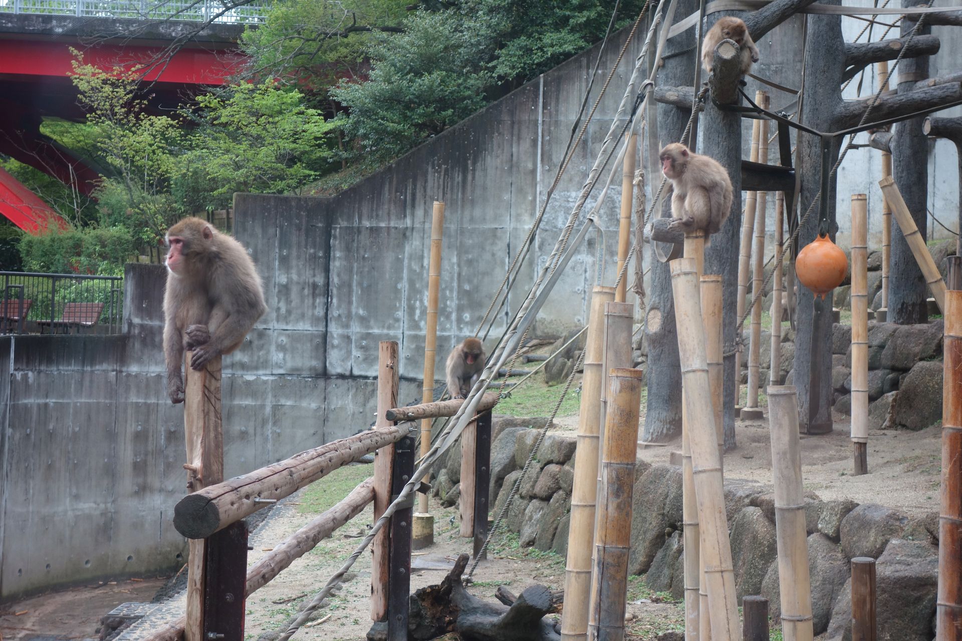 Gegenüber bedauerten wir noch die "kleinen Fleischfresser", zu denen hier im Higashiyama Zoo offenbar sogar Leoparden zählen. Sie alle leben in extrem kleinen Käfigen in einer Reihe entlang des Weges. Das konnten wir uns nicht lange ansehen, und so wechselten wir alsbald mittels der nächsten Brücke in den North Park. Der liegt wie gesagt auf dem Berg hinter der Monorail, es gab also auch noch ein paar Höhenmeter zu überwinden.