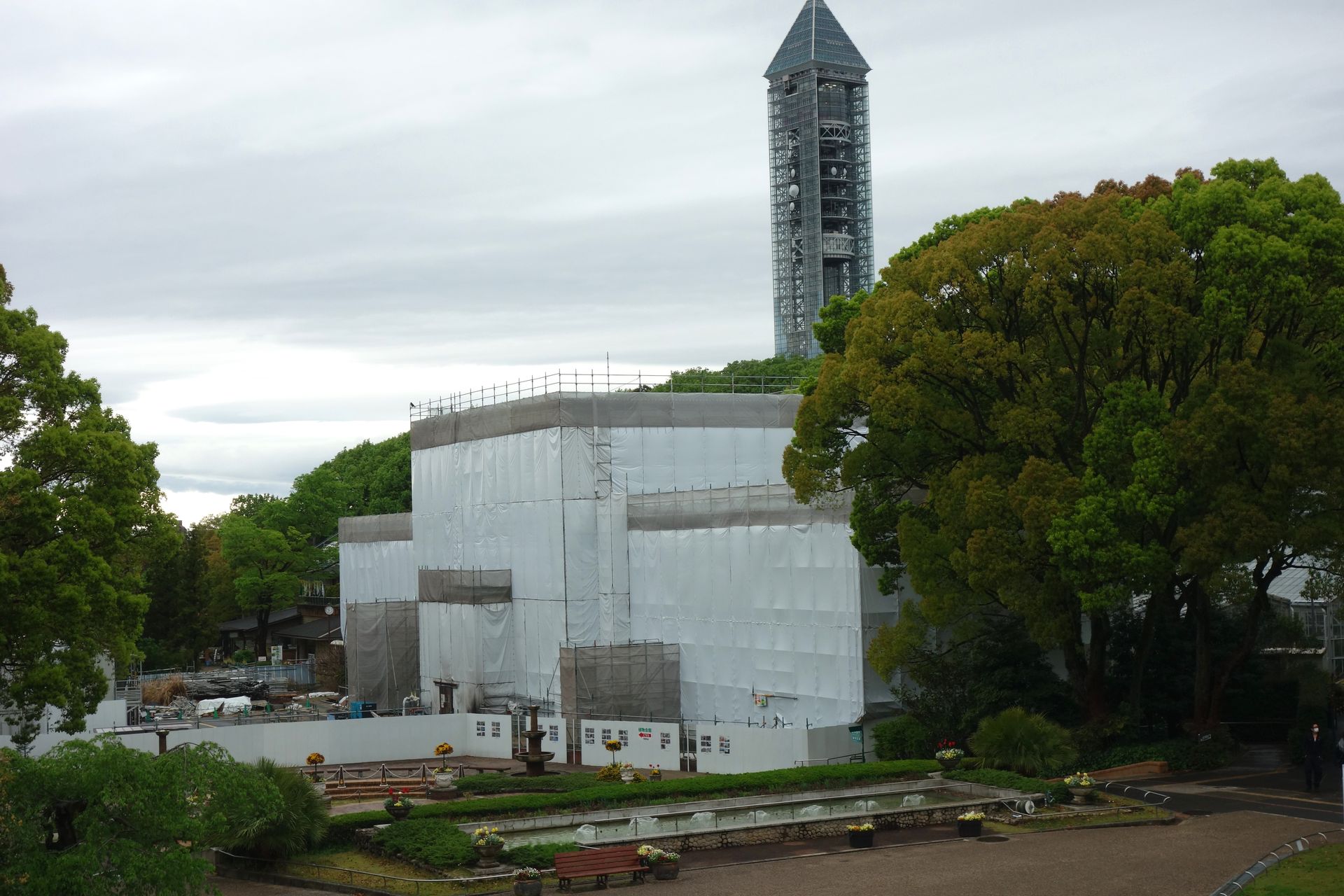 Also zumindest der prächtige vordere Teil, in dessen beeindruckendem Kuppelbau normalerweise exotische Palmen bewundert werden können. Der Glaspalast wurde bereits mit dem botanischen Garten 1937 eröffnet und ist damit wohl das älteste Gewächshaus in ganz Japan. Es wurde daher 2006 zu einem wichtigen Kulturgut erklärt. 2014 begann wie gesagt die aufwändige Renovierung, die noch bis zum Frühjahr 2021 andauern soll.