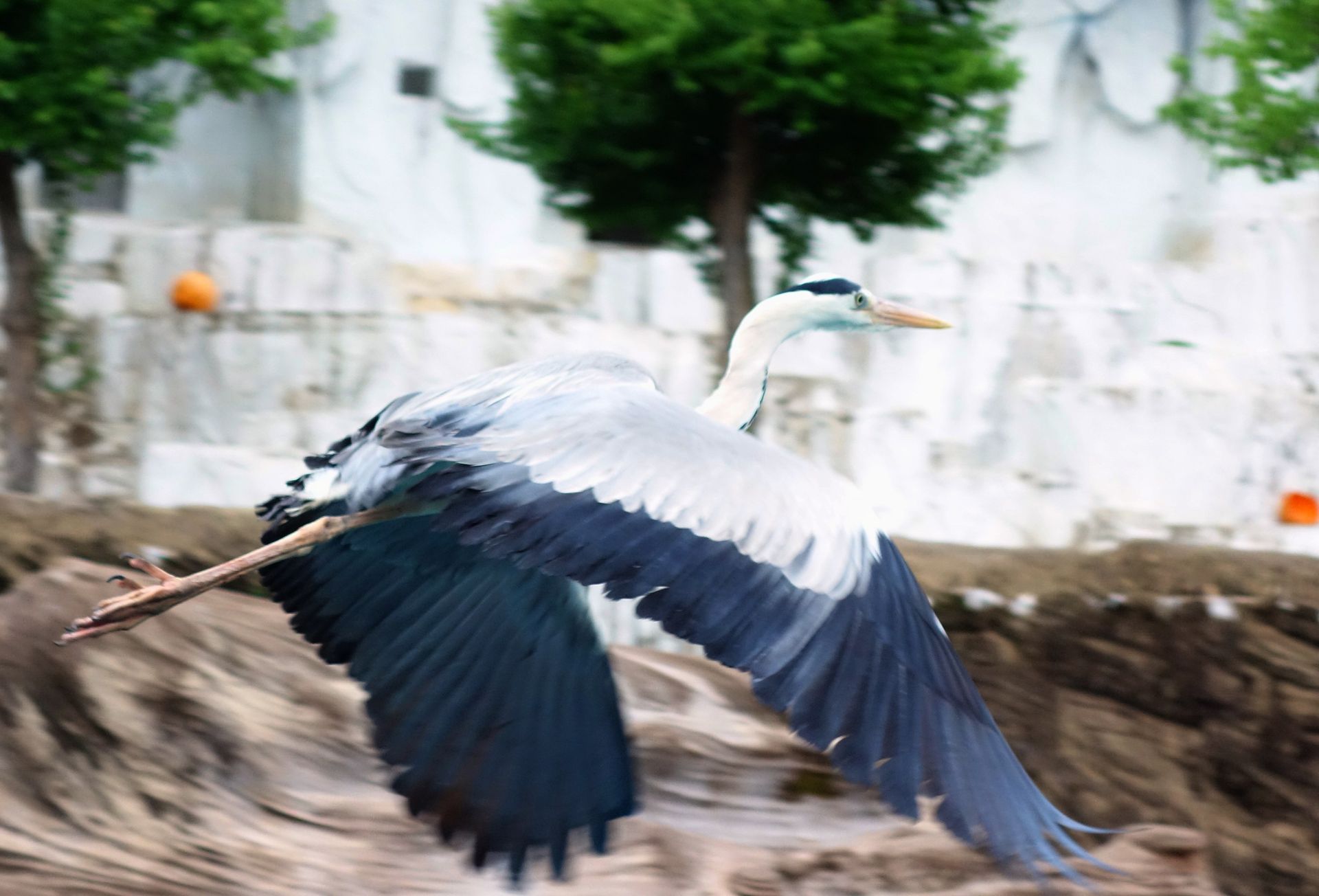 Keine Kraniche, sondern "nur" Graureiher, aber auch diese zeigten sich hier in Freiheit.