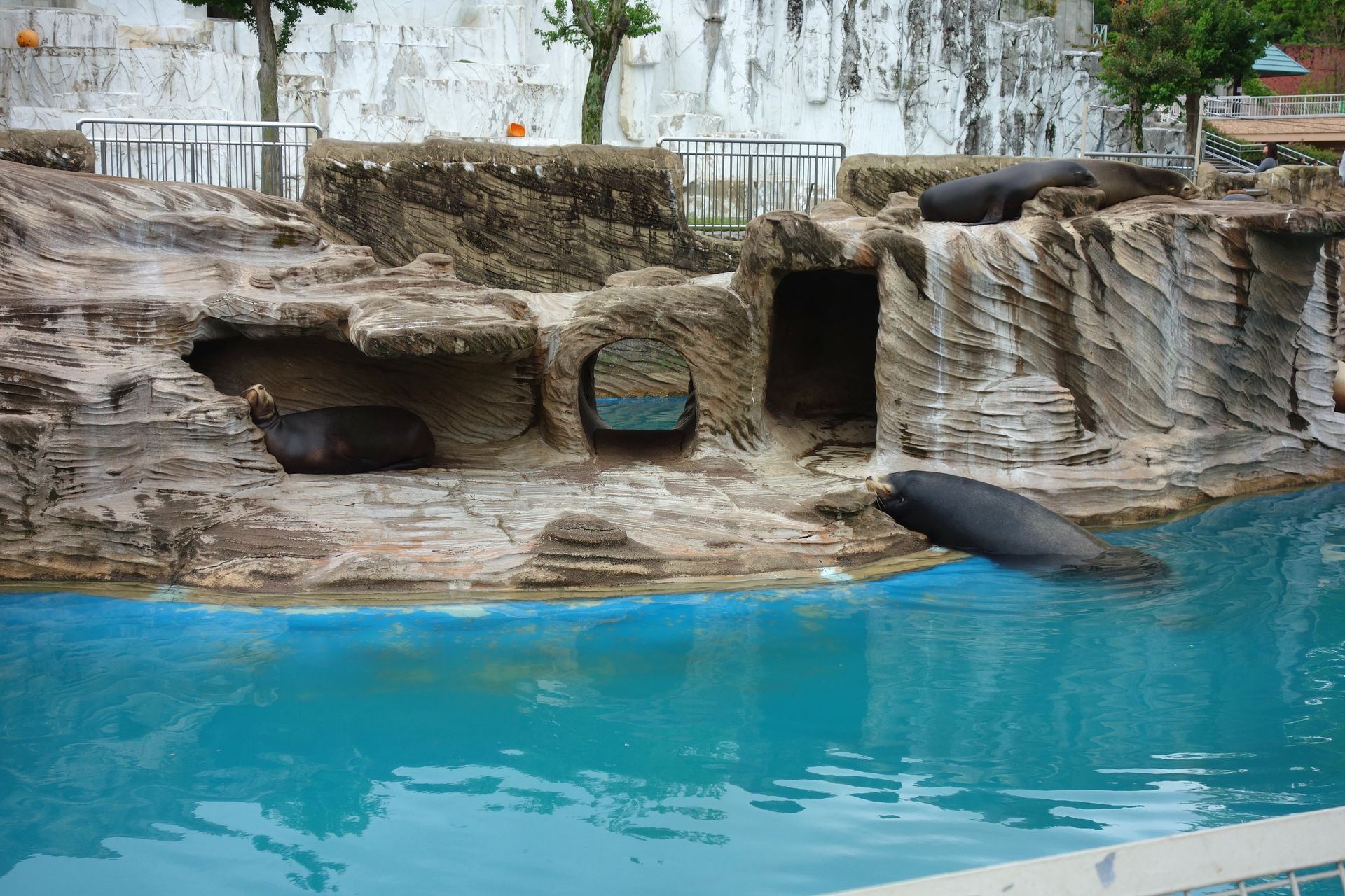 Die kalifornischen Seelöwen zeigten sich von den Flugvorführungen direkt über ihrem Gehege völlig unbeeindruckt.