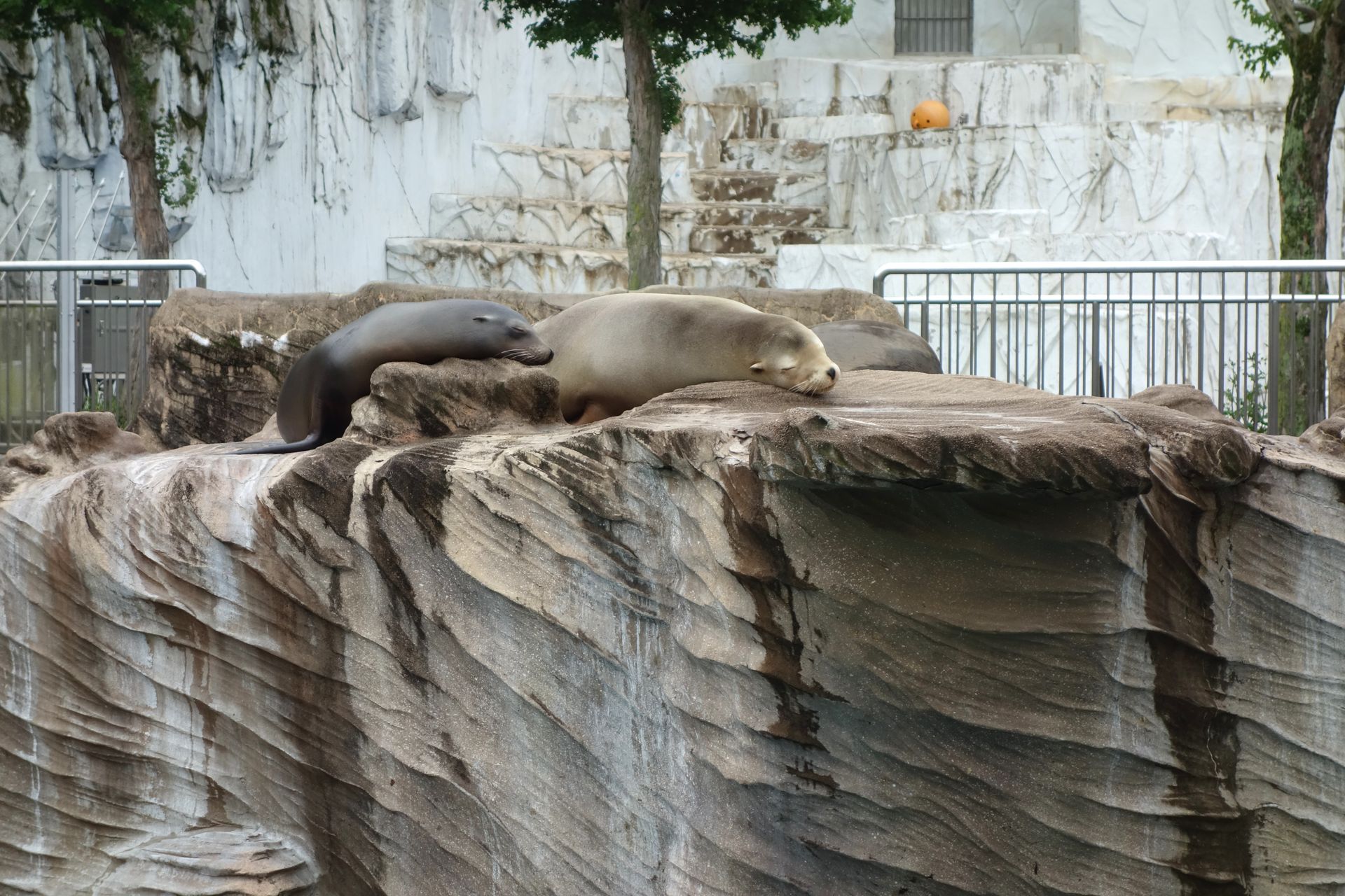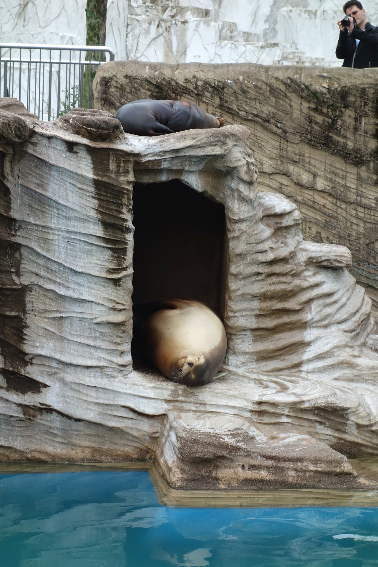 Auf unserer Route folgte das in den Hang gebaute Bärenhaus, wo man entweder auf der unteren Ebene durch Scheiben oder von der oberen Ebene über ein einfaches Geländer in die verschiedenen Gehege schauen kann. Ich habe davon allerdings kein einziges Bild, da soweit ich mich erinnere, keines der Bärchen zu sehen war und die Gehege selbst auch nicht allzu fotogen erschienen.