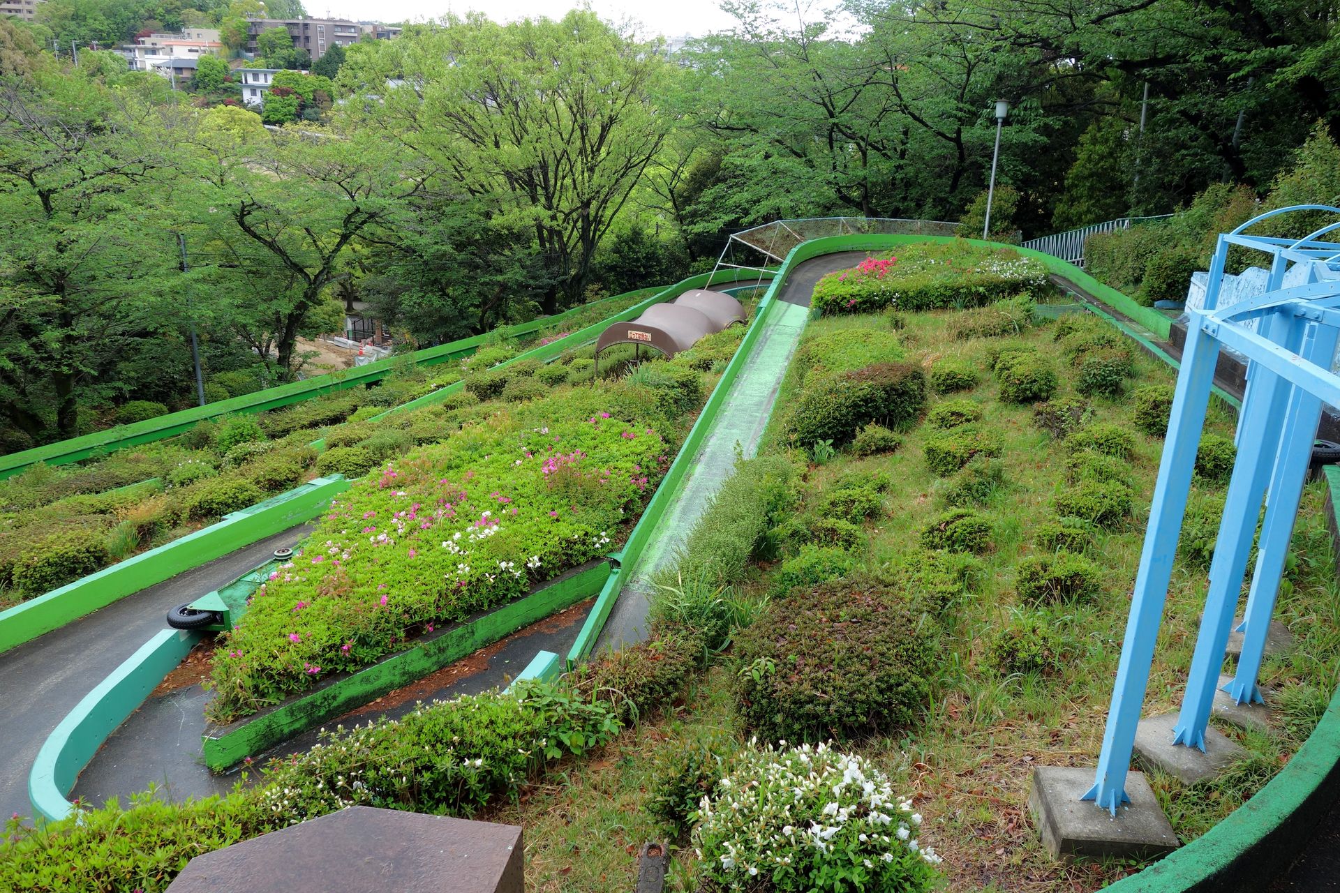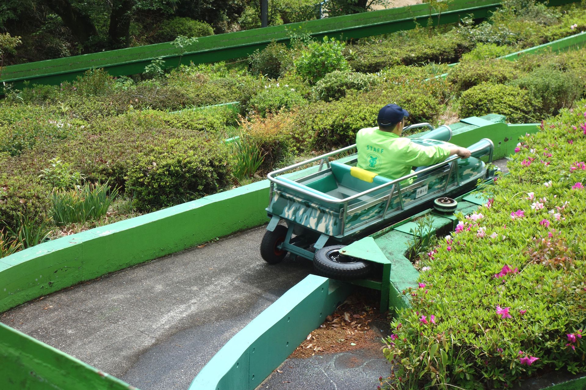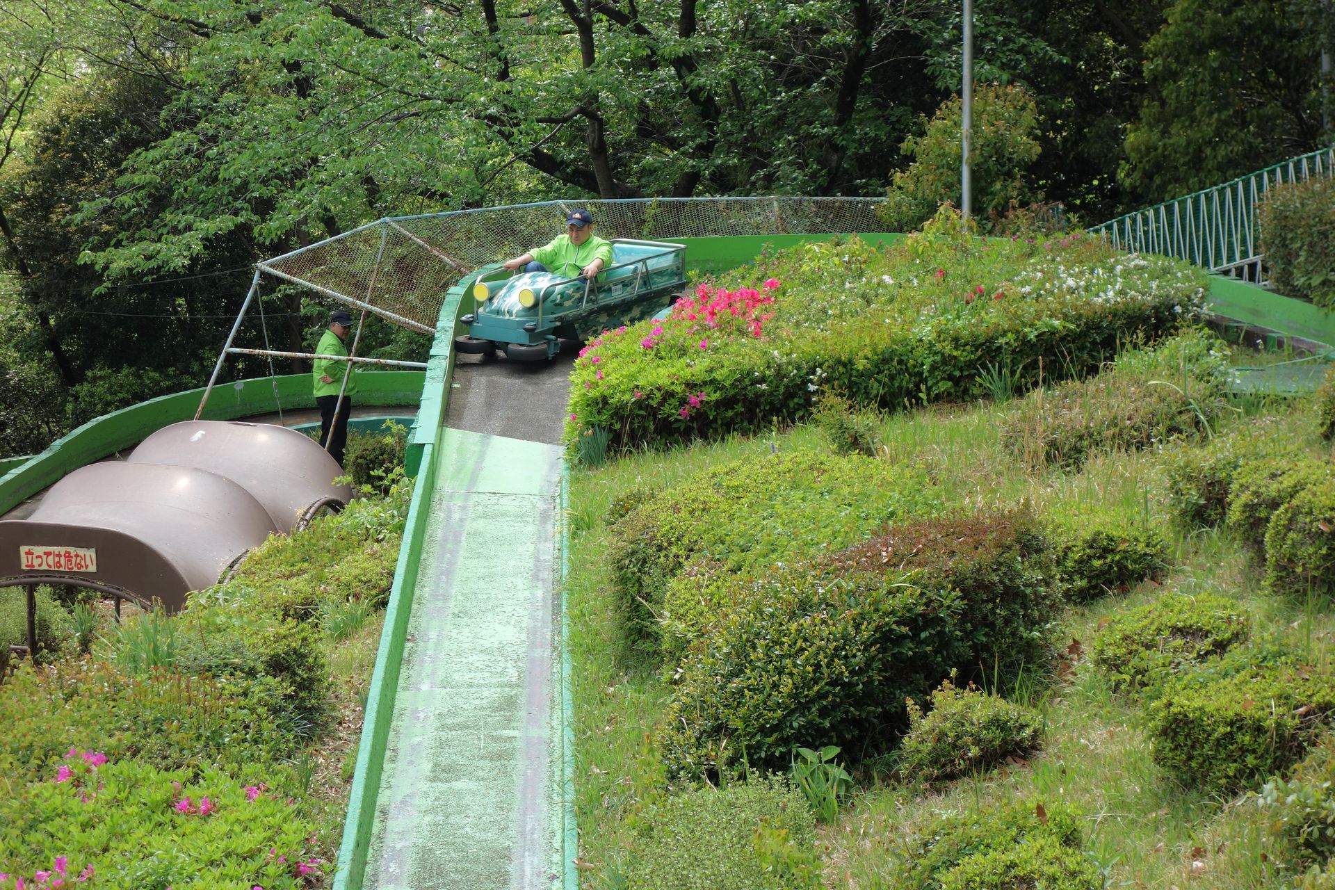 Fazit: Der Higashiyama Zoo & Botanical Gardens ist definitiv kein Vorzeige-Zoo, das macht ihn aber eben auch so typisch japanisch. Und einige der neueren Gehege ließen durchaus schon Besserung erkennen. Beeindruckend war hingegen die Größe des Areals und die riesige Anzahl von Tieren und Pflanzen. Wenn man auch noch den gesamten Botanischen Garten erkunden möchte, muss man hier wirklich schon den kompletten Tag einplanen. Wer dagegen nur für die Achterbahnen kommt, dem reicht ein kurzer Zwischenstopp - sofern das Wetter mitspielt und man nicht erst sieben verschiedene Mitarbeiter zusammentrommeln muss, um ein Rad zu wechseln. Aber immerhin scheint man sich gut um den Slope Shooter zu kümmern, was mich freut. Denn die Bahn ist eben ein Unikat und sollte solange wie möglich erhalten werden. Auch wenn mir persönlich der Jet Coaster dann doch etwas besser gefallen hat - so als Achterbahn.