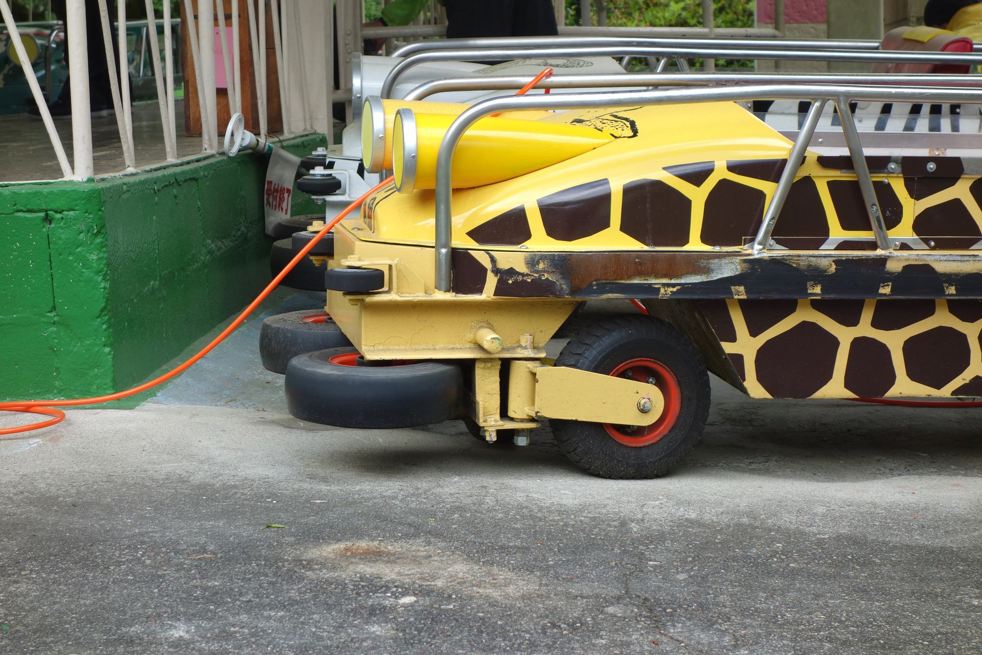 Wobei man da beim Slope Shooter wohl auch besonders sensibilisiert wurde, im Jahr 2016 blieb nämlich einer der Wagen unterwegs stecken und der nachfolgende fuhr auf. Nachdem im selben Jahr die Tür einer mit Kindern besetzten Riesenradgondel während der Fahrt nicht verschlossen war, wurden sämtliche Fahrgeschäfte erstmal stillgelegt und einer gründlichen Inspektion unterzogen. Aber die zwei Stunden Wartezeit hätten echt nicht sein müssen. Es waren ja wie gesagt noch zwei weitere Fahrzeuge vorhanden, und im Zweifelsfall hätte man auch nur mit dem Frosch alleine fahren können, so viele Besucher waren an diesem Tag nicht im Zoo unterwegs.