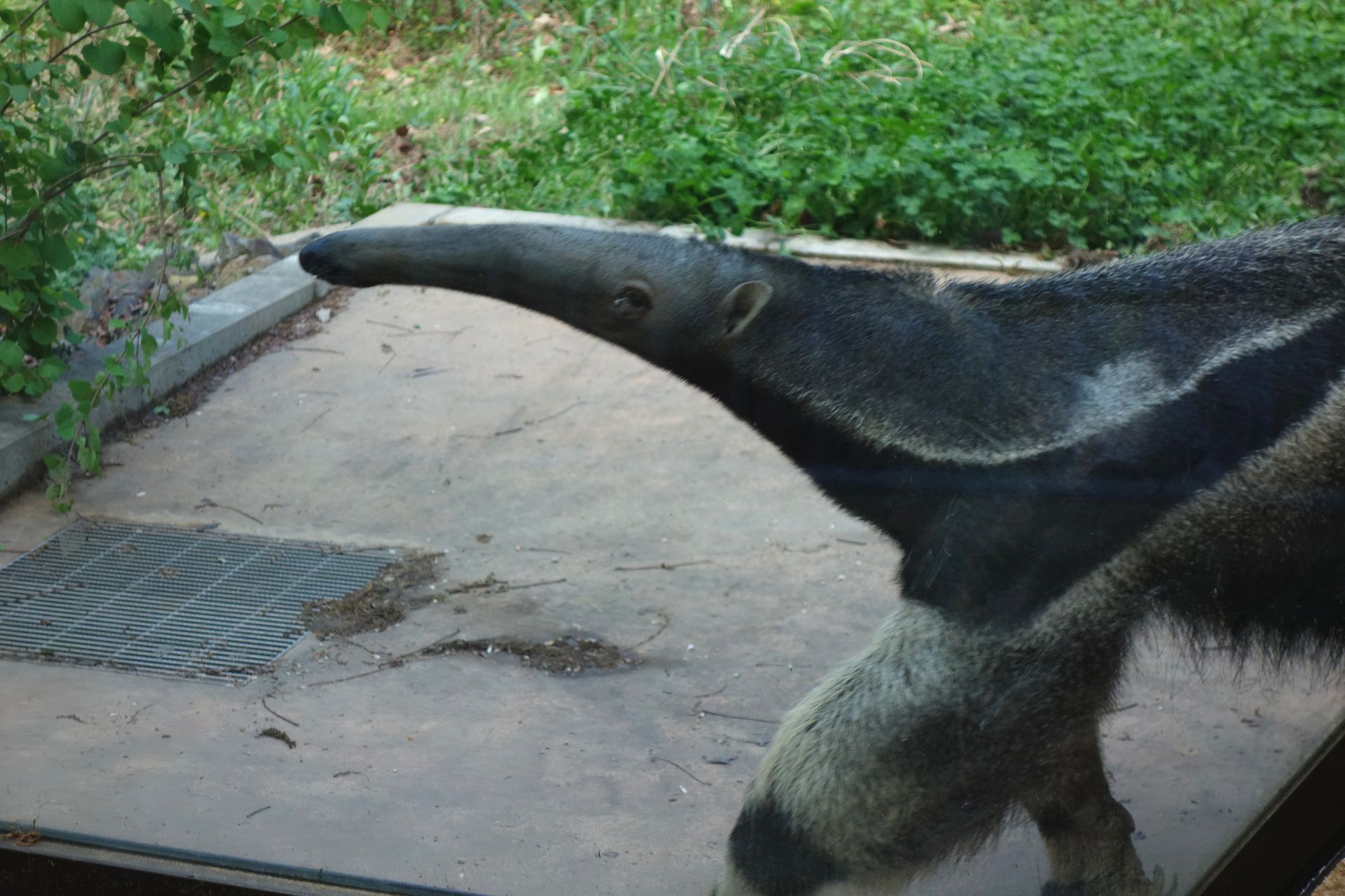 Hier stolziert außerdem noch ein Ameisenbär durch sein verglastes Gehege.