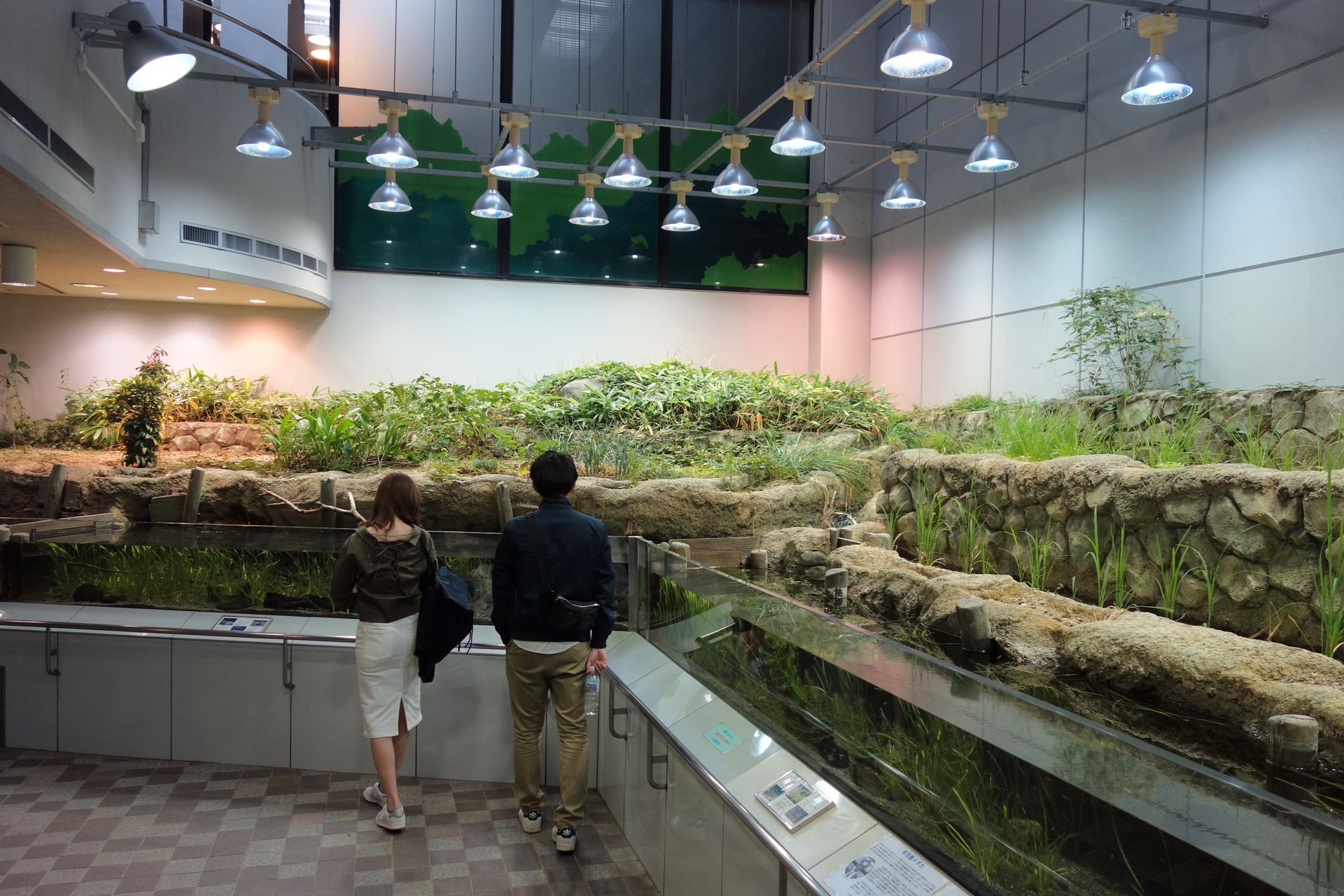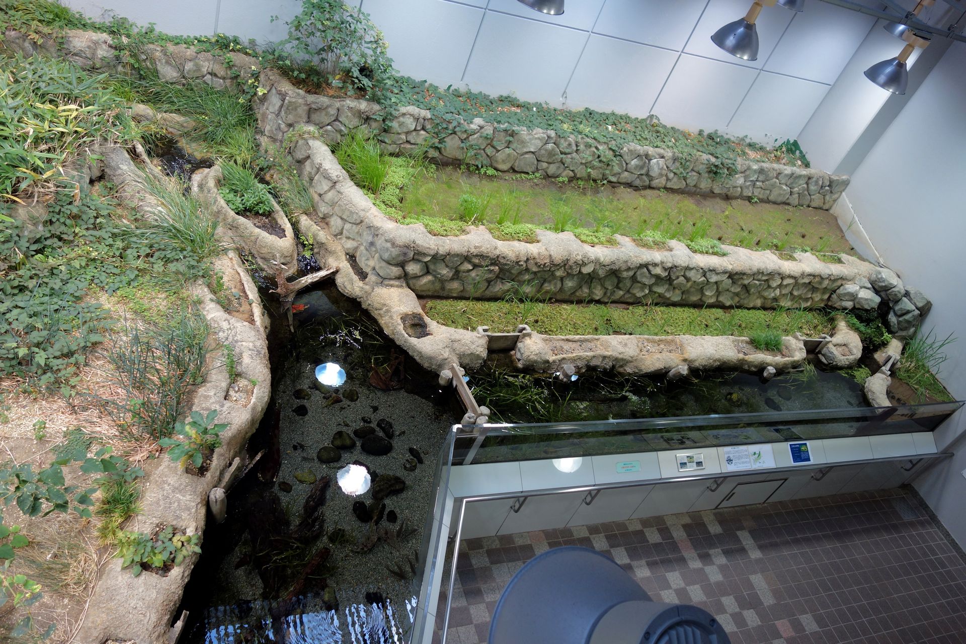 Im Eingangsbereich hat man die Reisfelder als Heimat der Medakas nachempfunden.