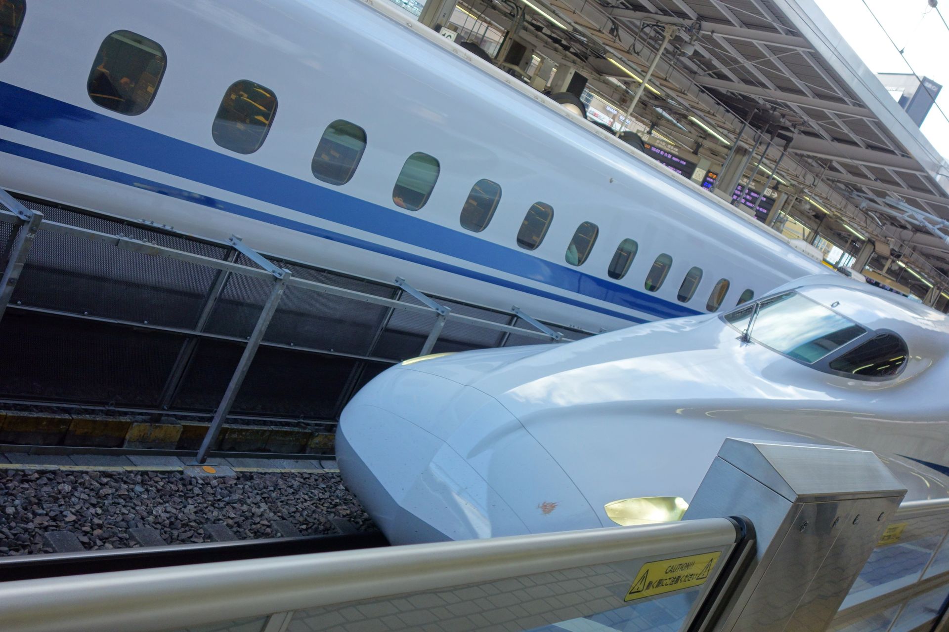 Überraschenderweise merkte ich von der gebrochenen Rolle meines Koffers nichts. Ich hatte beim Packen festgestellt, dass die Halterung gebrochen war. Ich versuchte noch, die völlig schief hängende Rolle wieder irgendwie grade zu stellen, aber sie wollte nicht mehr halten. Immerhin ließ sie sich ohne großen Widerstand mitschleifen. Am Bahnsteig der Nagoya Station staunten wir nochmals über den unfassbaren Takt der Shinkansen. Kaum war der eine weg, kam auch schon der nächste. Etwa alle sechs Minuten fuhr ein Shinkansen in Richtung Tokio ab. Aber wir mussten nunmal auf den Einen warten, in dem wir unsere Sitzplätze reserviert hatten. Etwa zwei Stunden lang fuhren wir weiter gen Nordosten, zum Teil schön an der Küste entlang. Leider hatten wir diesmal keine Fensterplätze, dennoch konnten wir bereits erste Blicke auf den wohl bekanntesten Berg des Landes werfen, kurz bevor es draußen dunkel wurde. Das schürte bereits Vorfreude auf die nächsten Tage, denn wir hatten sogar einen kompletten Sightseeing-Tag dafür eingeplant. Zunächst stand aber noch ein anderes Highlight - auch mit einem ansehnlichen Berg ausgestattet - auf dem Plan. Vom Ausstieg in Shanagawa wurde ich dann allerdings doch etwas überrascht, ich wäre glatt bis Tokio durchgefahren. Nicht, dass ich den Tagesplan nicht auf dem Smartphone gehabt hätte...