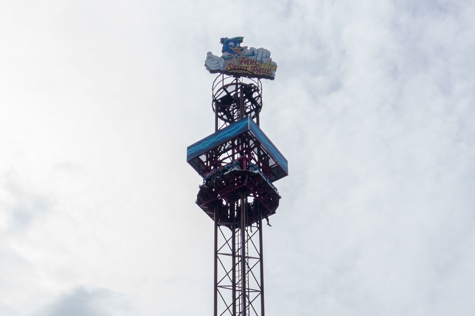 Pax, welches nur so darauf wartete endlich getestet zu werden. Der 40m hohe Freifallturm bietet eine sehr skurrile Fahrt, denn ehe man zum Fall kommt wird man erst einmal ewig durch die Magnetbremse gezogen, die in etwa die Hälfte des Turms in Anspruch nimmt. Durch diesen Umstand ist auch die Bremsung überaus rabiat. Ça me plait beaucoup! So einen Fall habe ich von